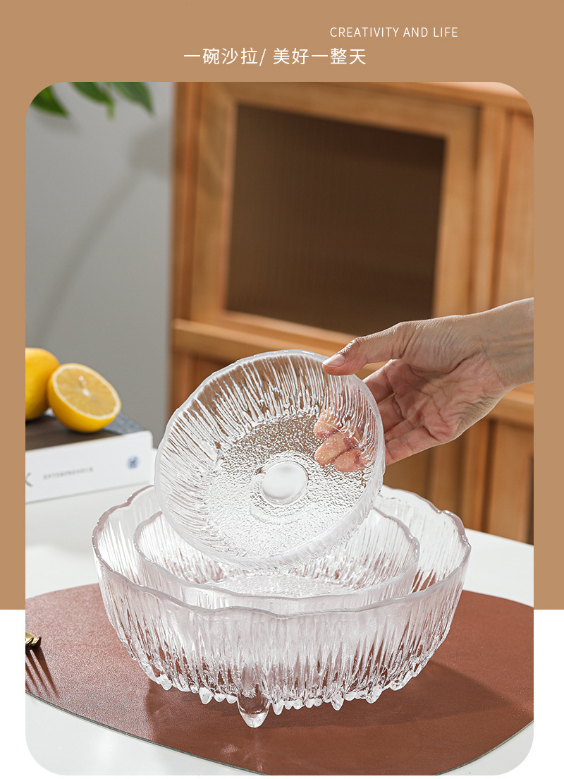轻奢玻璃果盘家用水果沙拉碗客厅茶几零食摆放盘高颜值甜品酸奶碗