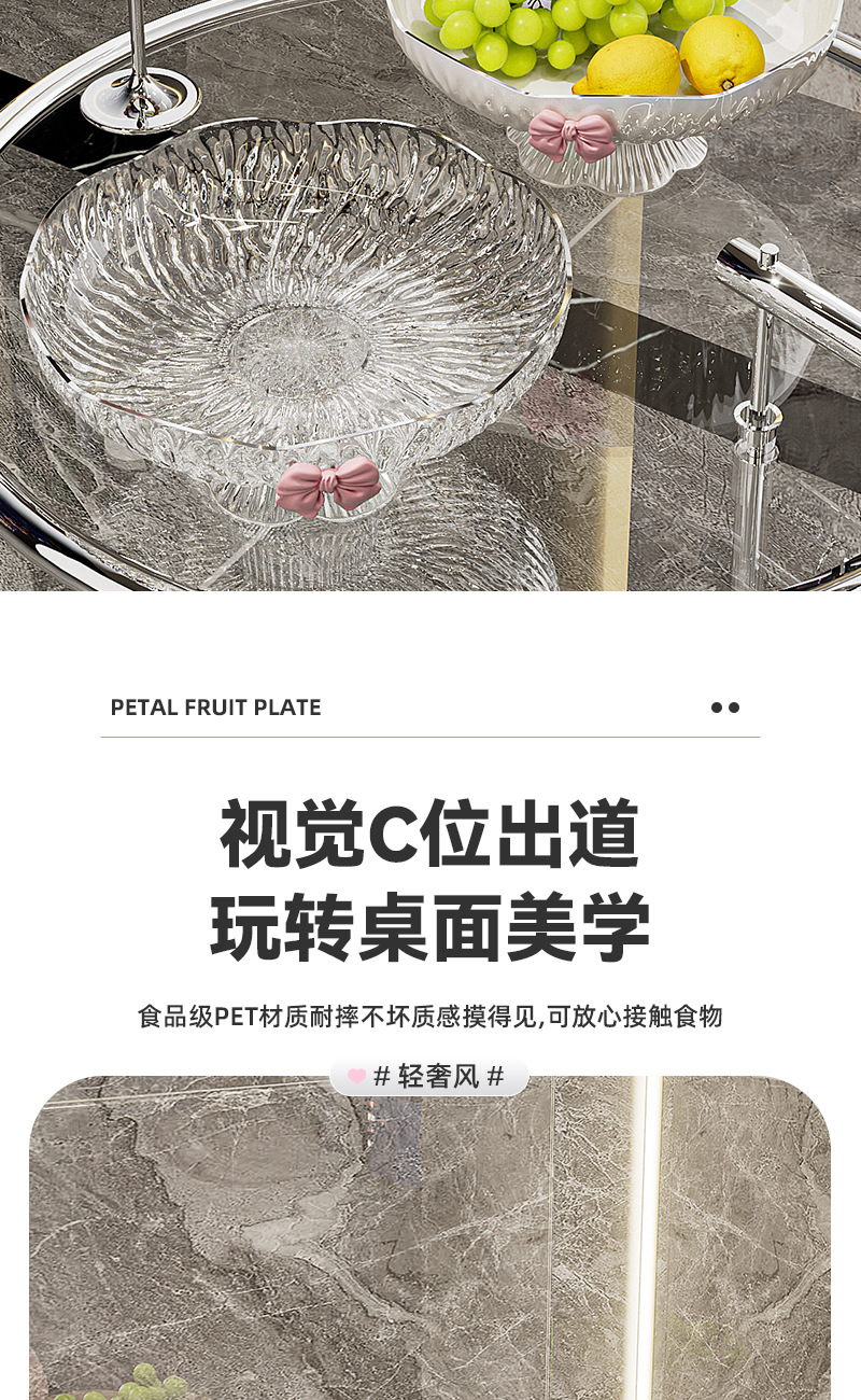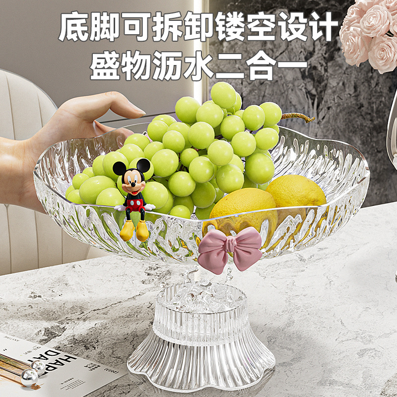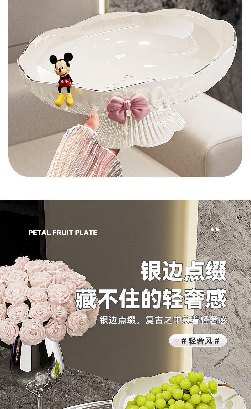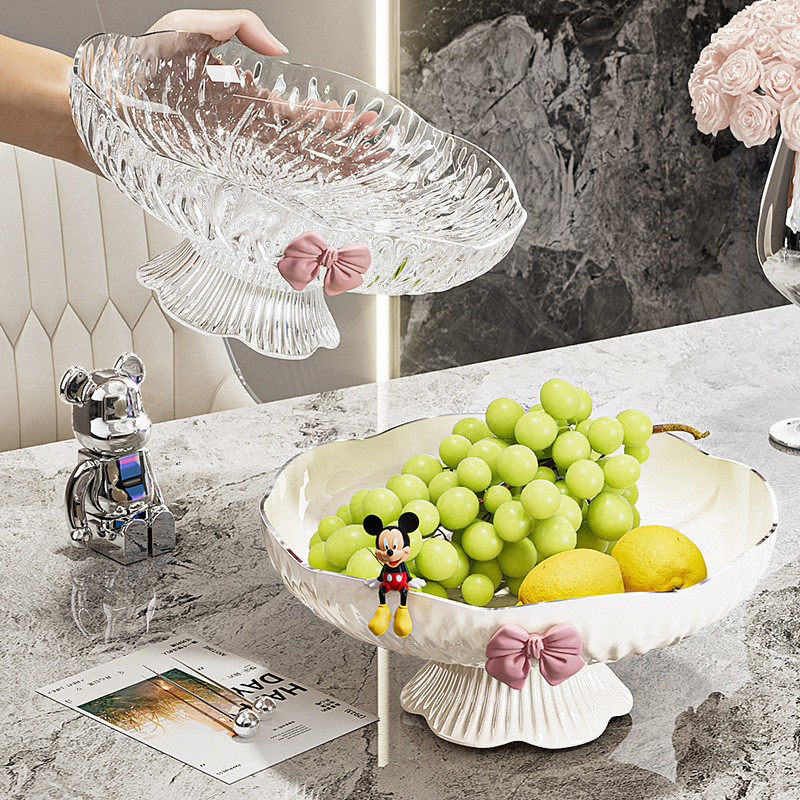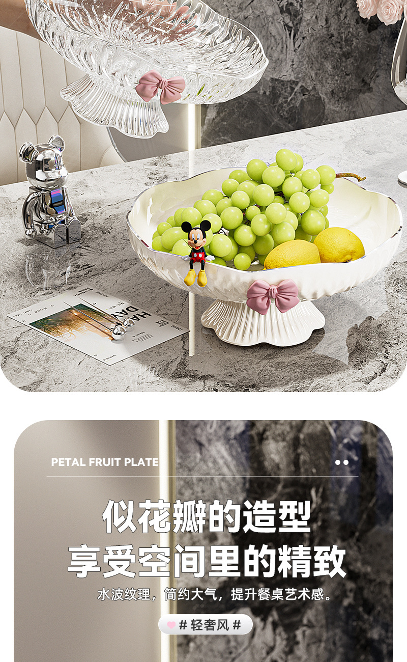 新款花型果盘客厅高脚水果盘带蝴蝶结茶几零食干果盘前台糖果摆盘