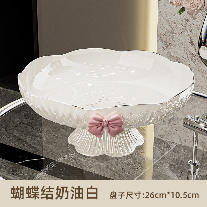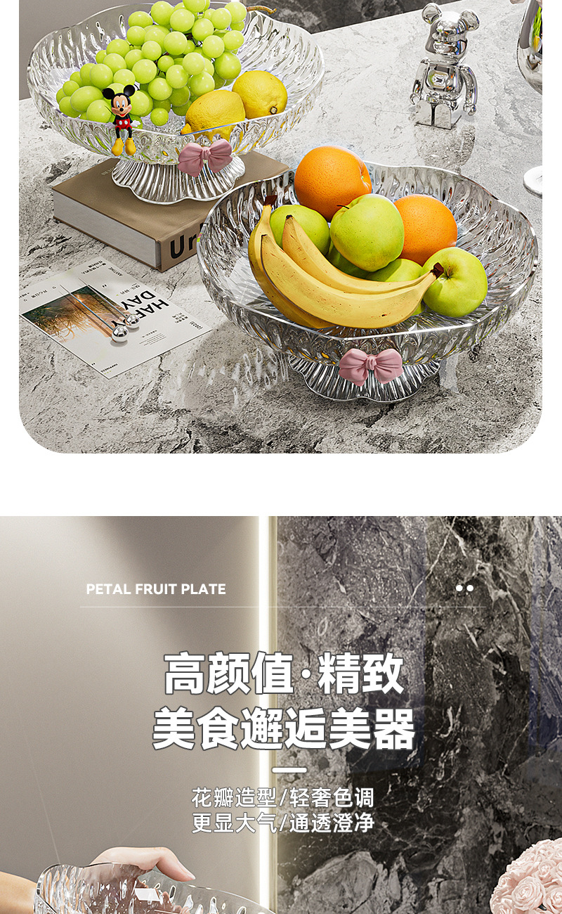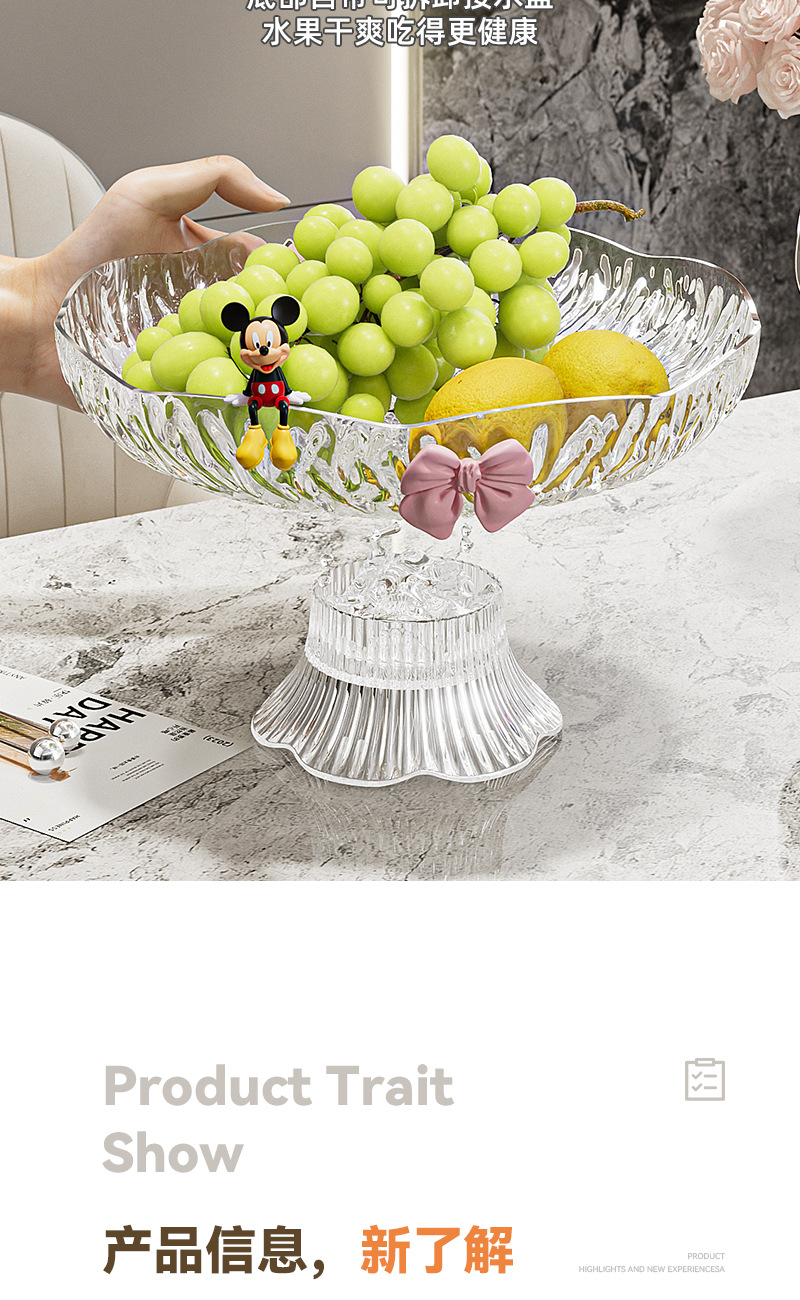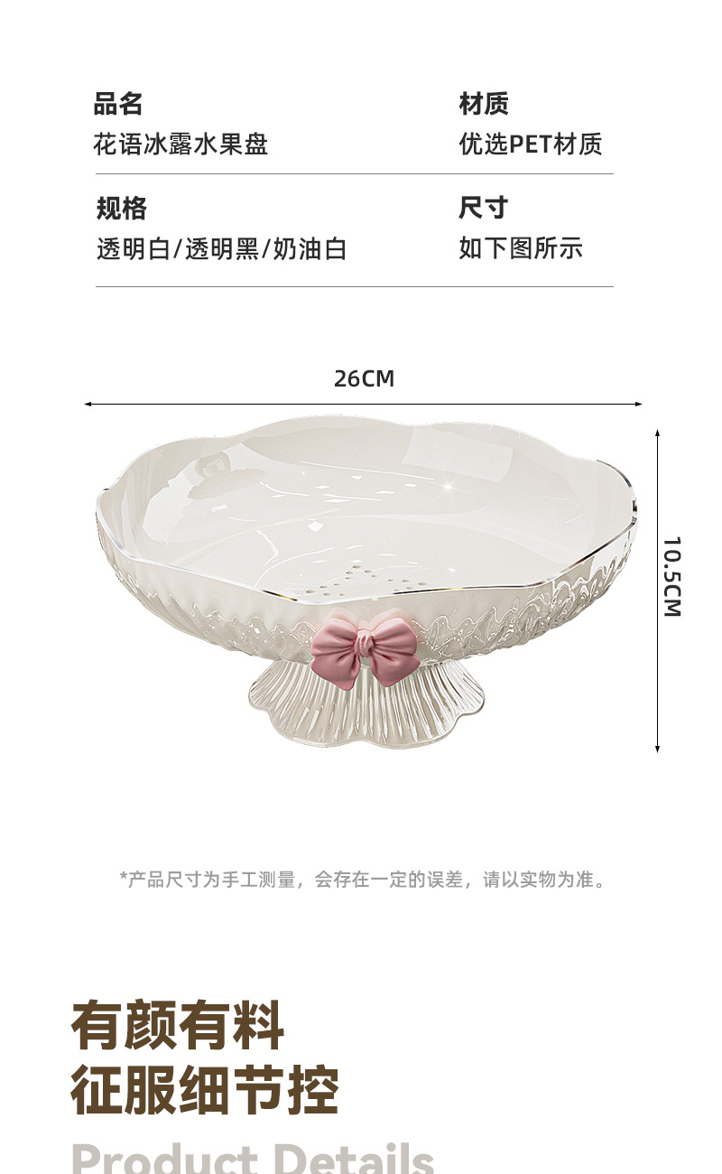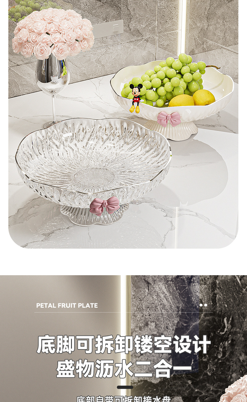 新款花型果盘客厅高脚水果盘带蝴蝶结茶几零食干果盘前台糖果摆盘