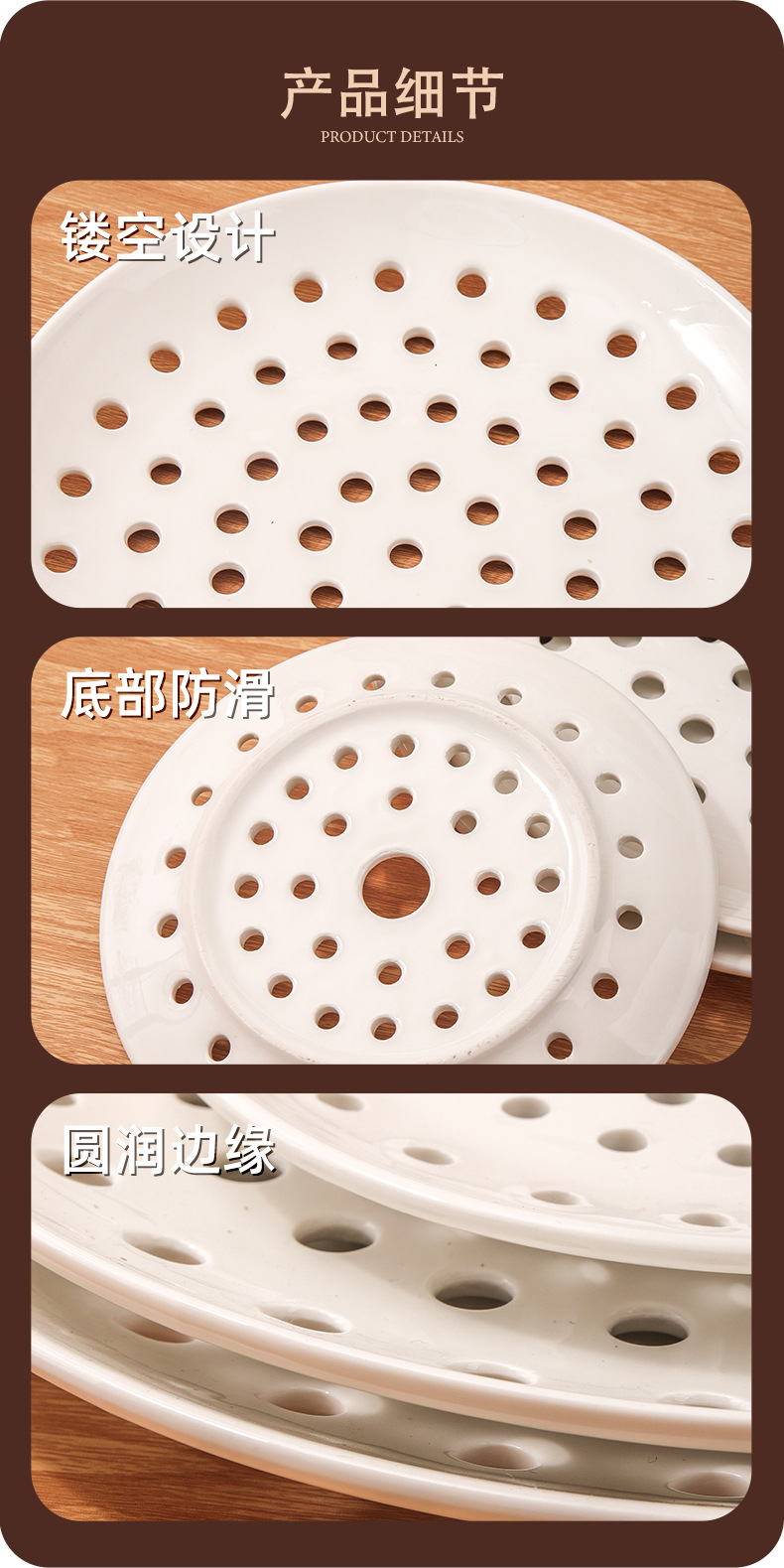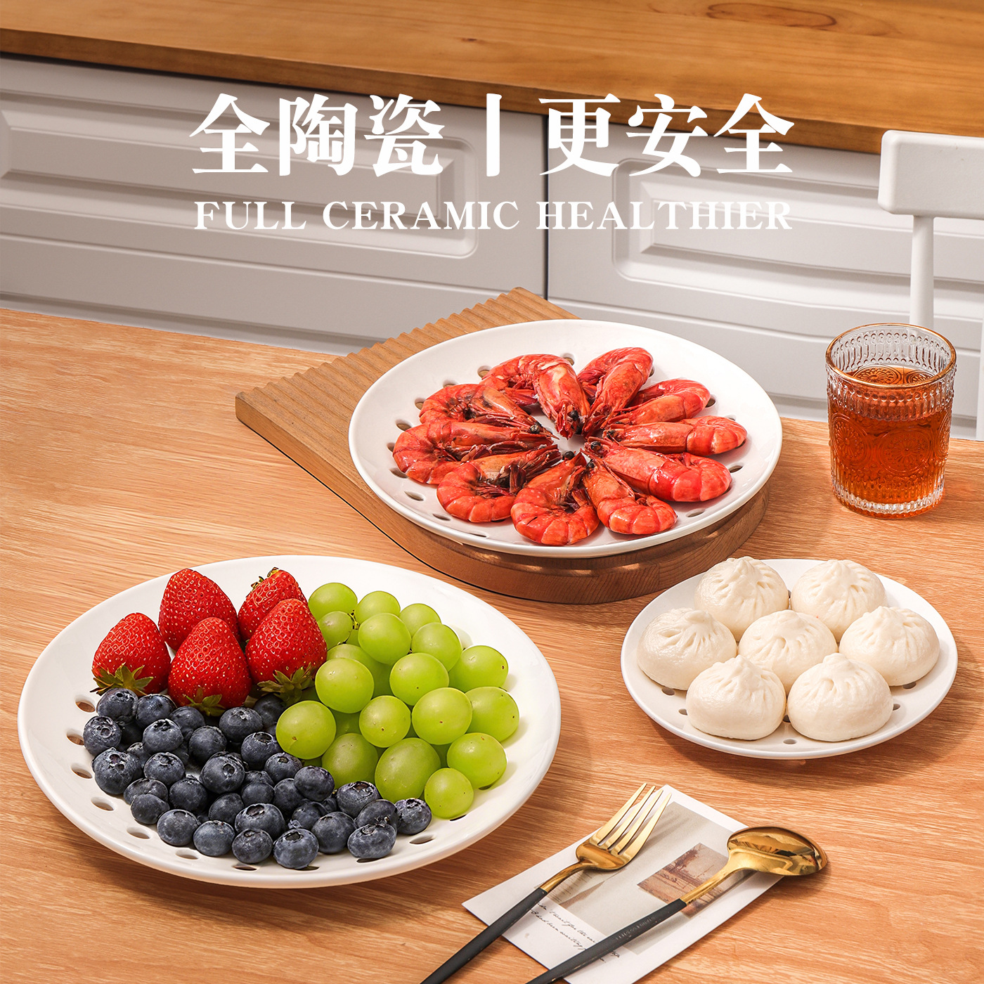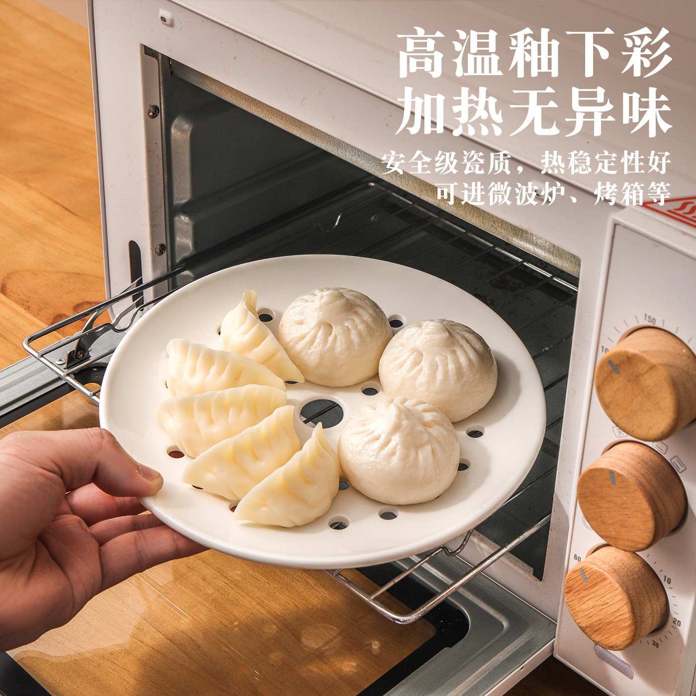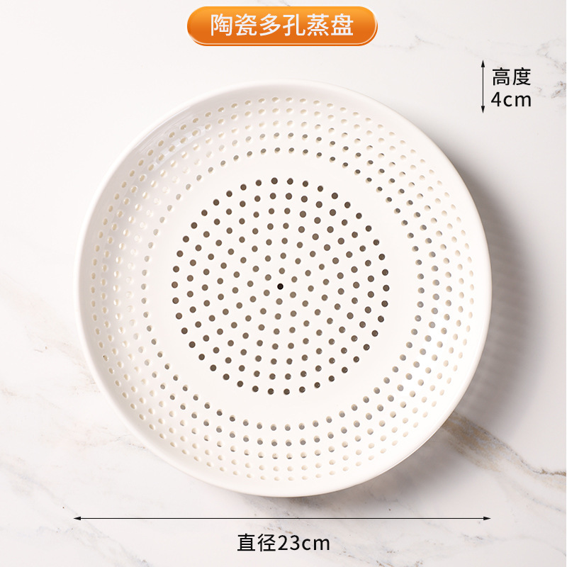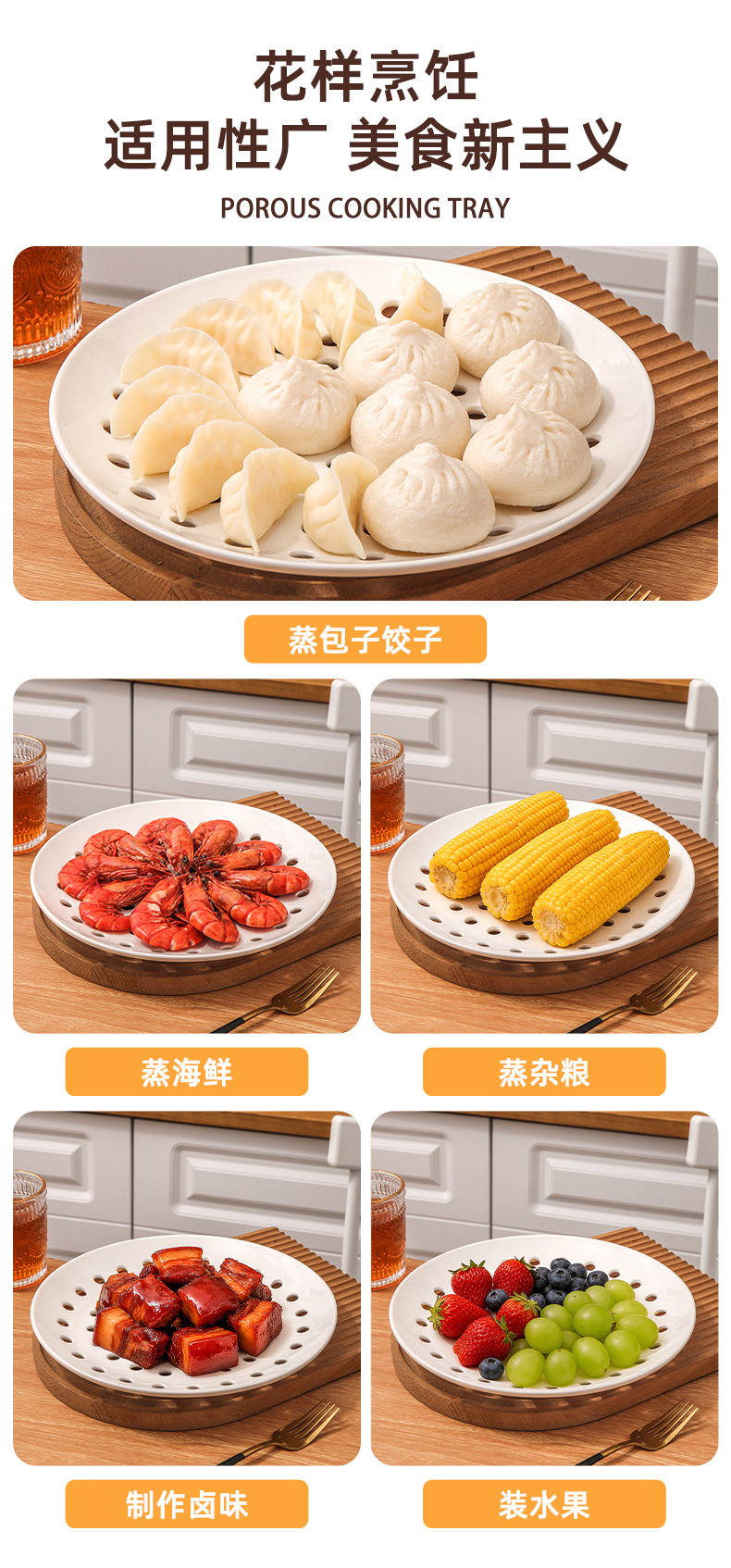 陶瓷多孔蒸盘饺子盘沥水盘圆形水果盘蒸海鲜蒸鱼盘蒸片圆形蒸格盘