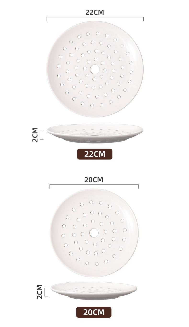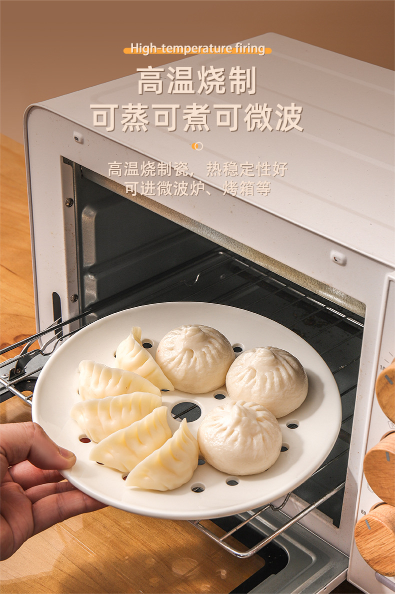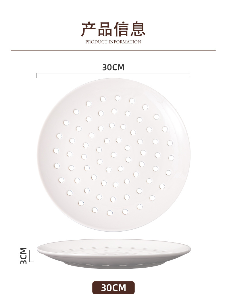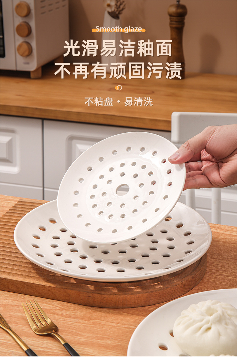 陶瓷多孔蒸盘饺子盘沥水盘圆形水果盘蒸海鲜蒸鱼盘蒸片圆形蒸格盘