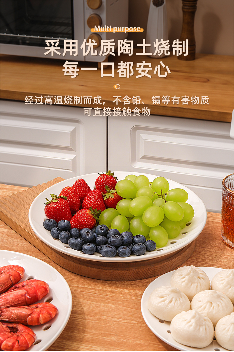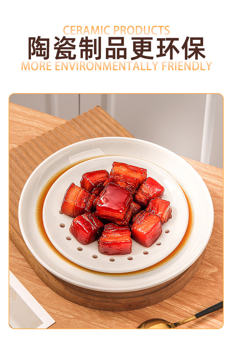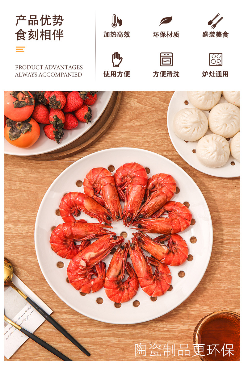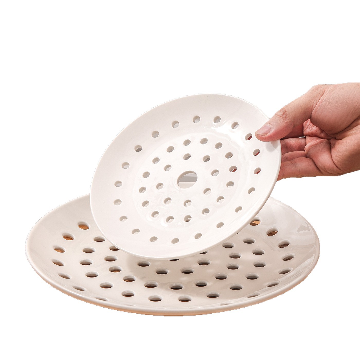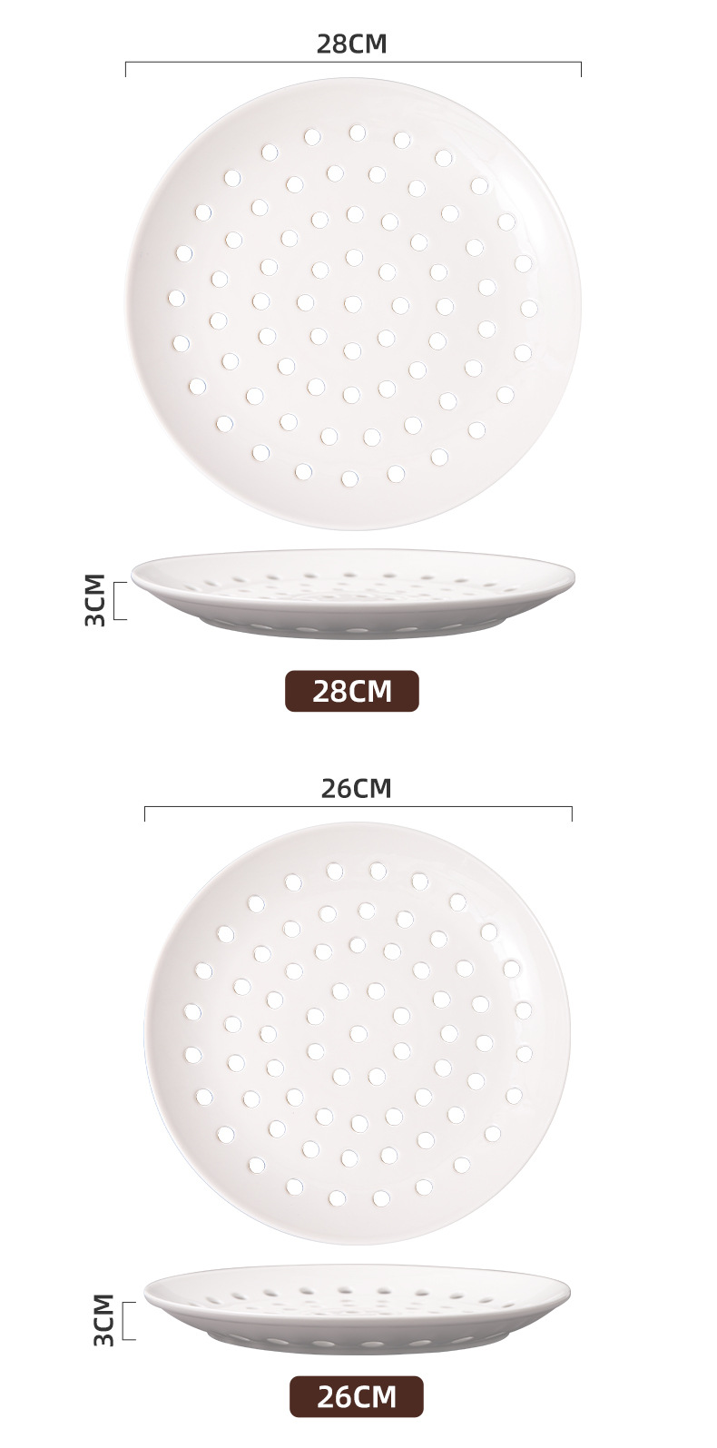 陶瓷多孔蒸盘饺子盘沥水盘圆形水果盘蒸海鲜蒸鱼盘蒸片圆形蒸格盘