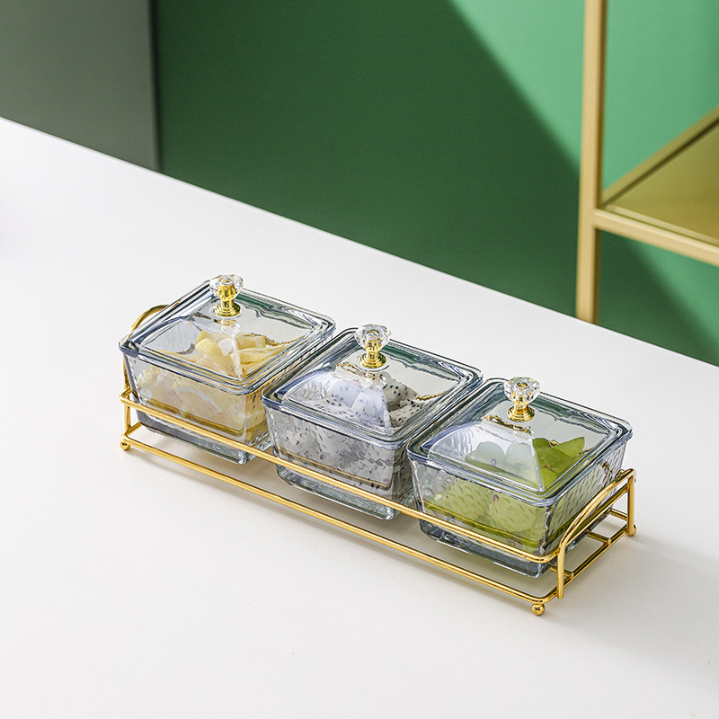 玻璃分隔水果盘商用零食点心小吃碟盘子酒吧浴足会所KTV格碟带盖