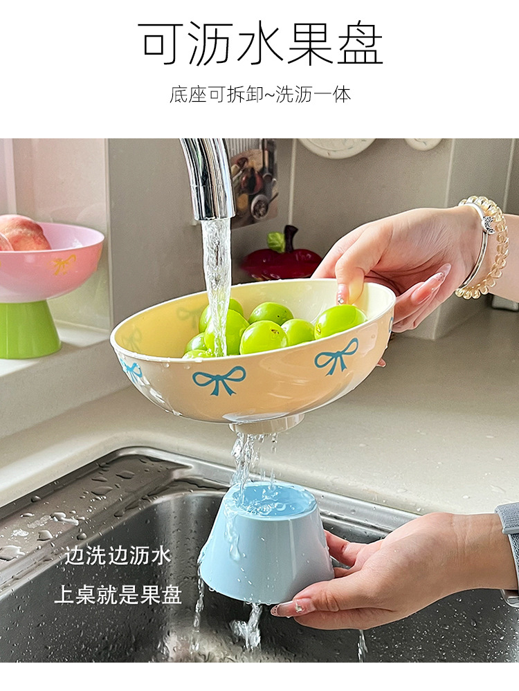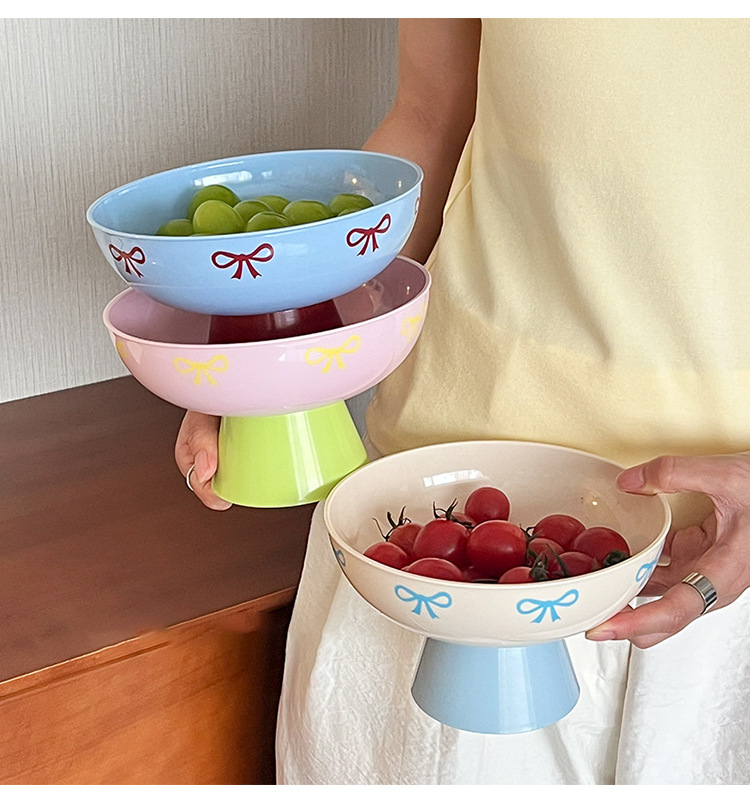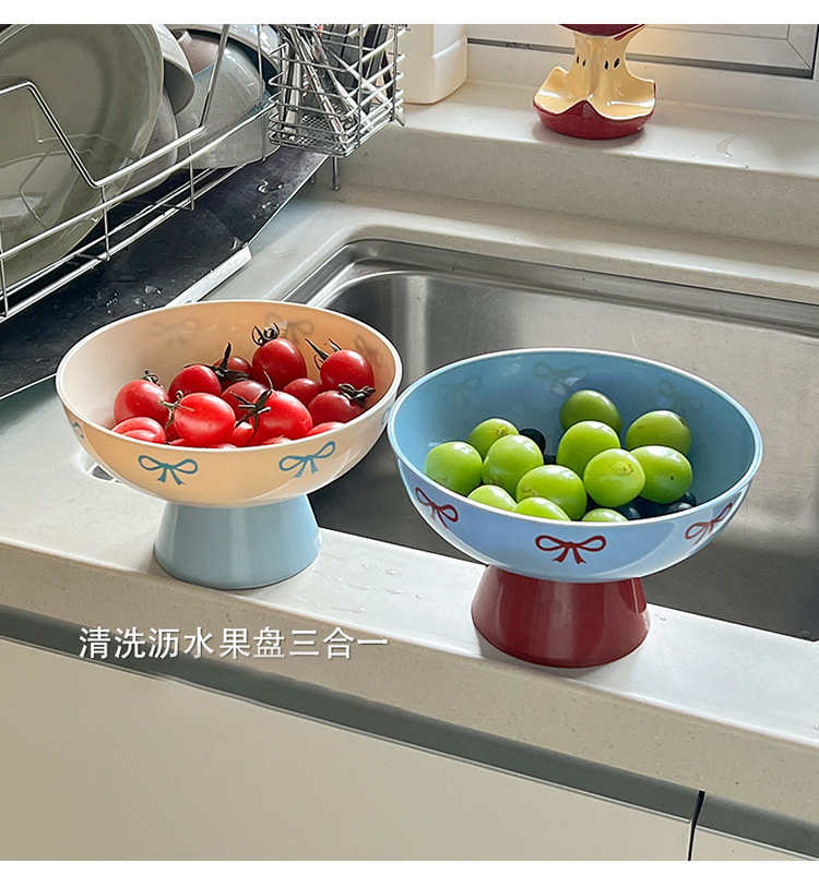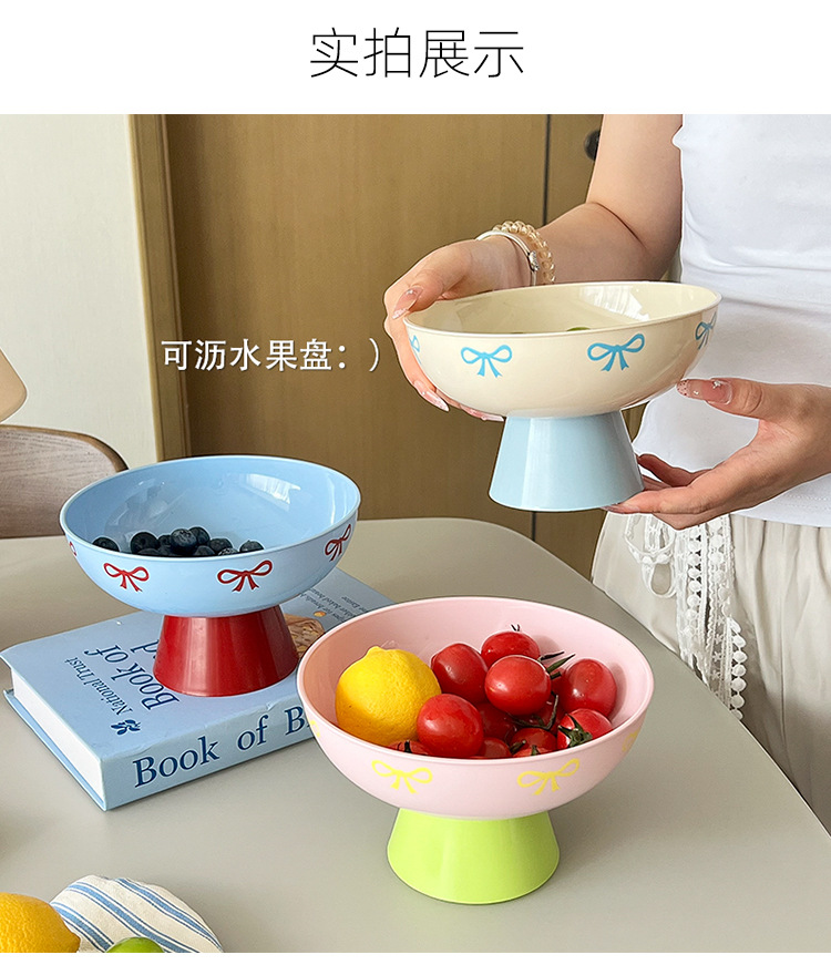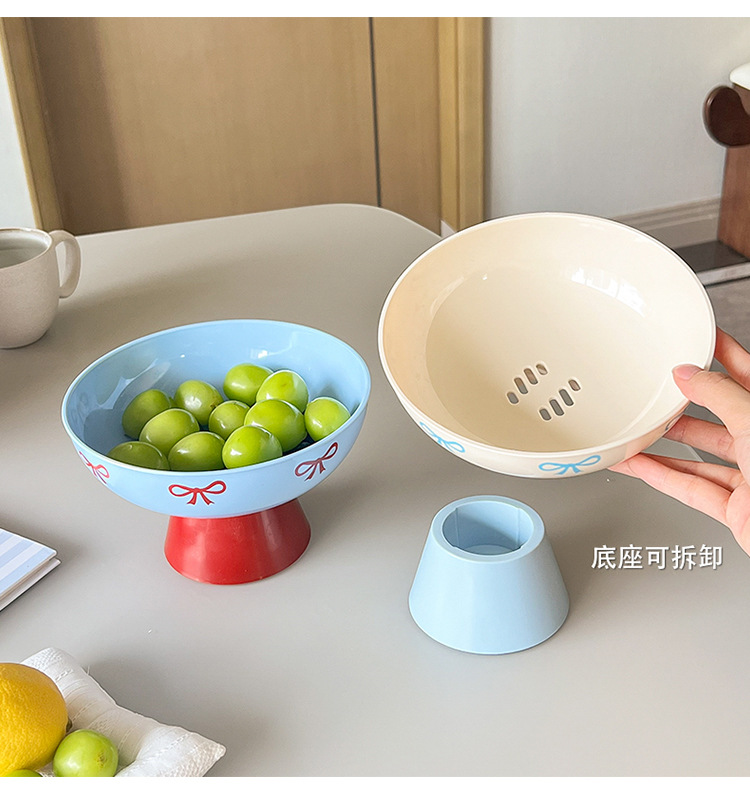dim sum plate high foot fruit plate bow blue drain fruit plate girl heart pink dopamine fruit plate drain basket