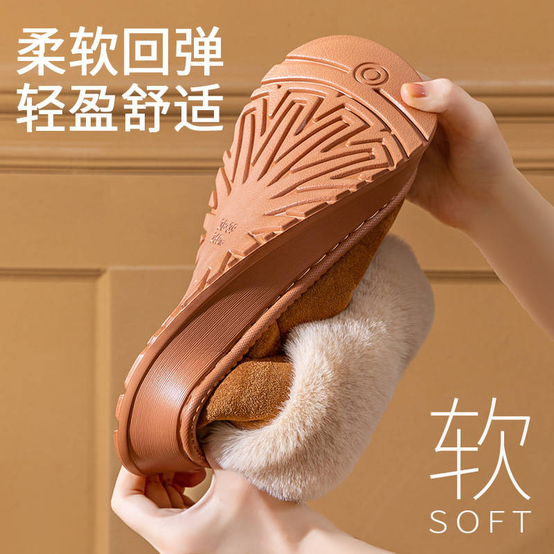 踩屎感毛绒保暖包跟棉拖鞋女冬加绒厚底防滑居家可爱情侣毛毛棉鞋