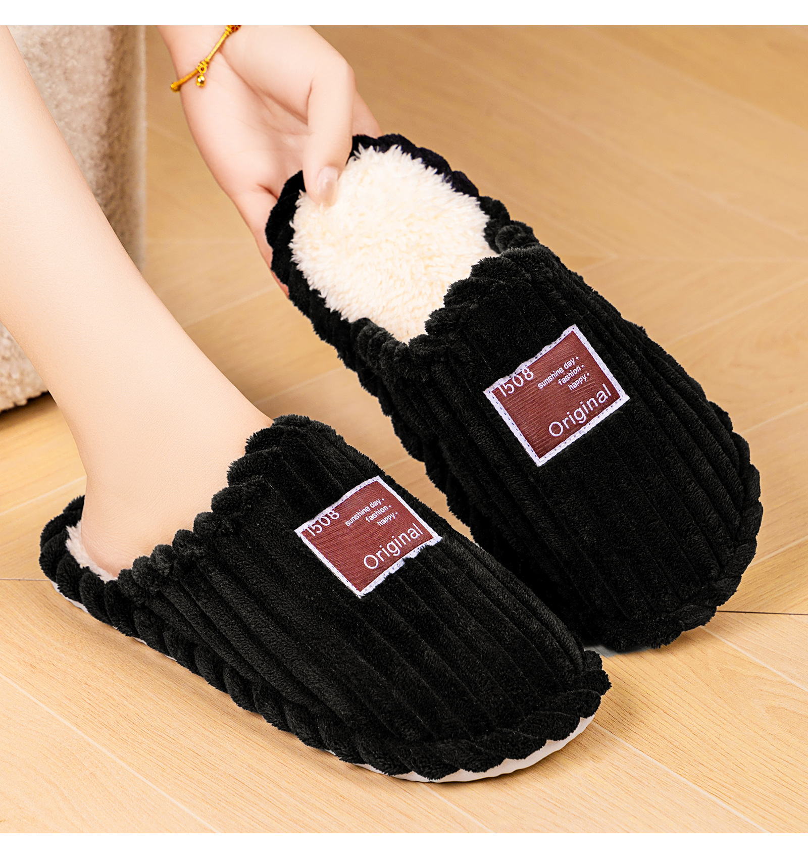 拖鞋冬季居家新款棉拖跨境休闲舒适家具棉鞋一脚蹬加绒棉拖鞋批发