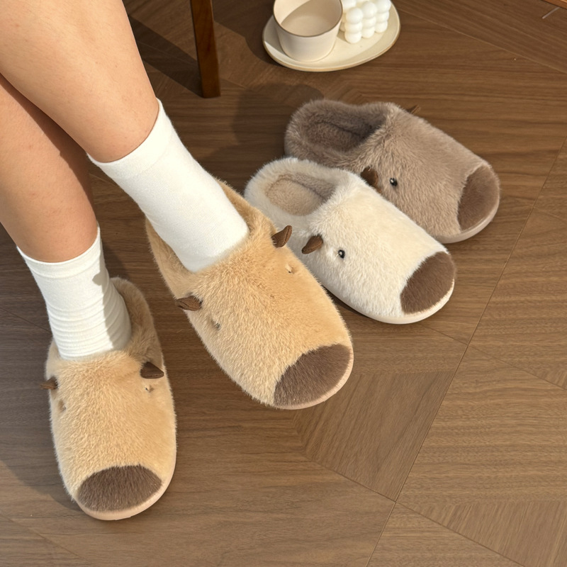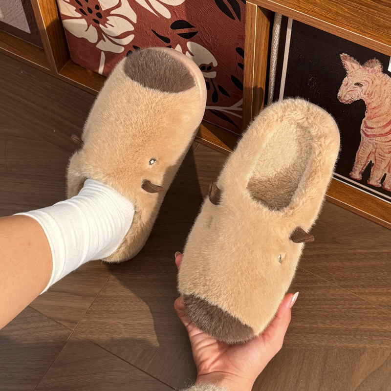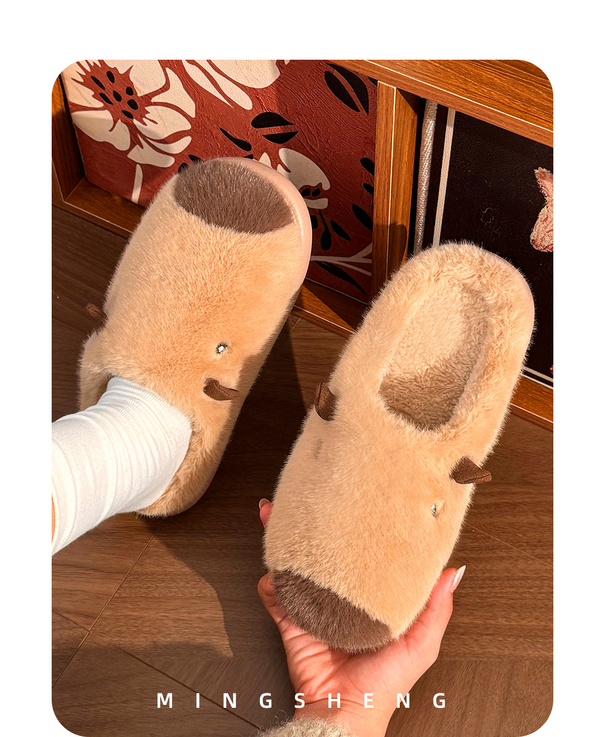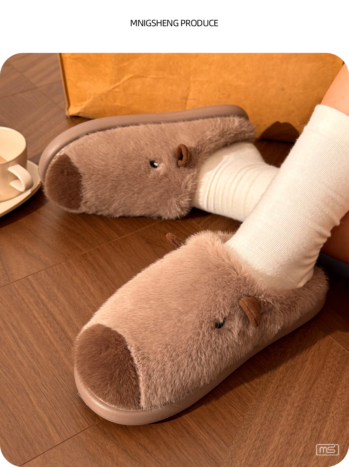 棉拖鞋女款秋冬卡皮巴拉毛绒拖鞋冬季可爱室内保暖居家办公棉鞋男