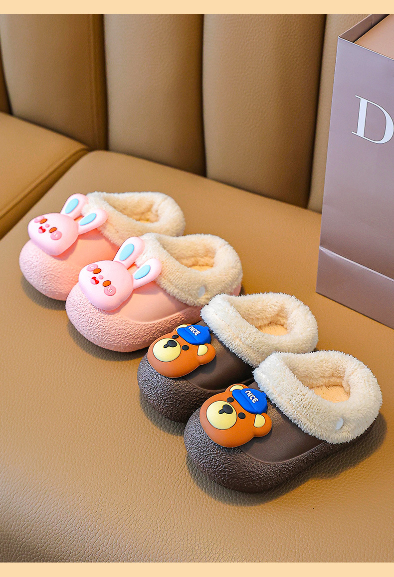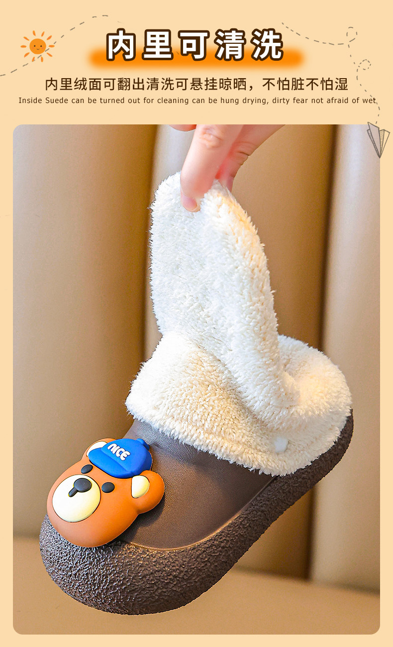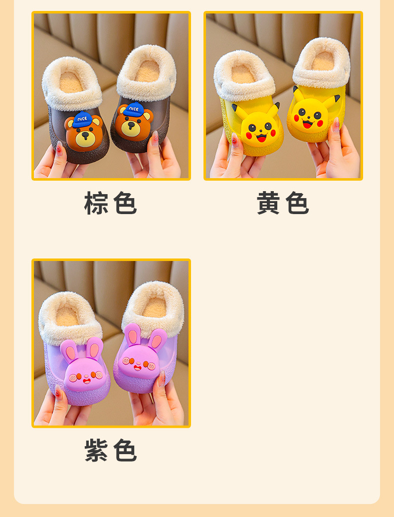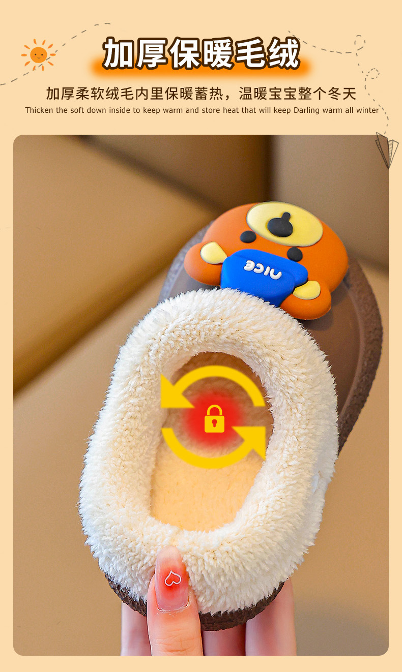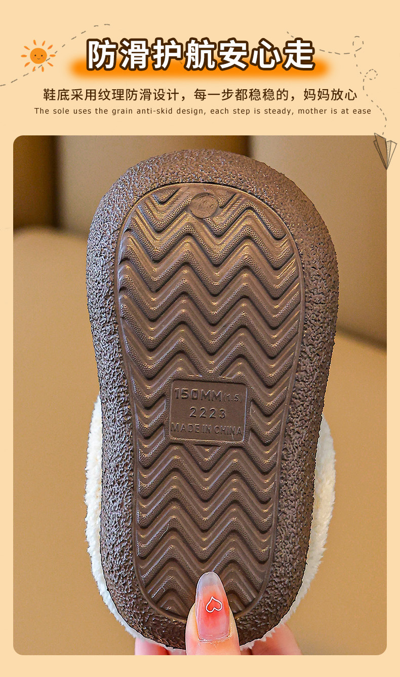 儿童棉拖鞋女童秋冬季卡通可爱公仔立体宝宝加绒加厚毛绒拖鞋包跟