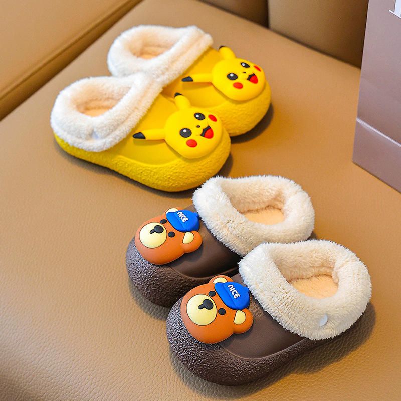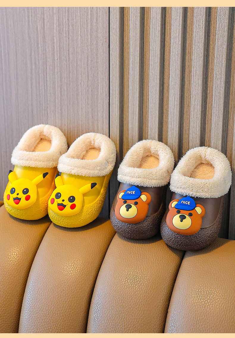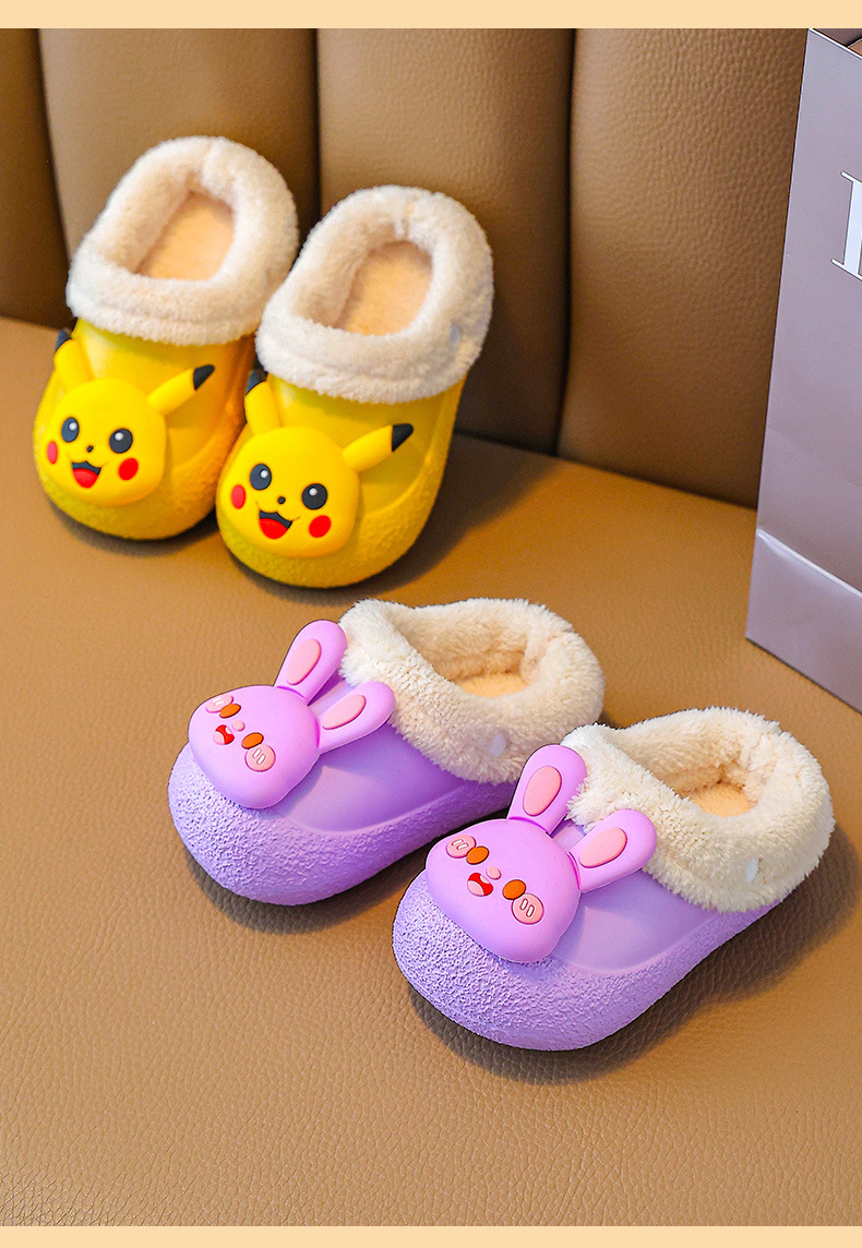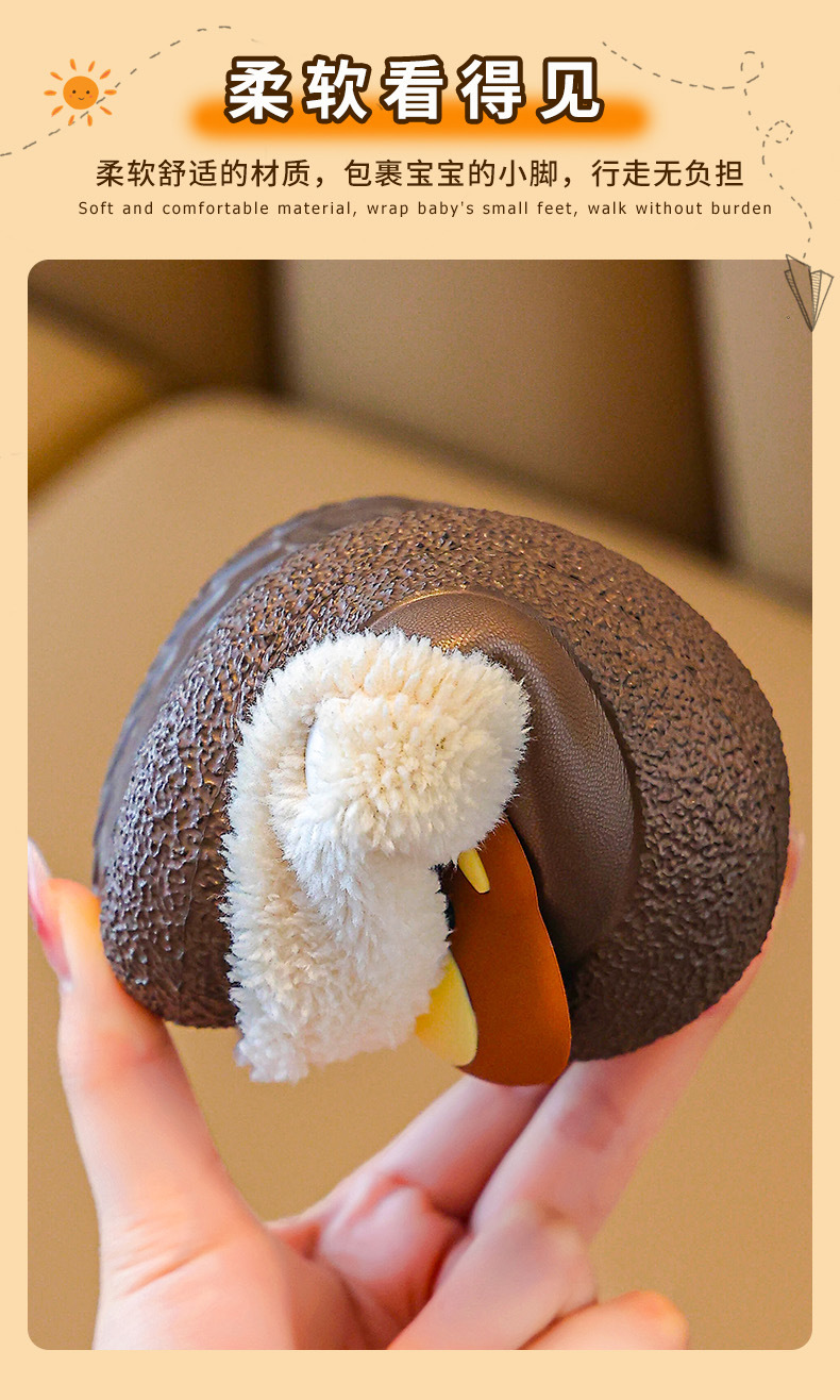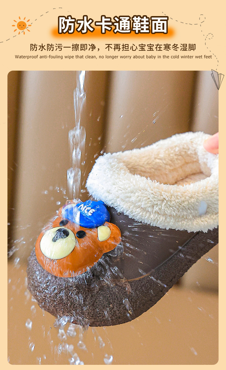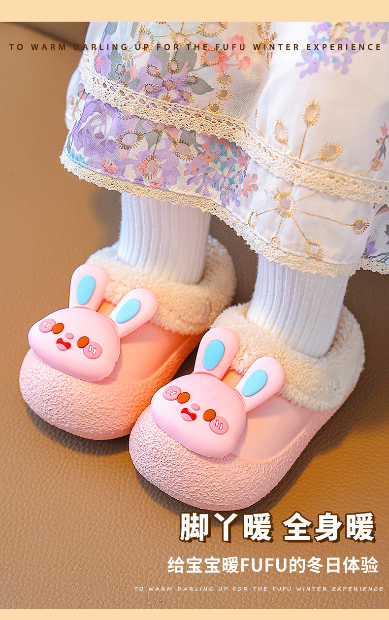 儿童棉拖鞋女童秋冬季卡通可爱公仔立体宝宝加绒加厚毛绒拖鞋包跟