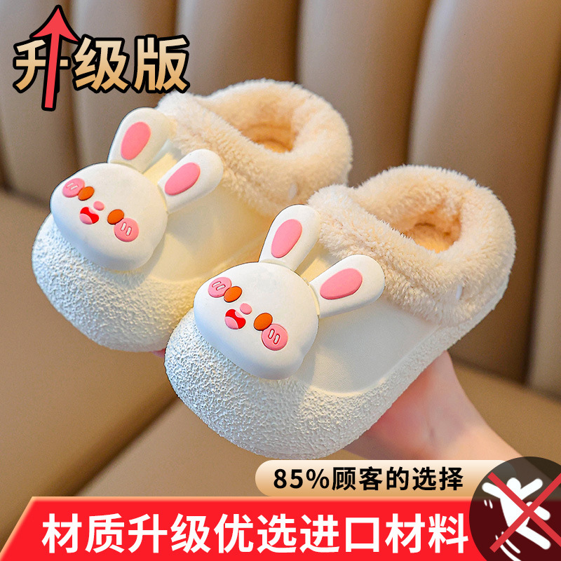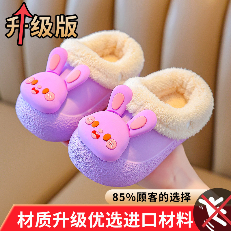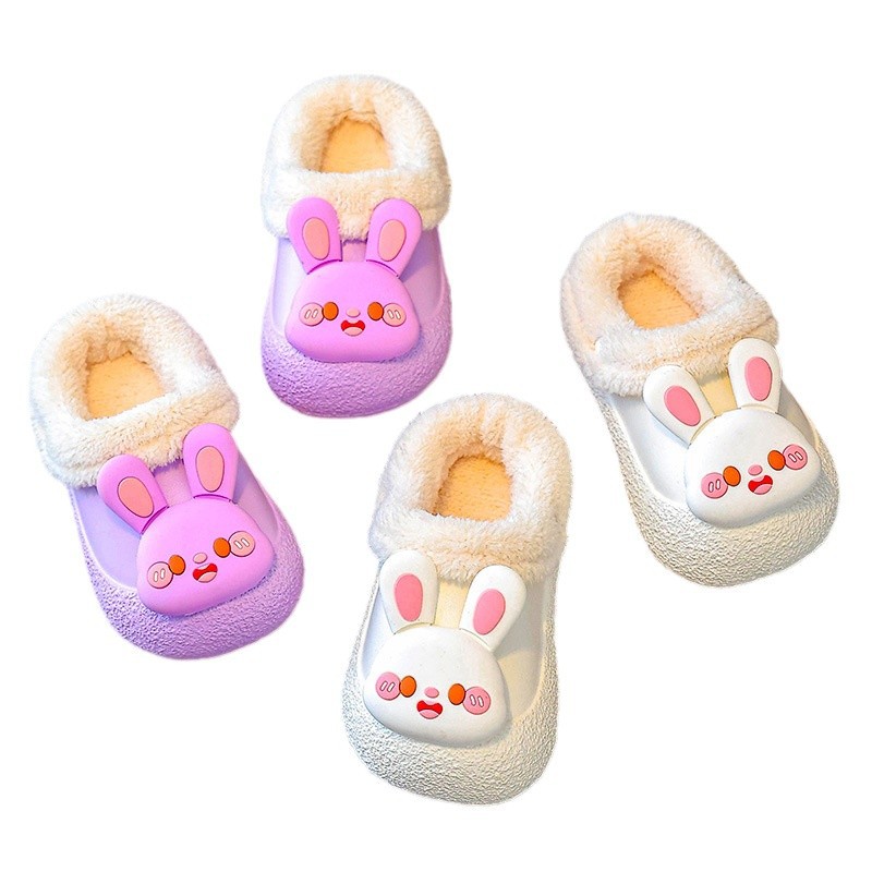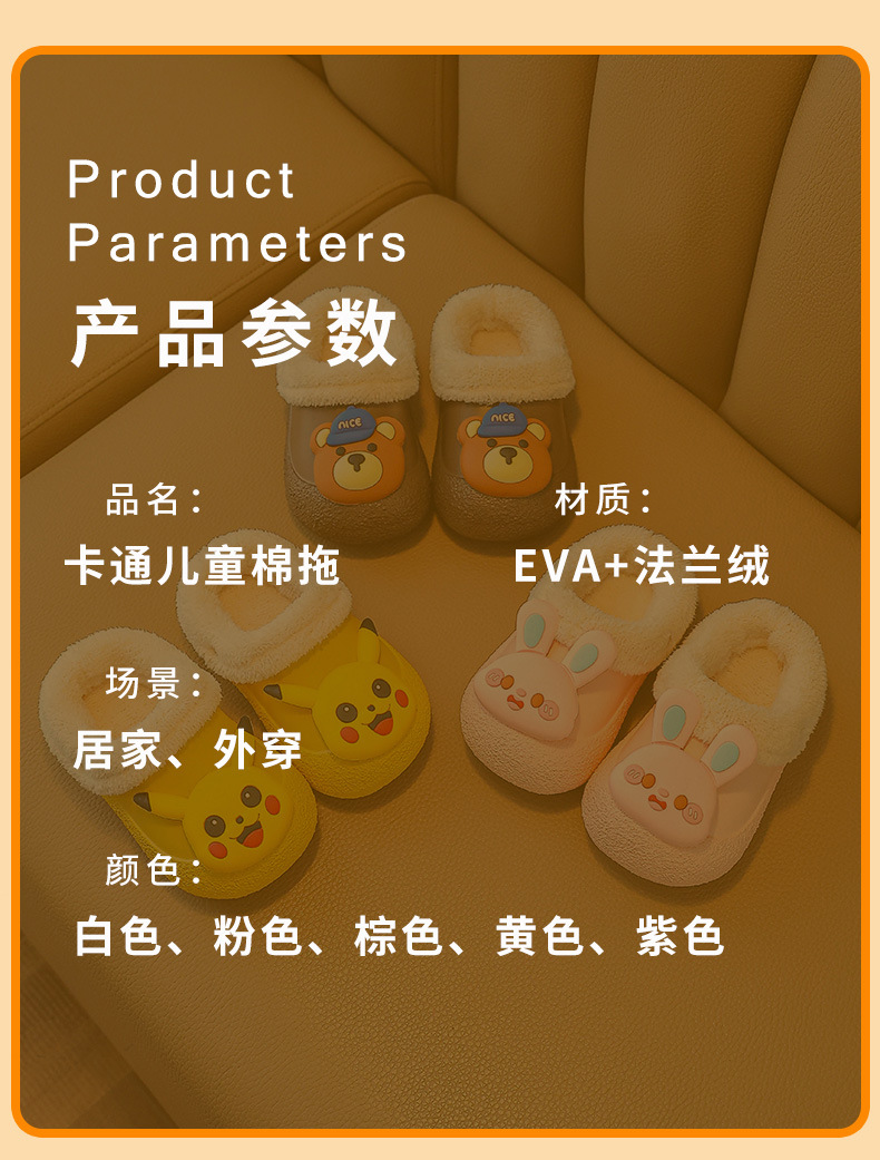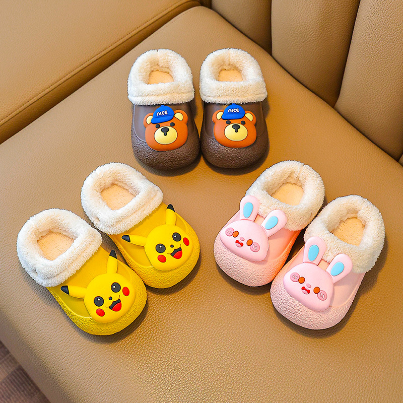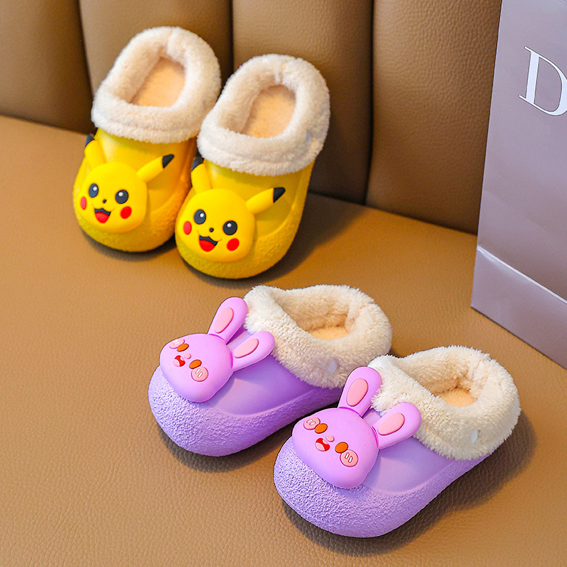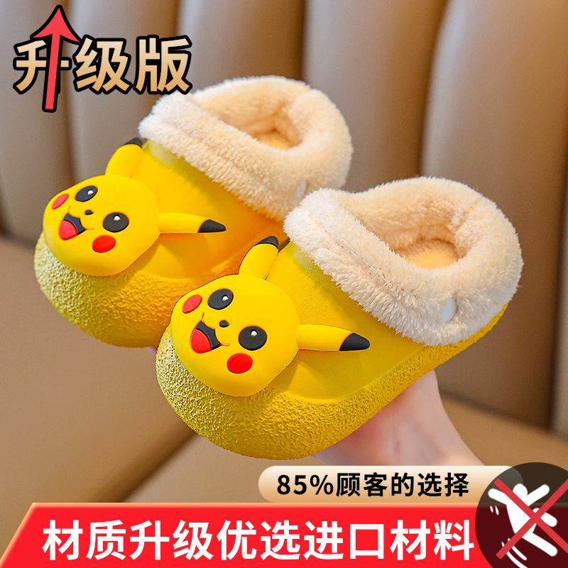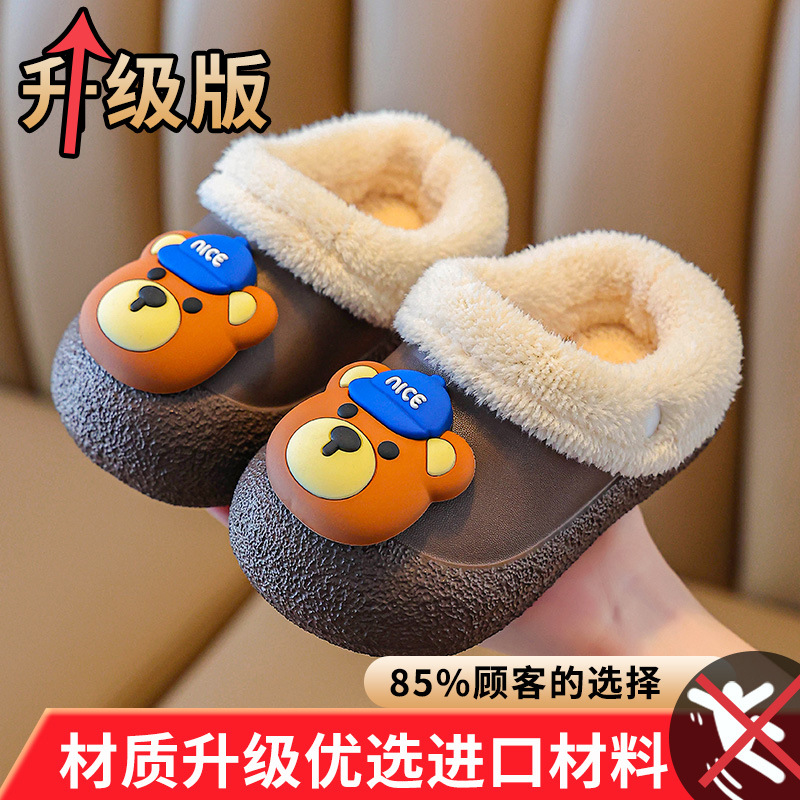 儿童棉拖鞋女童秋冬季卡通可爱公仔立体宝宝加绒加厚毛绒拖鞋包跟