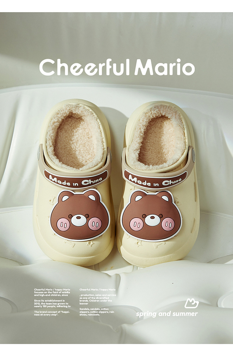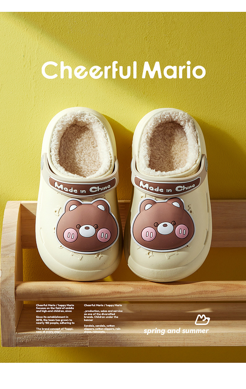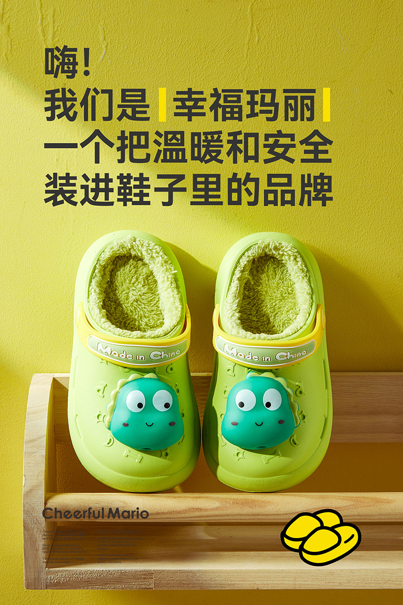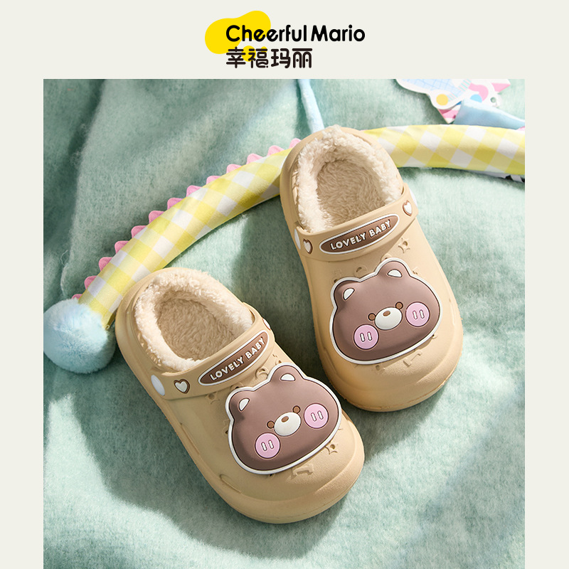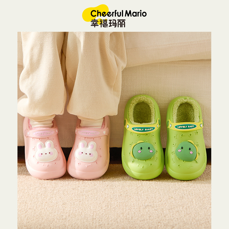 幸福玛丽儿童棉鞋秋冬保暖加绒防水婴幼儿eva女童小宝宝毛毛棉拖