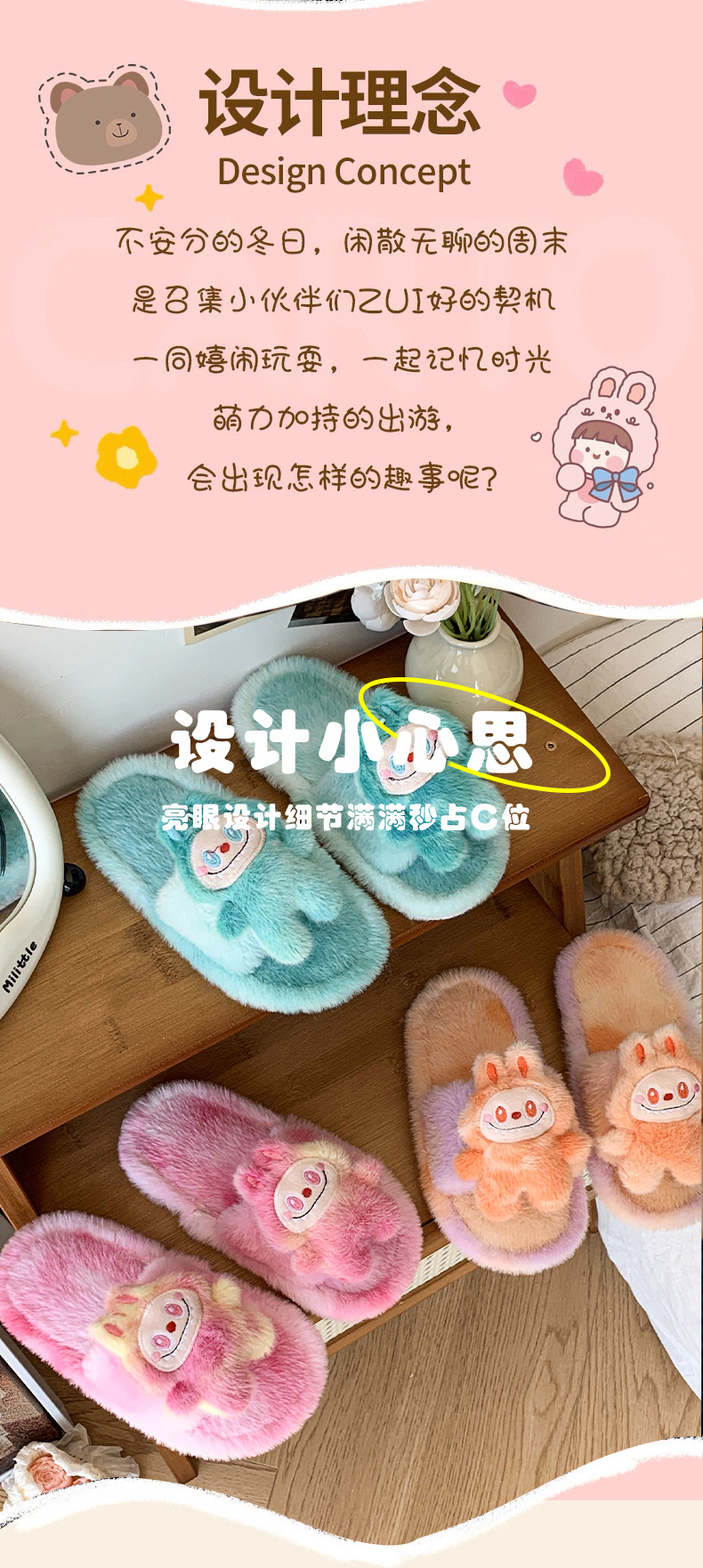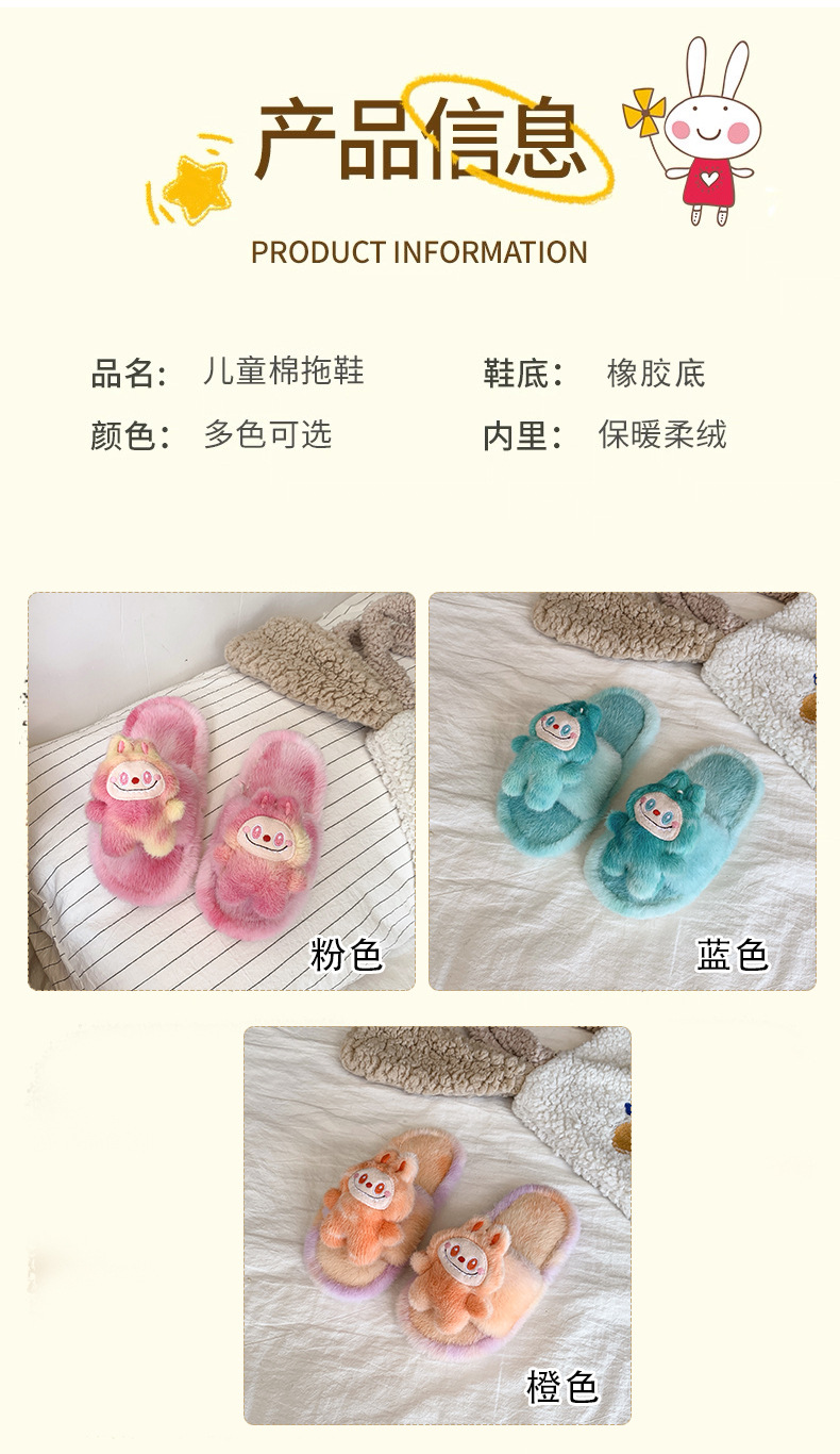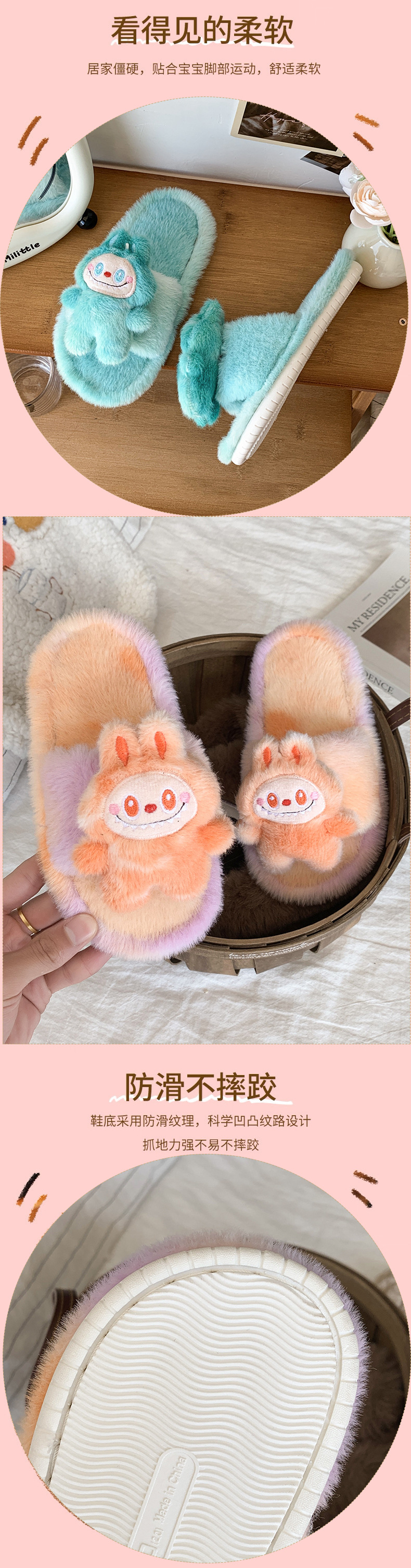 儿童棉拖鞋室内外穿2025秋冬毛拖鞋卡通可爱拉布布男女童毛毛拖鞋