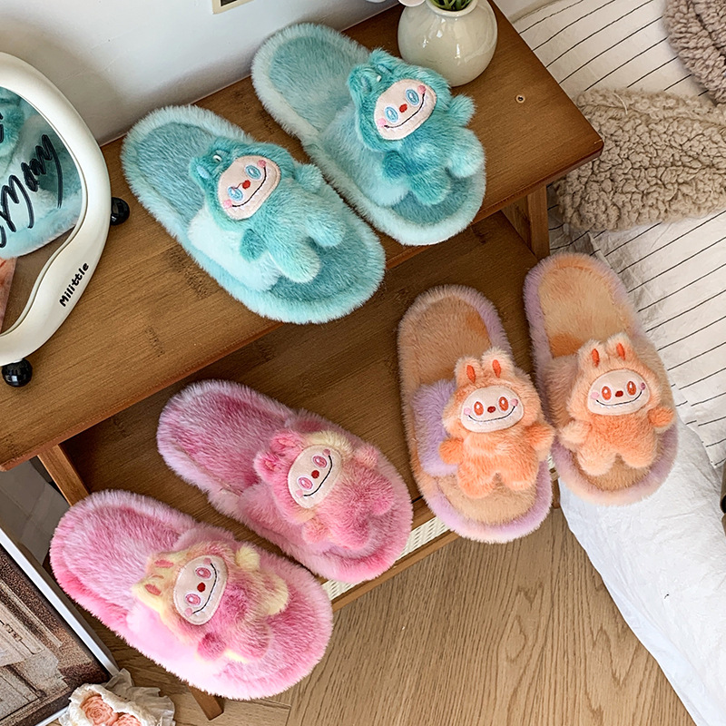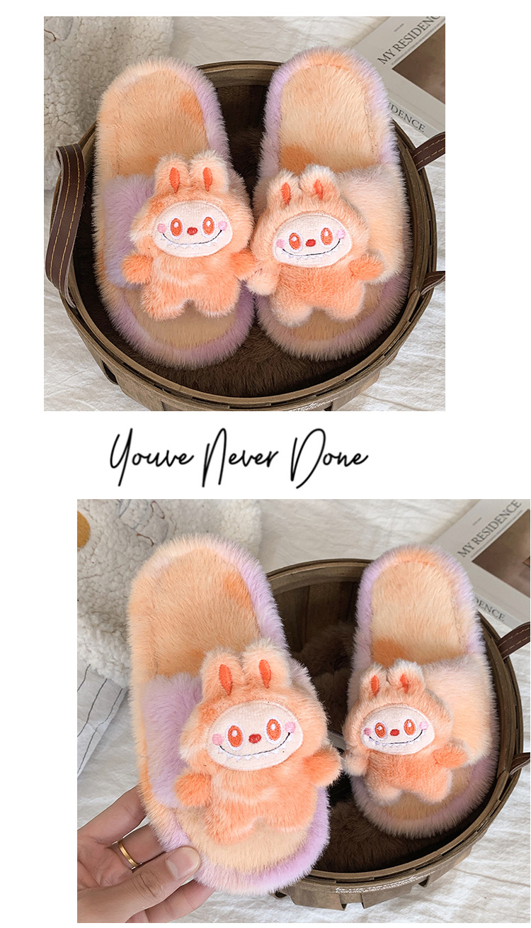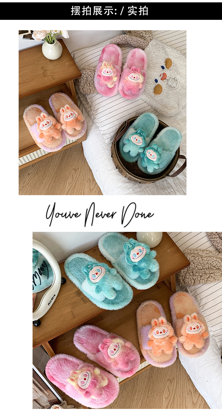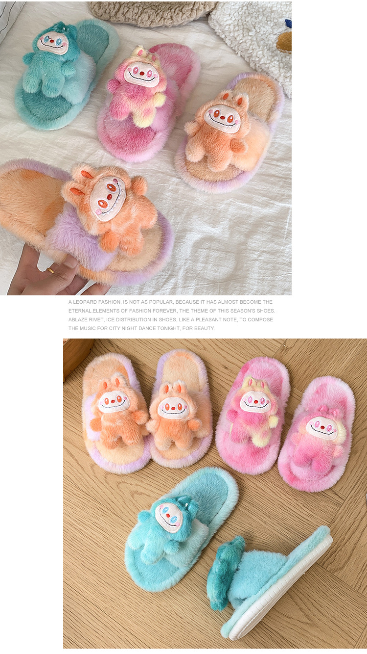 儿童棉拖鞋室内外穿2025秋冬毛拖鞋卡通可爱拉布布男女童毛毛拖鞋