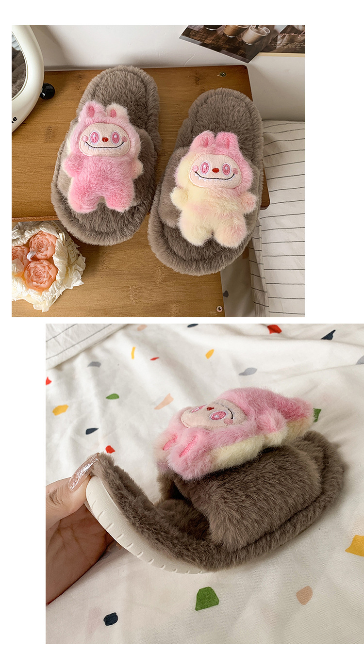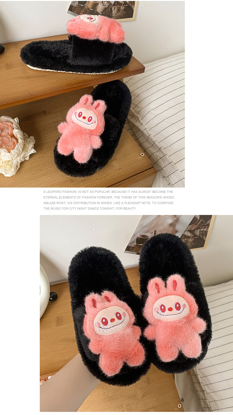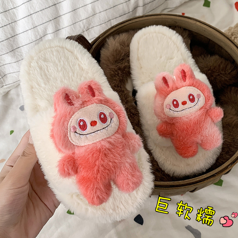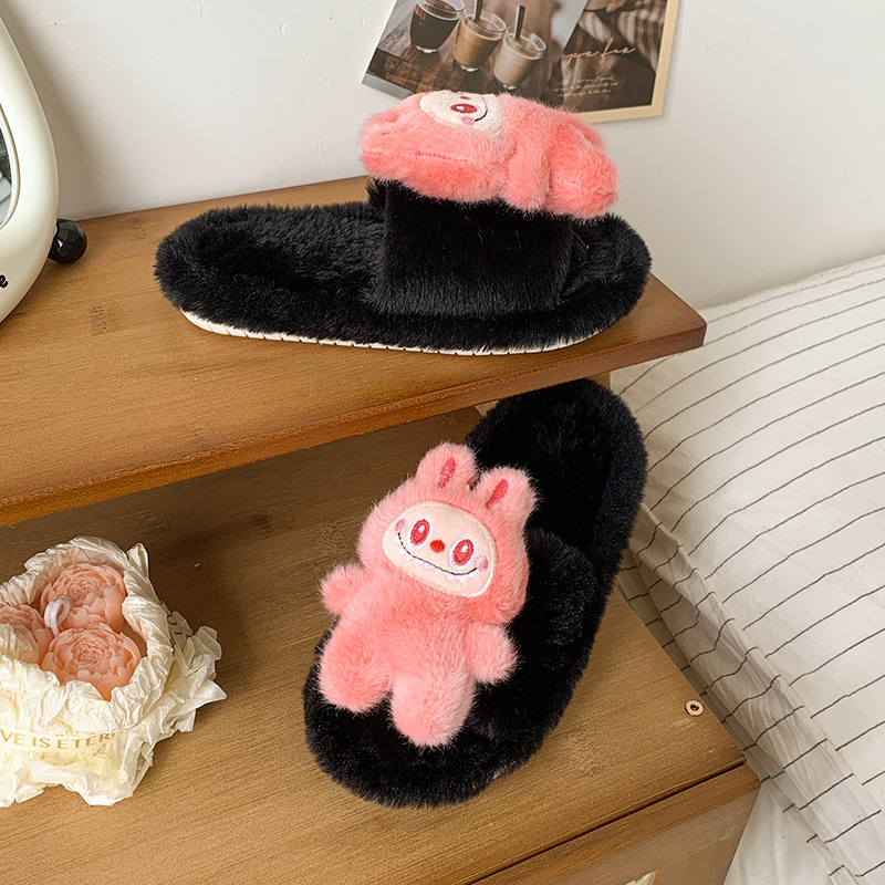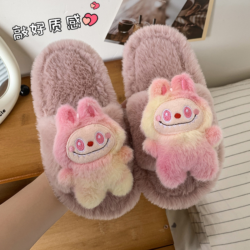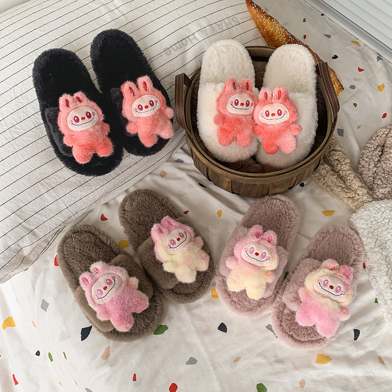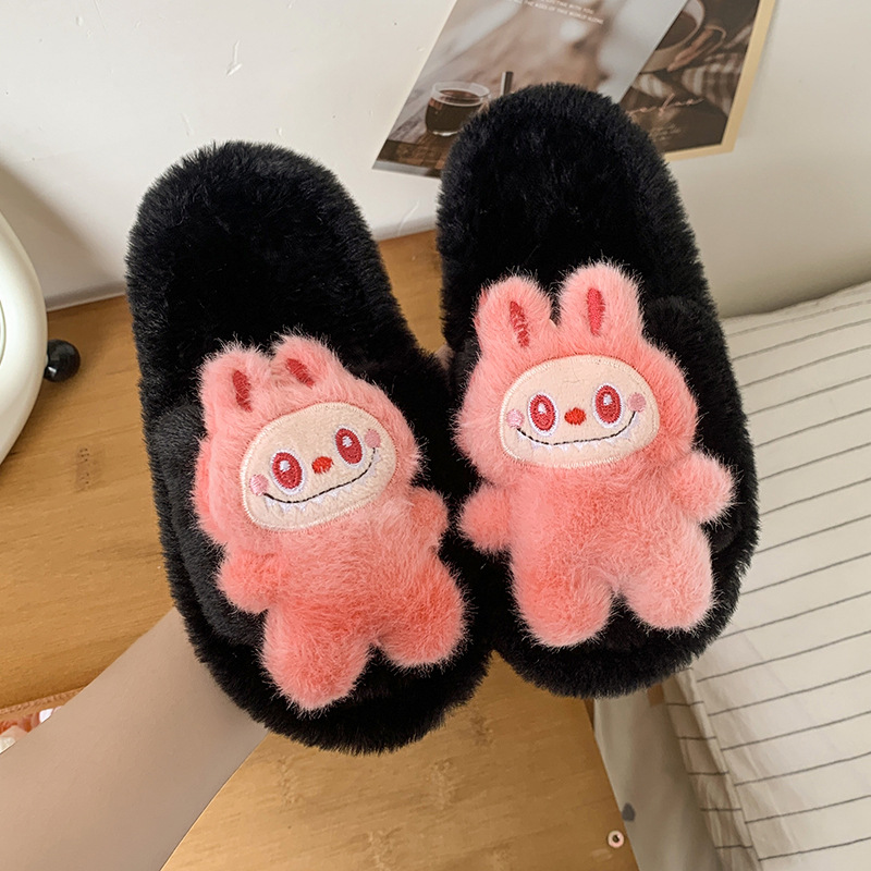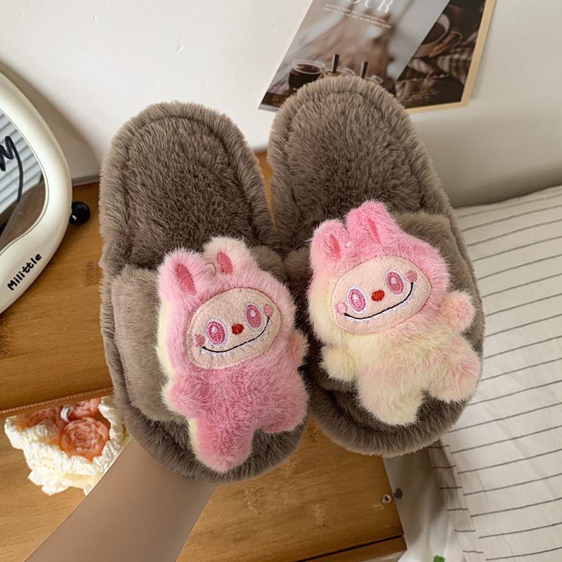 跨境亚马逊新款男女儿童拉布布一字室内居家毛毛拖鞋可爱公仔棉拖