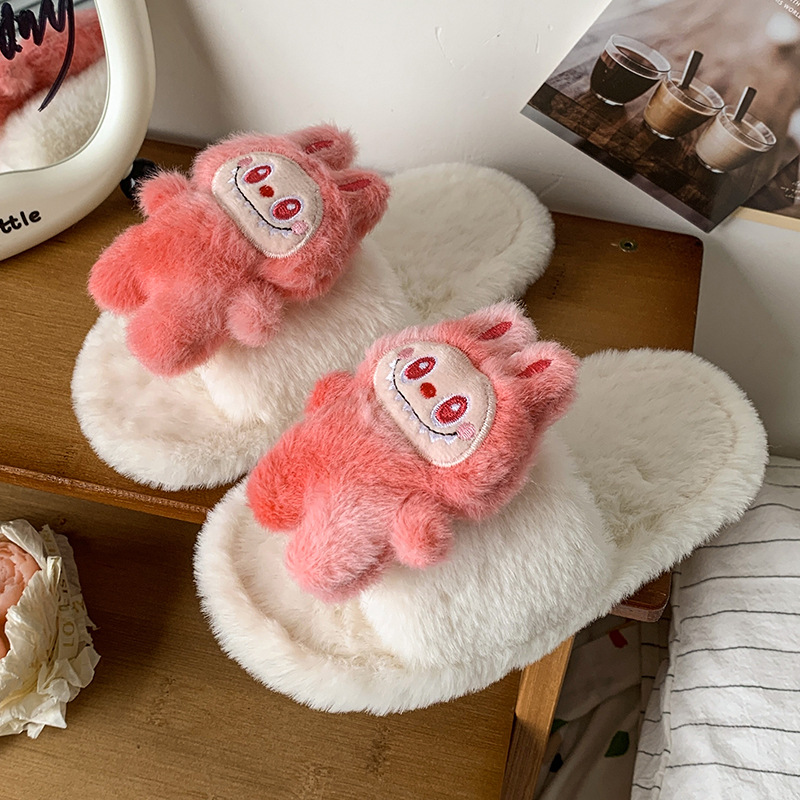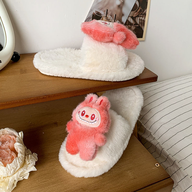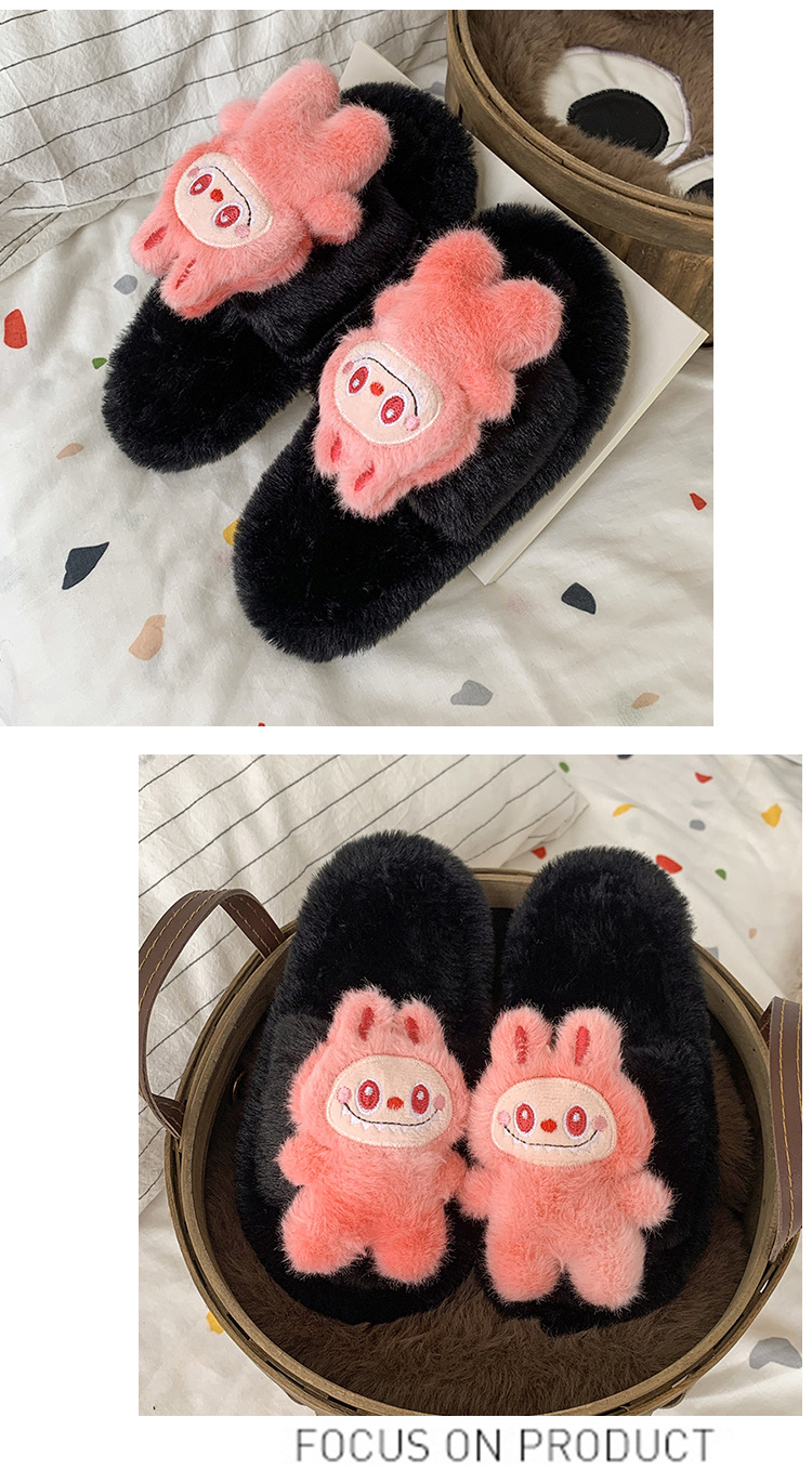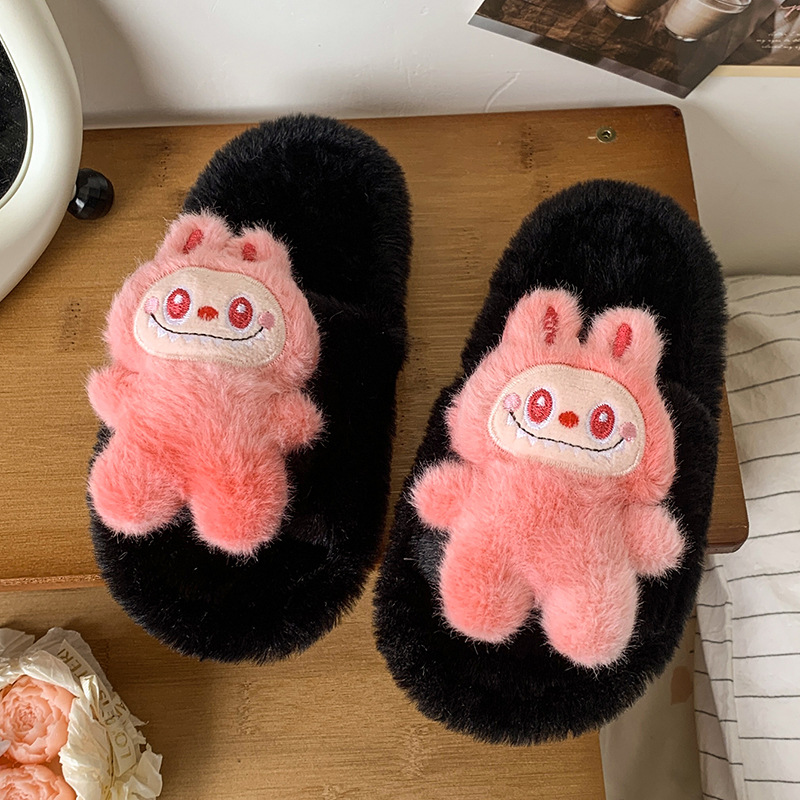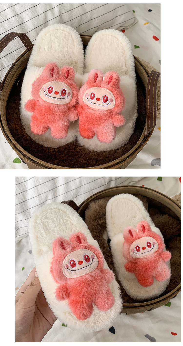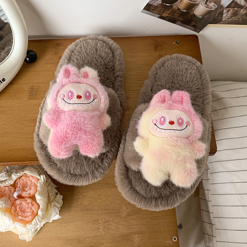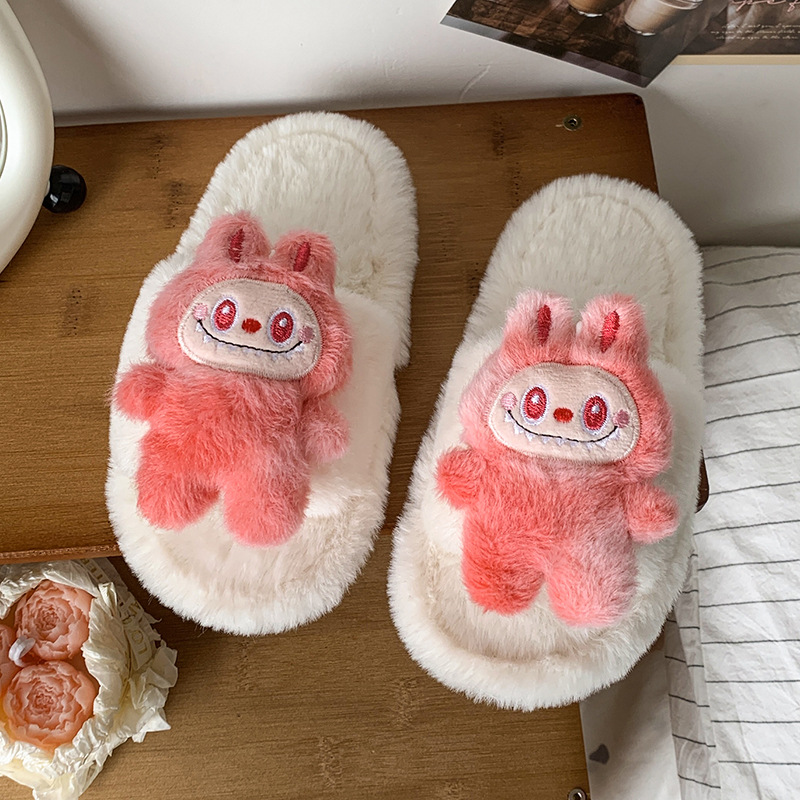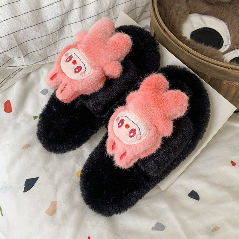 跨境亚马逊新款男女儿童拉布布一字室内居家毛毛拖鞋可爱公仔棉拖