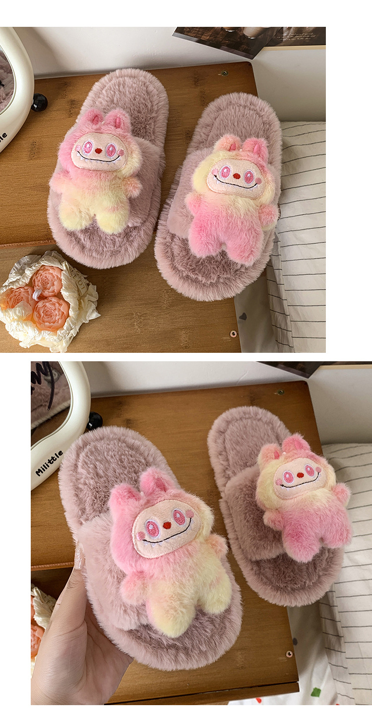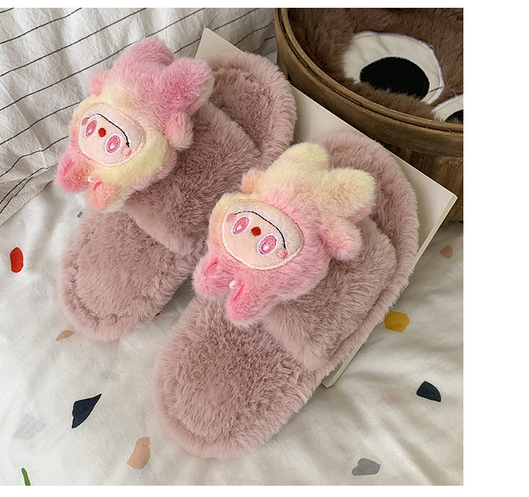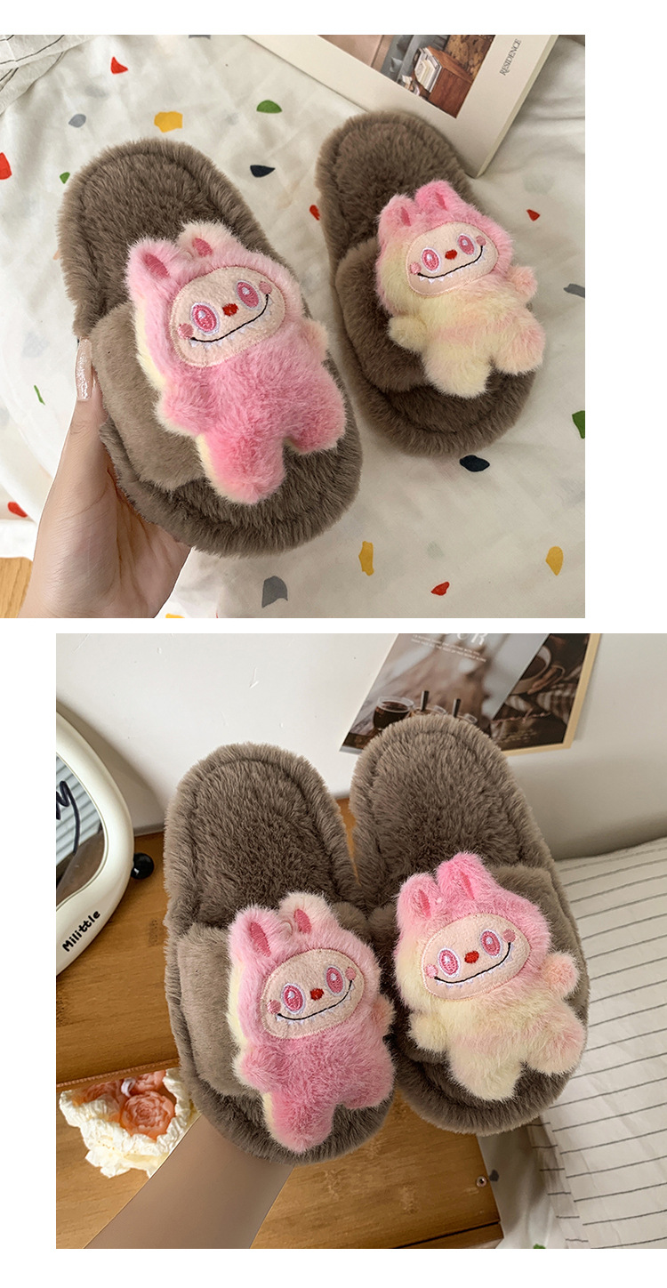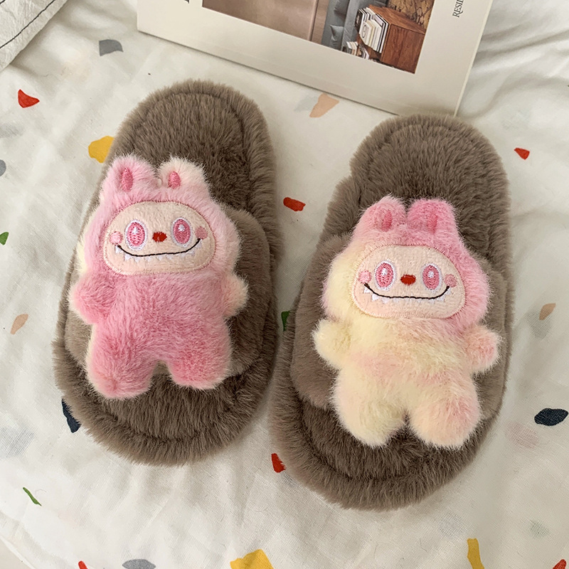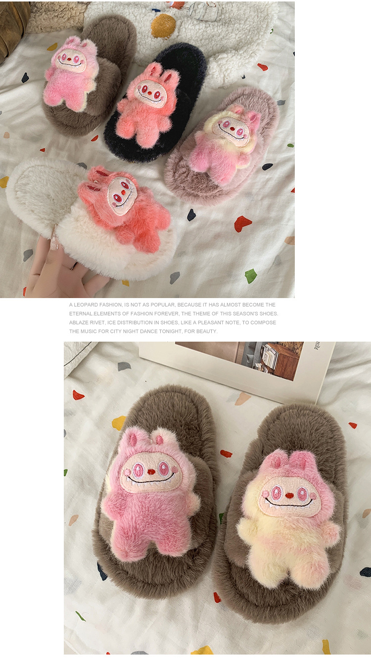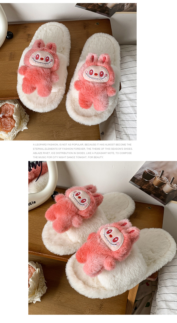 跨境亚马逊新款男女儿童拉布布一字室内居家毛毛拖鞋可爱公仔棉拖