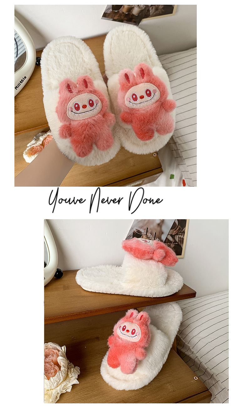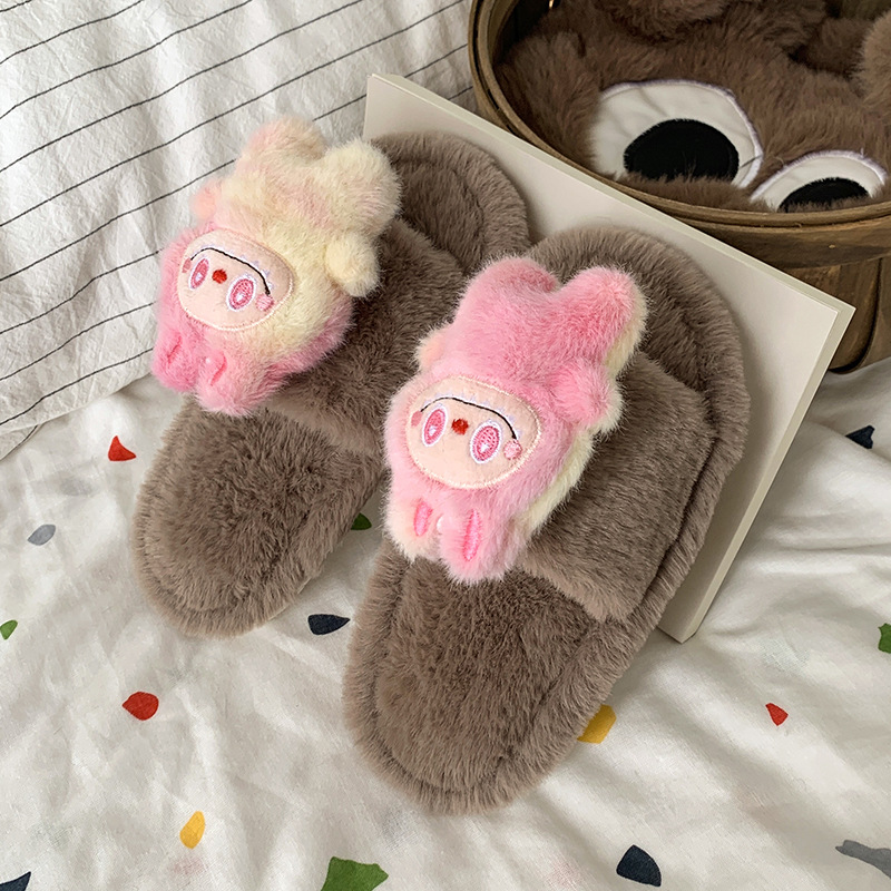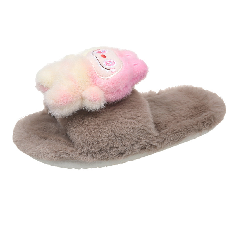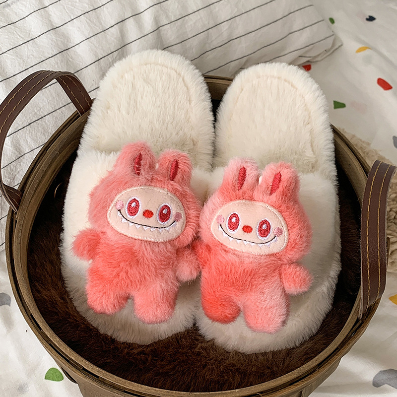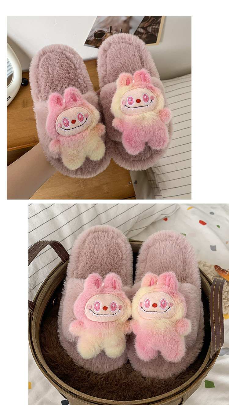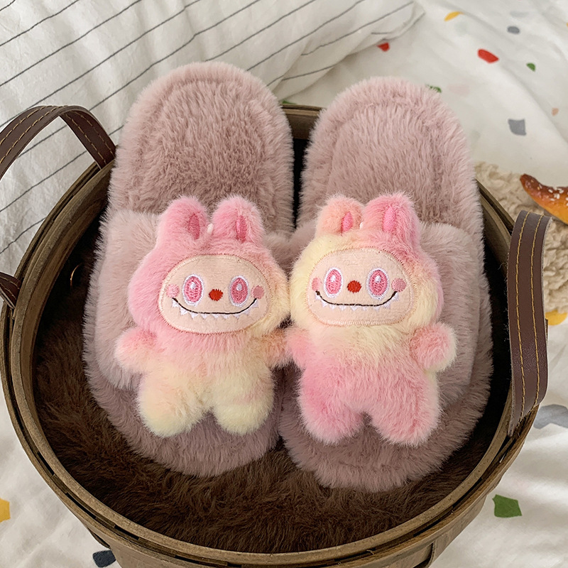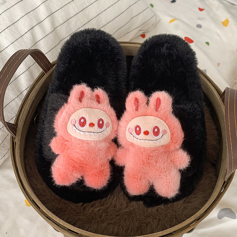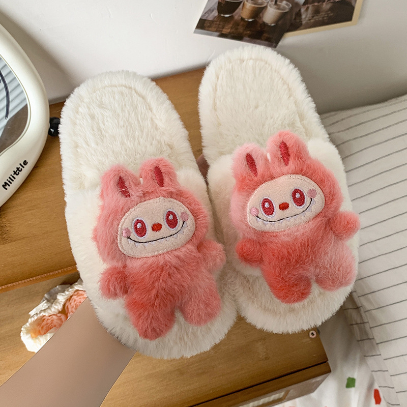 跨境亚马逊新款男女儿童拉布布一字室内居家毛毛拖鞋可爱公仔棉拖