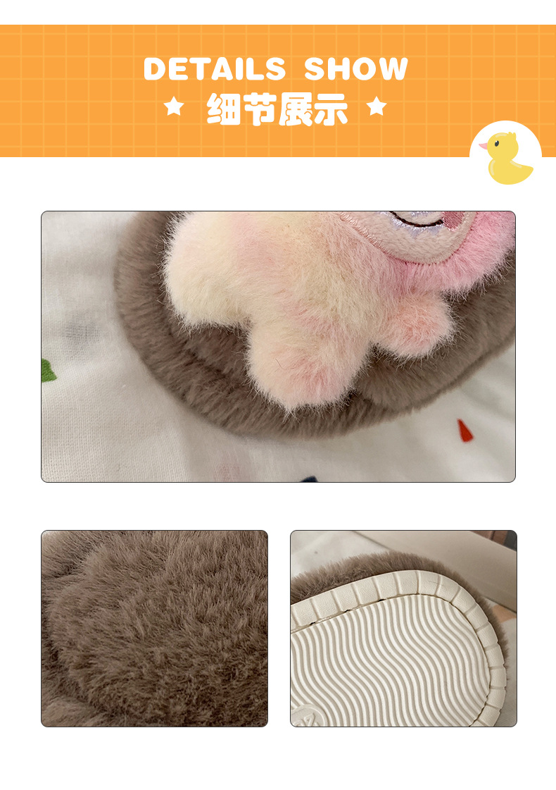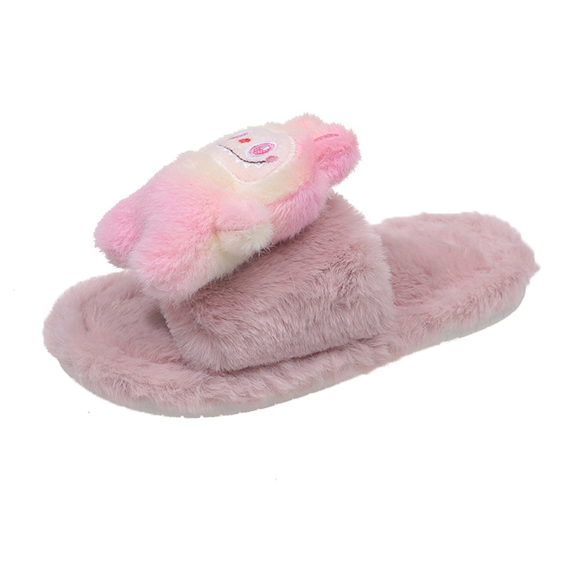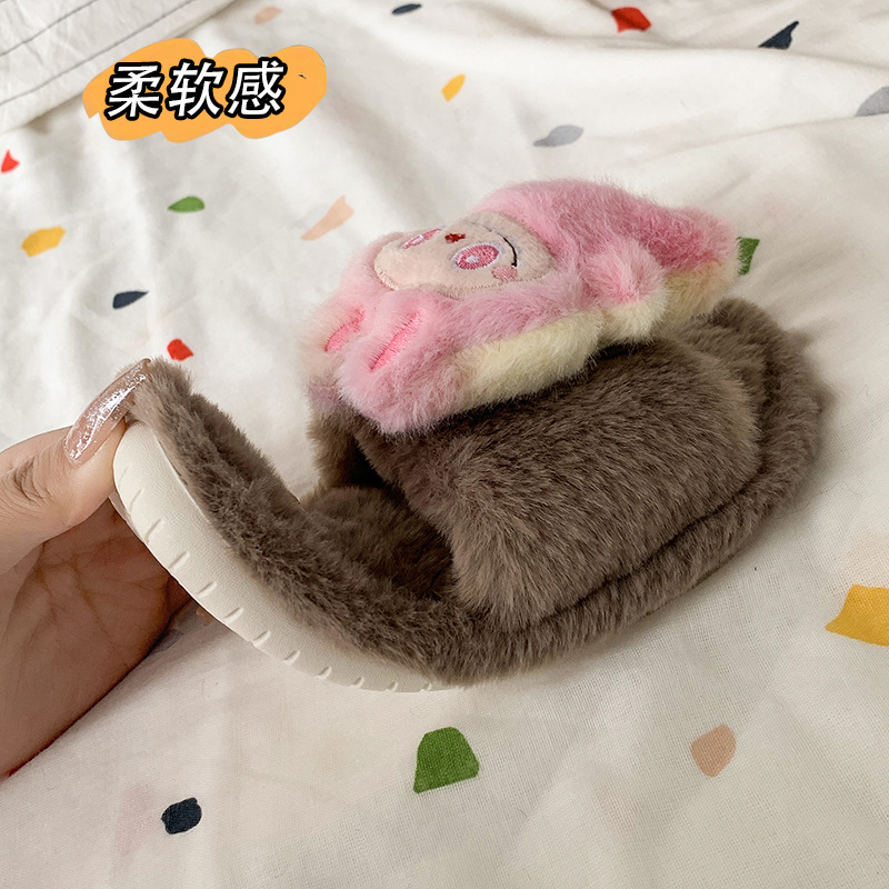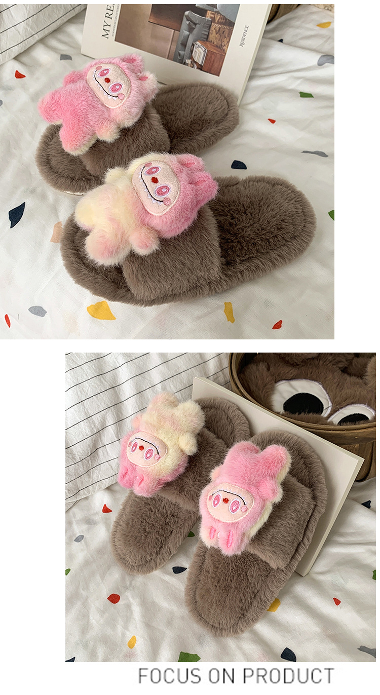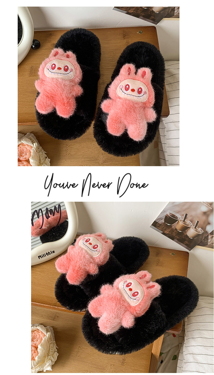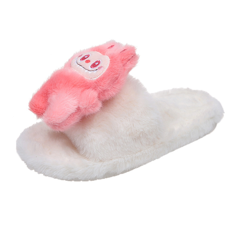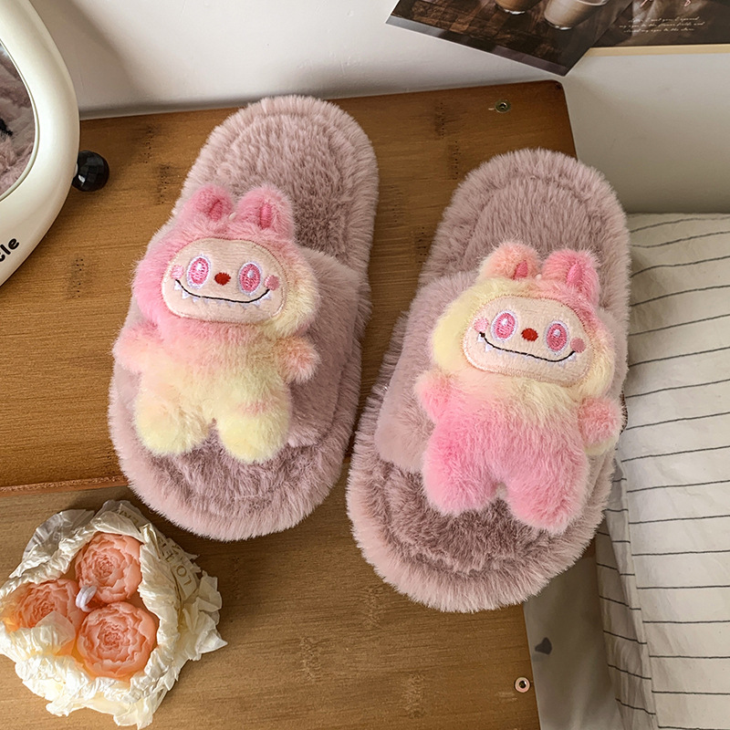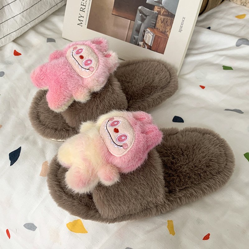 跨境亚马逊新款男女儿童拉布布一字室内居家毛毛拖鞋可爱公仔棉拖