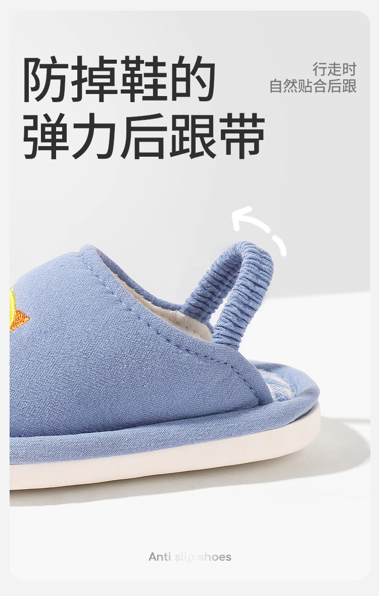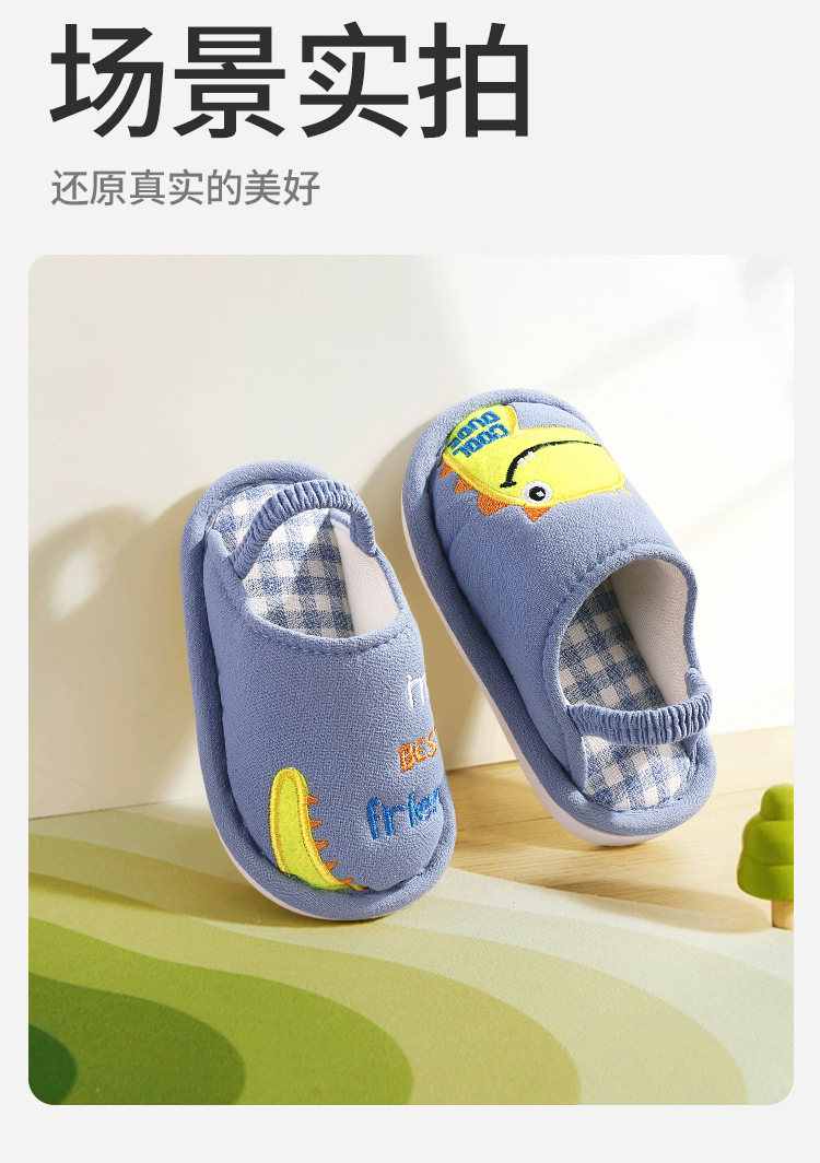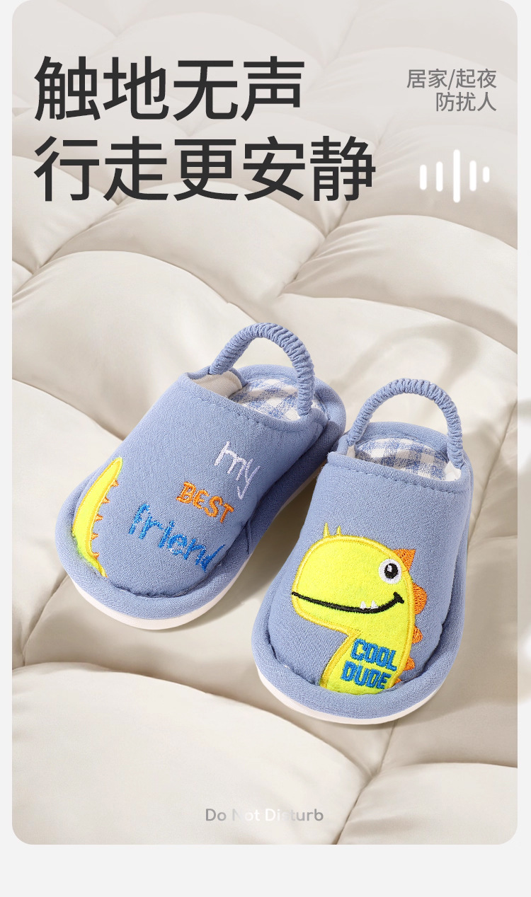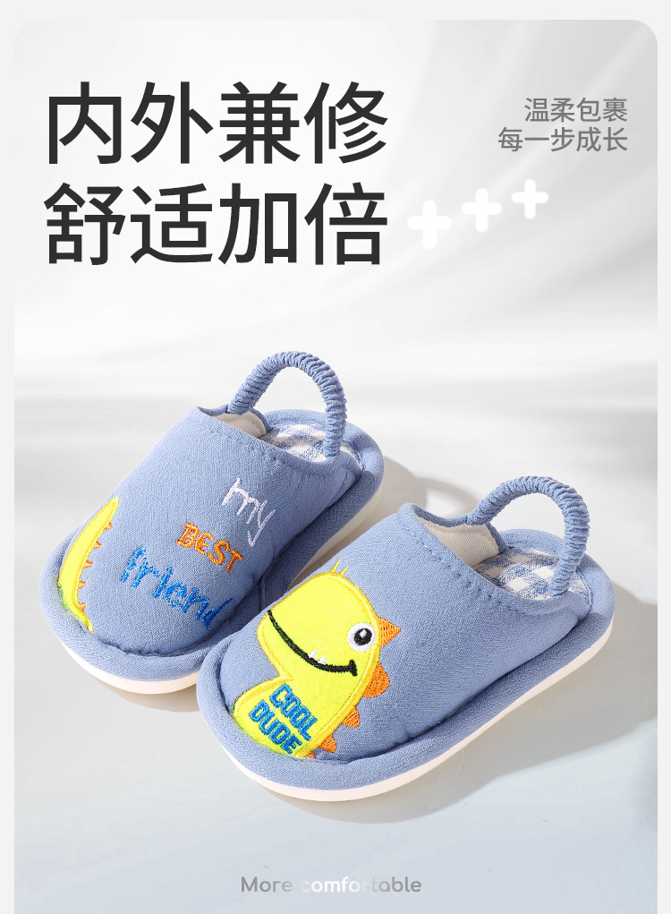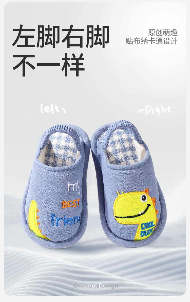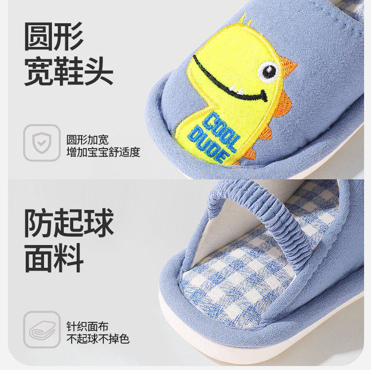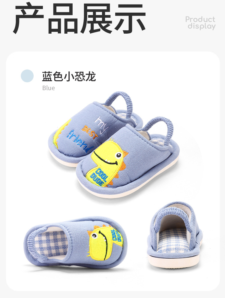 地板拖鞋春季秋季棉布可爱卡通头像女童松紧拖鞋男童恐龙布拖鞋