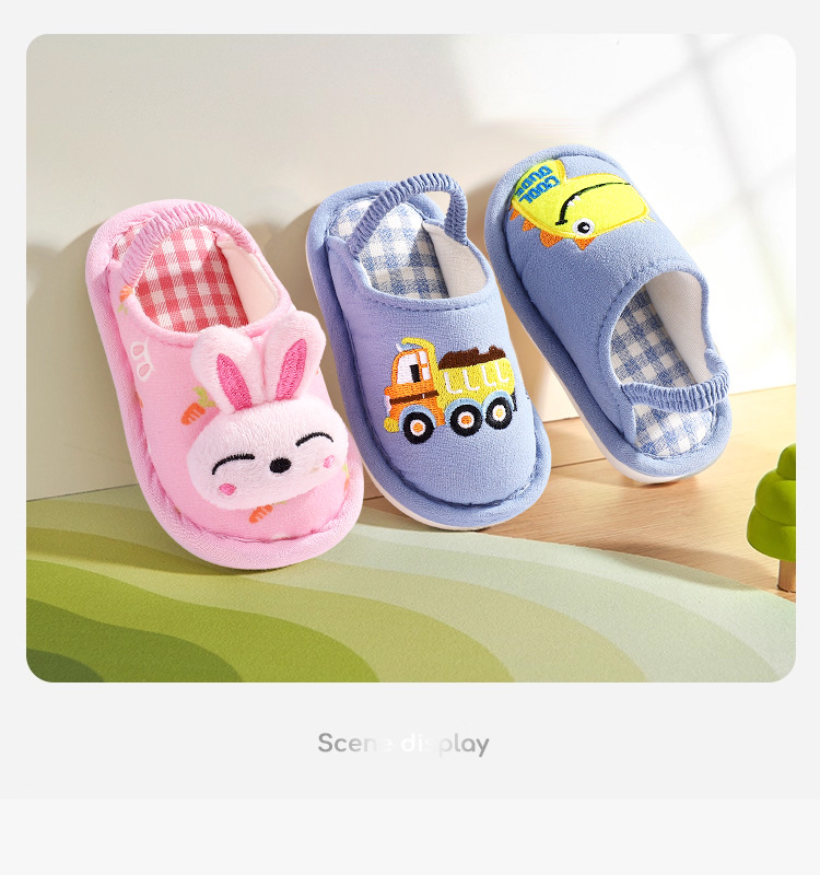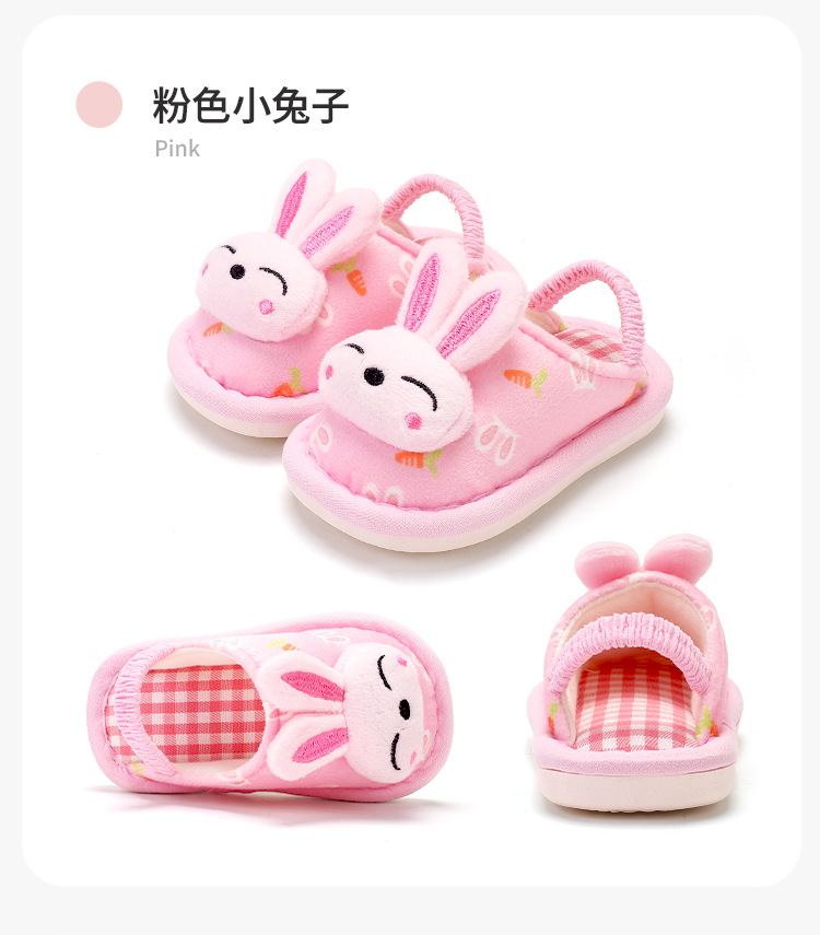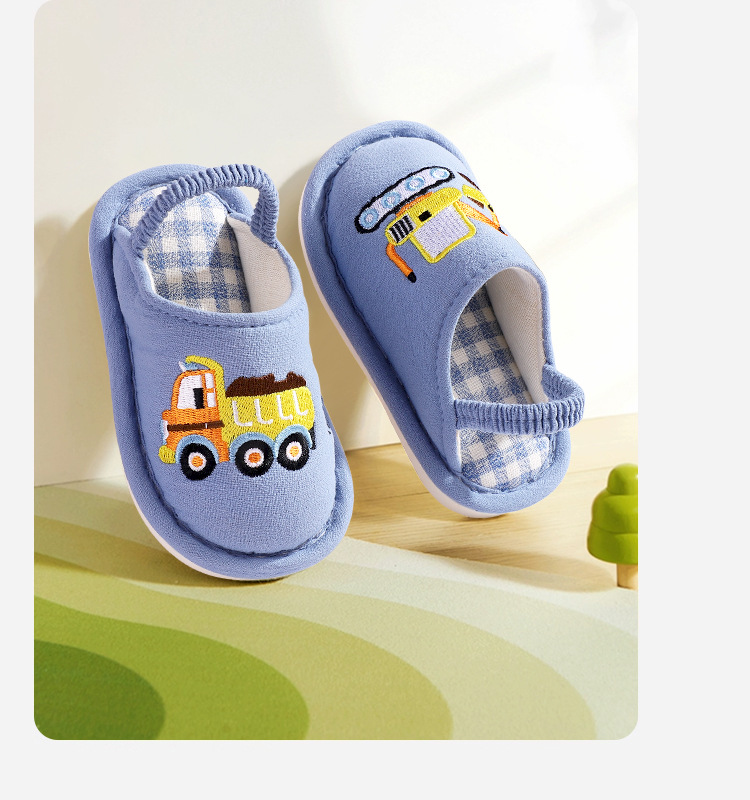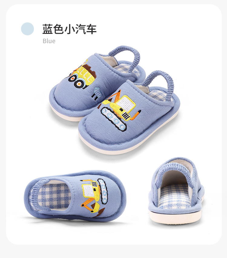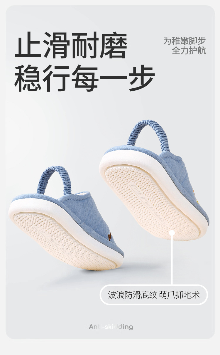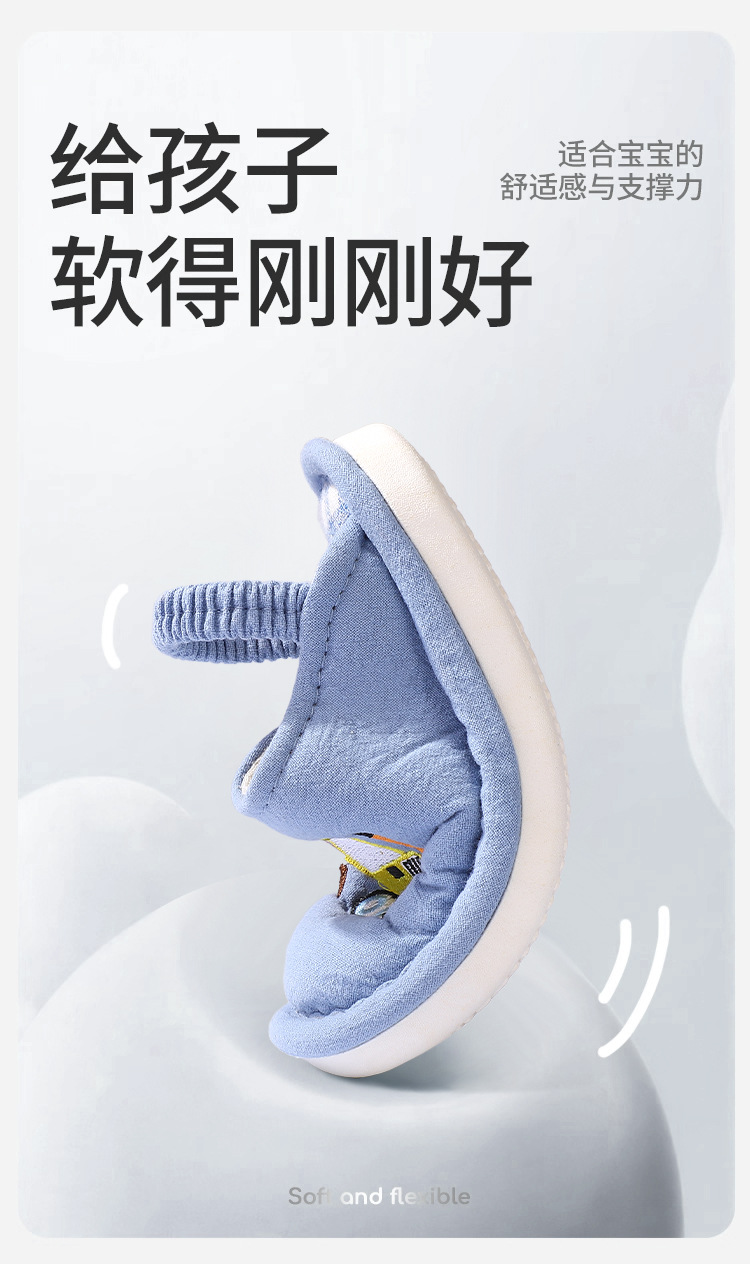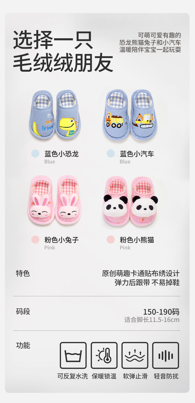 地板拖鞋春季秋季棉布可爱卡通头像女童松紧拖鞋男童恐龙布拖鞋