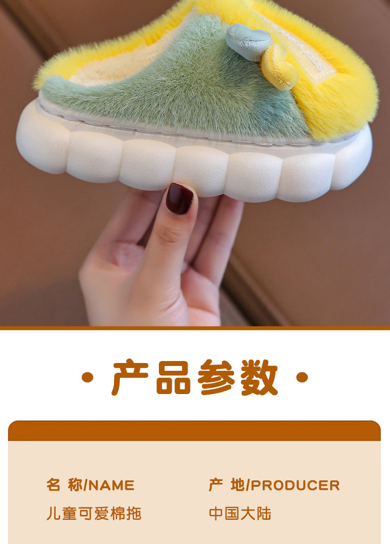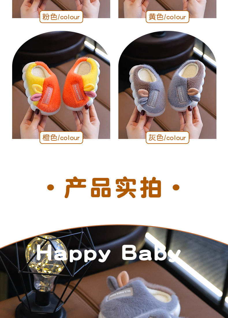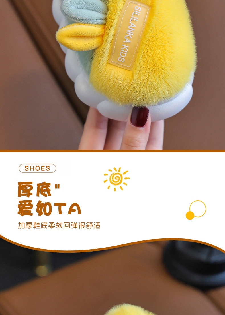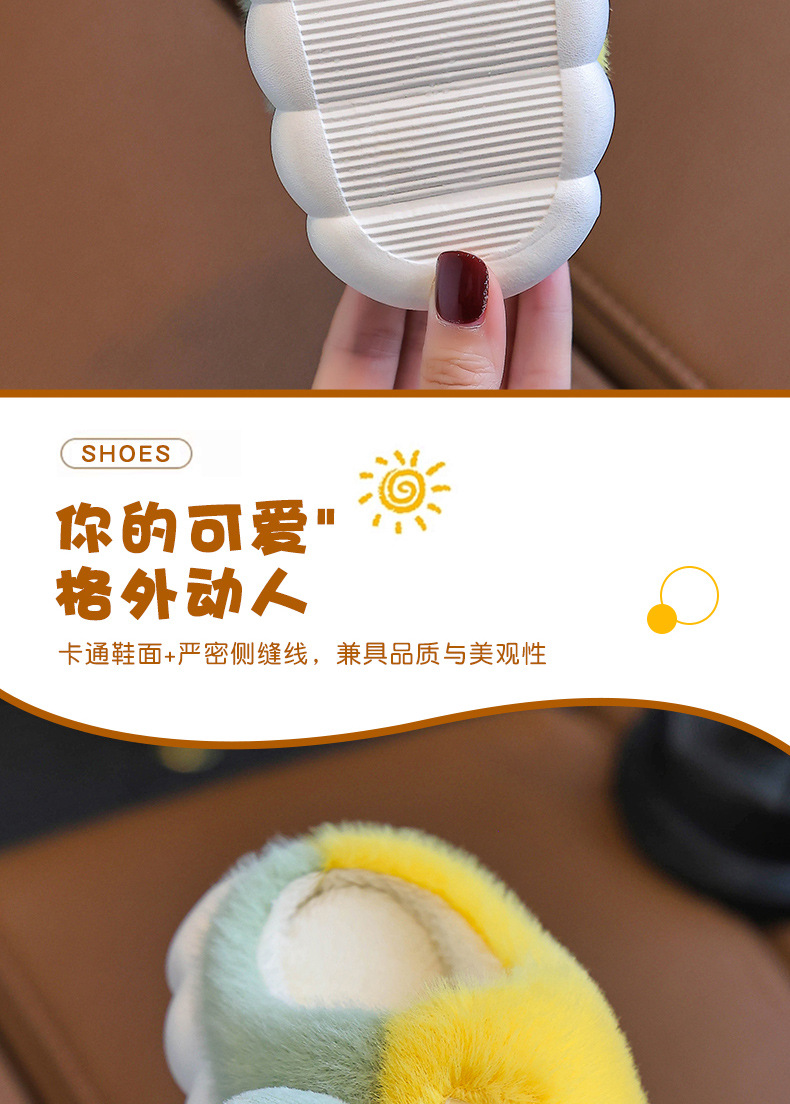 儿童拖鞋冬季新款小孩卡通可爱毛绒保暖厚底棉拖男女童室内毛毛拖