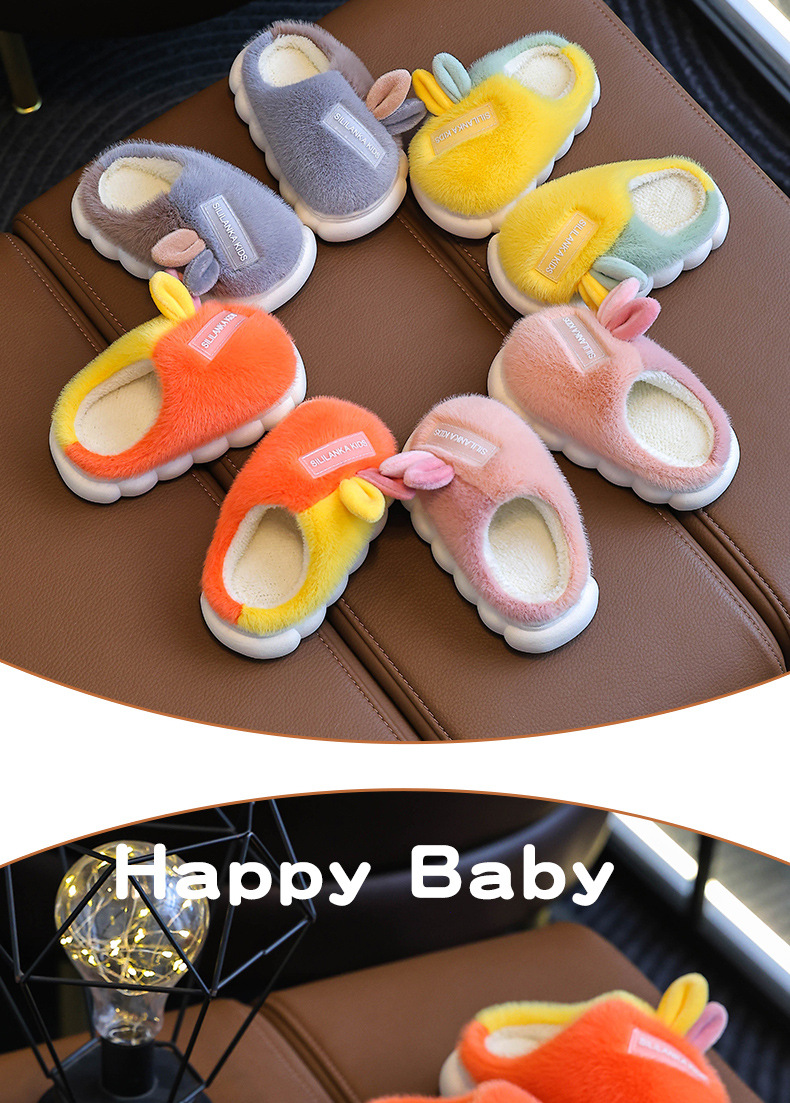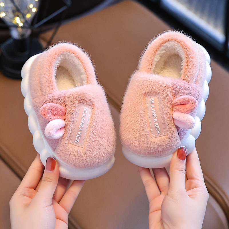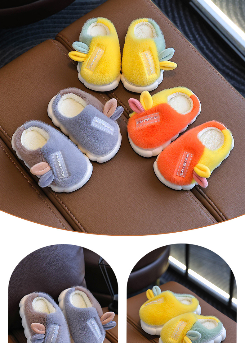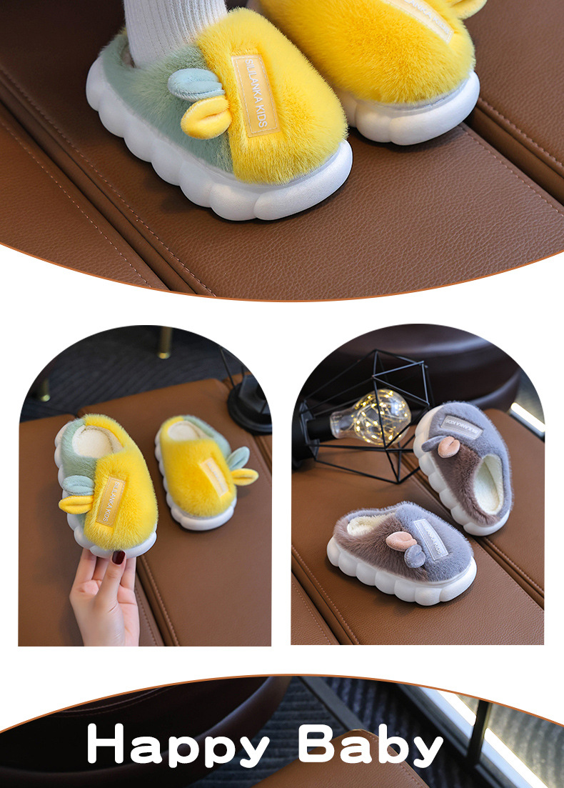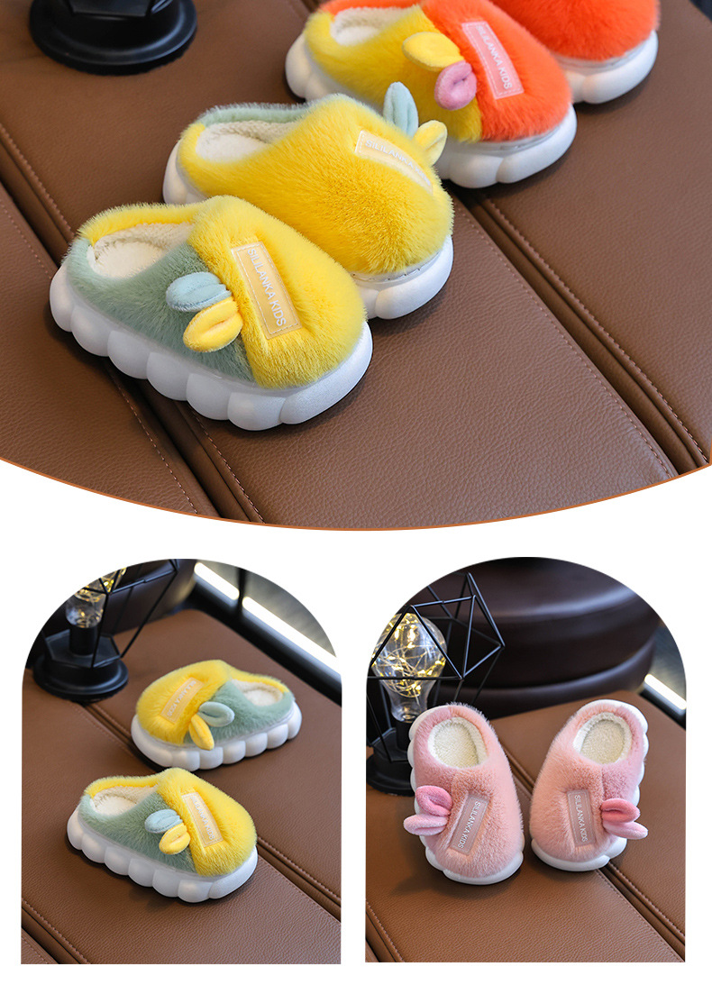 儿童拖鞋冬季新款小孩卡通可爱毛绒保暖厚底棉拖男女童室内毛毛拖