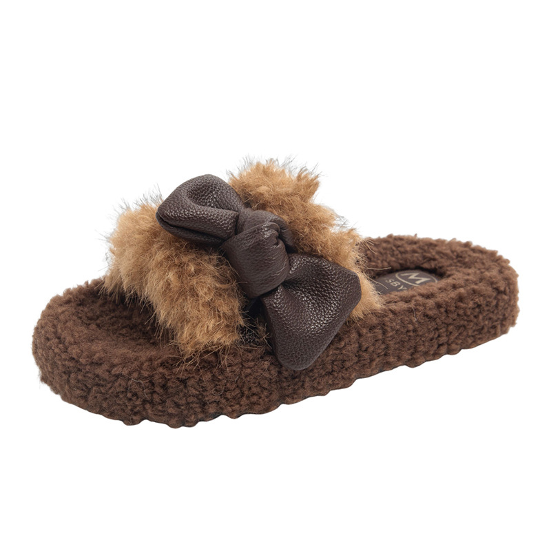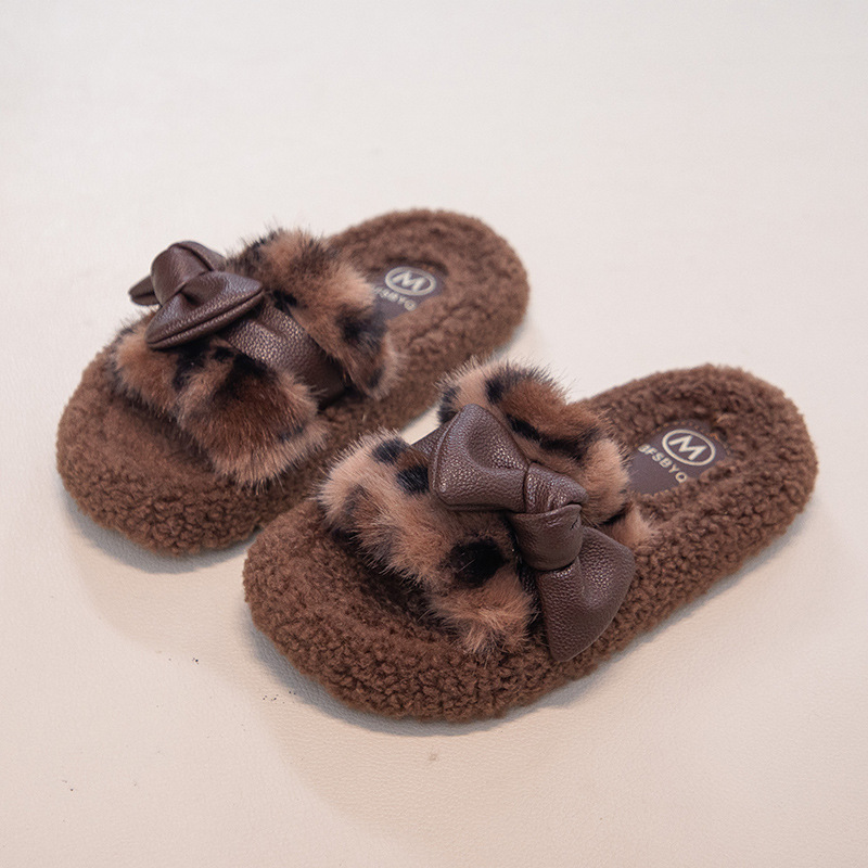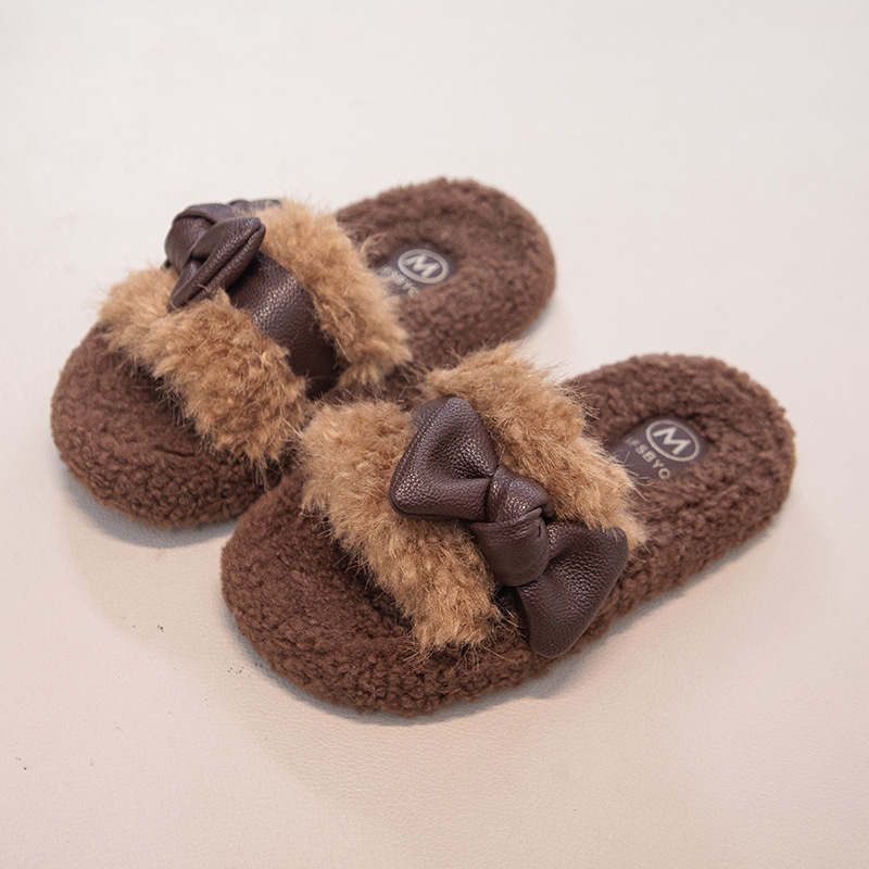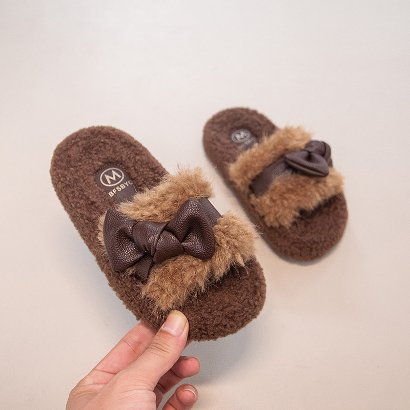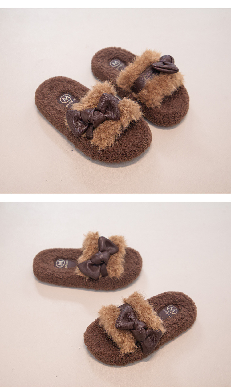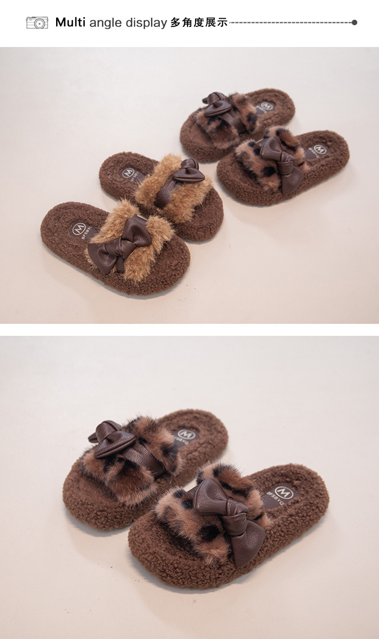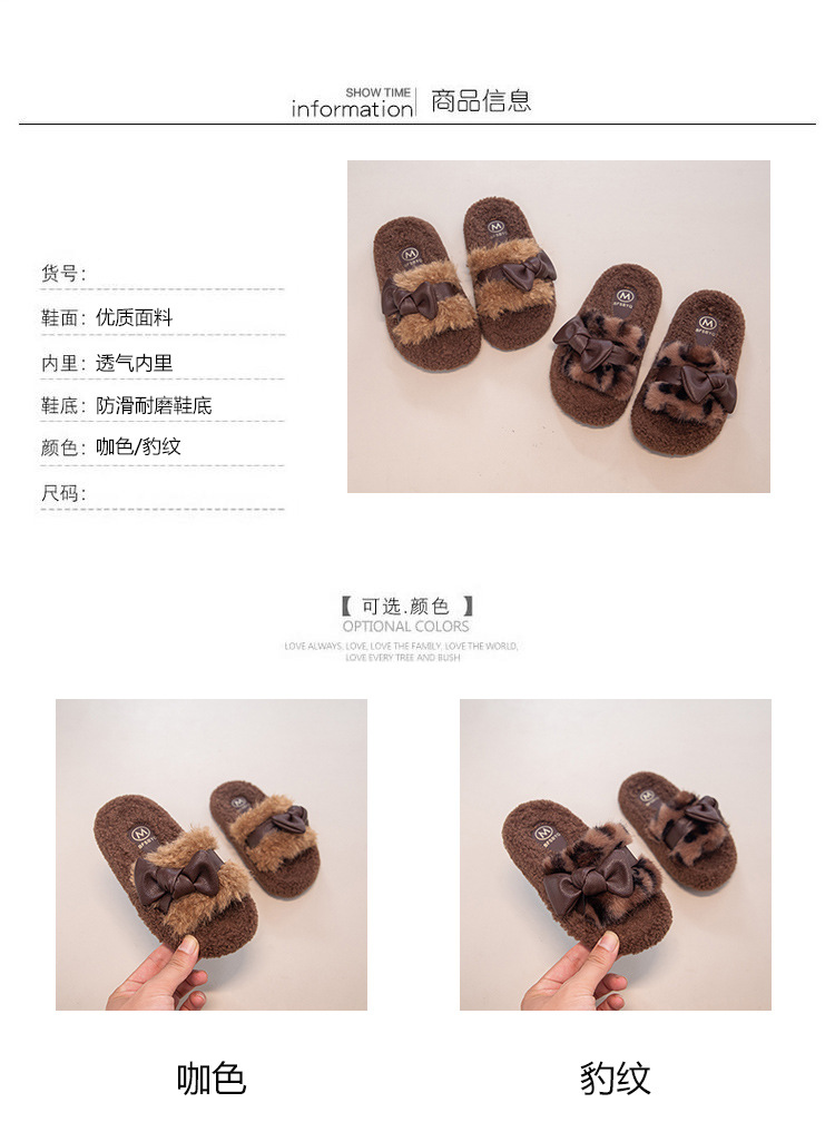 女童超火外穿平底毛毛拖鞋新款秋冬季时尚ins潮居家用亲子棉拖鞋