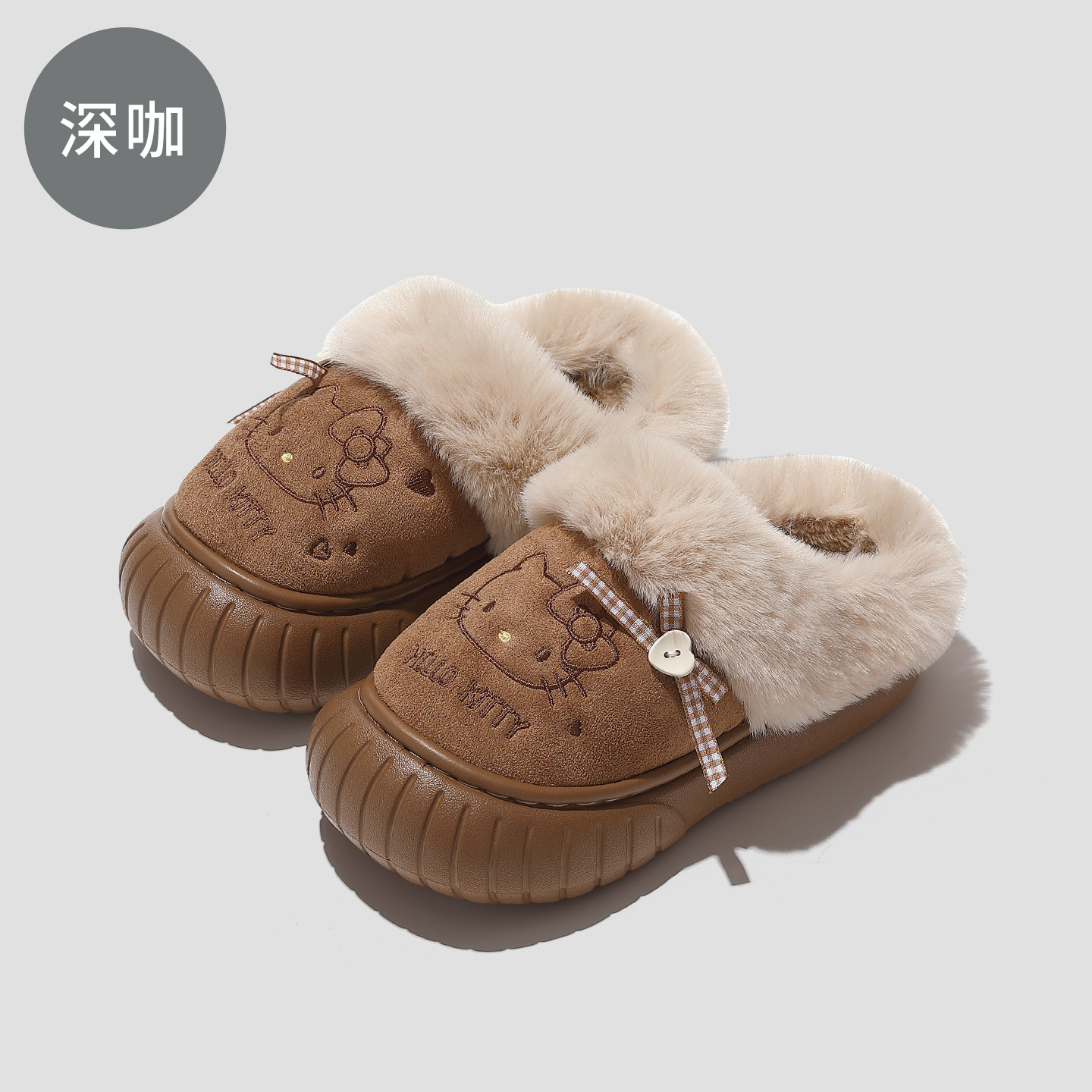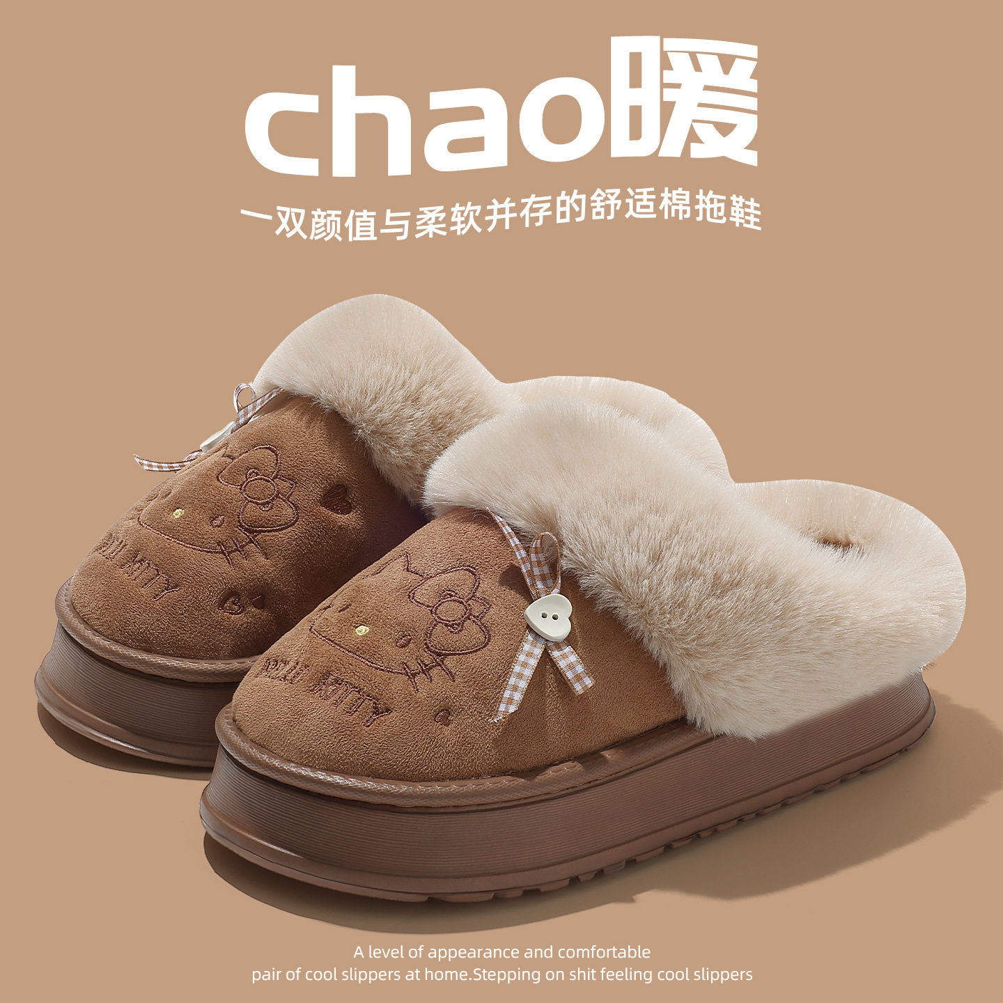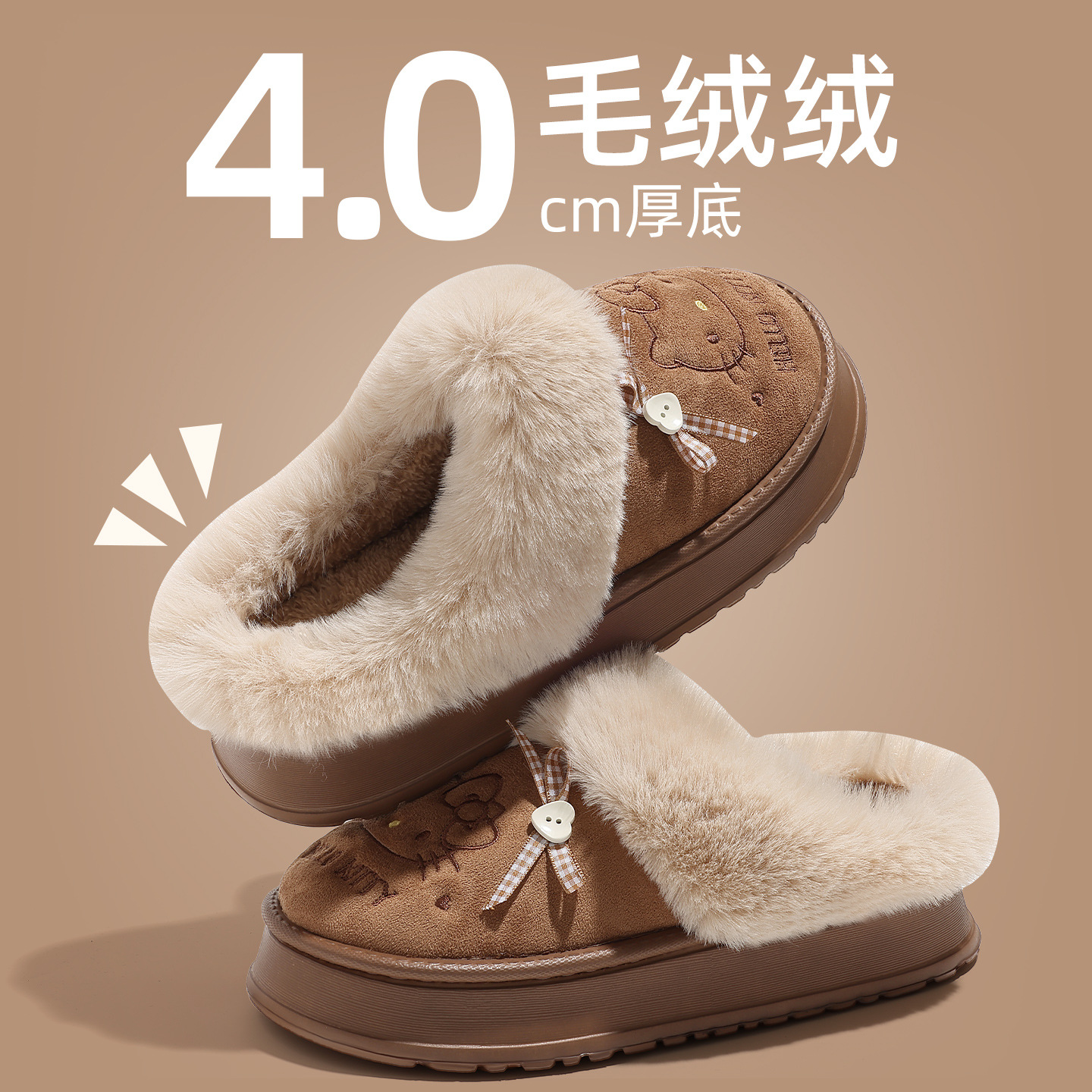 可爱棉拖鞋女冬季新款居家室内卡通小猫亲子保暖毛绒厚底棉拖批发