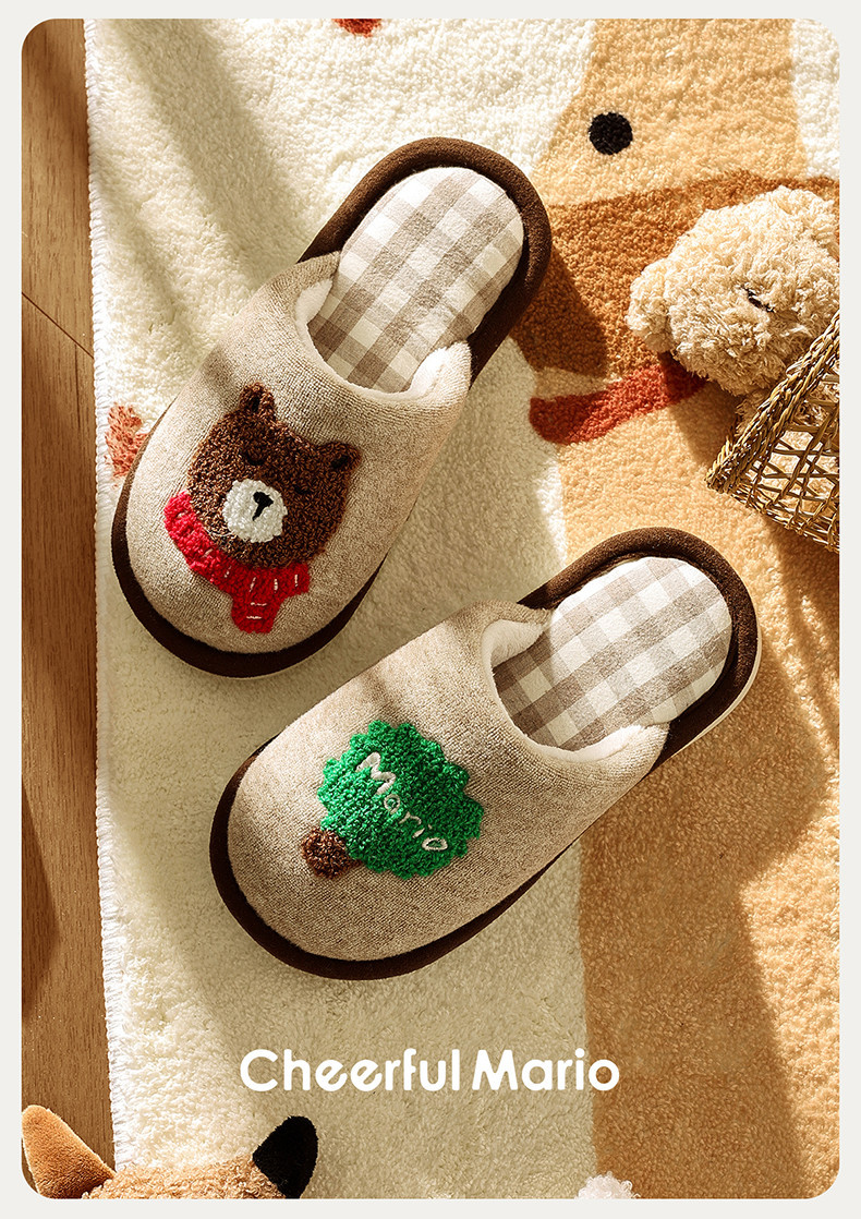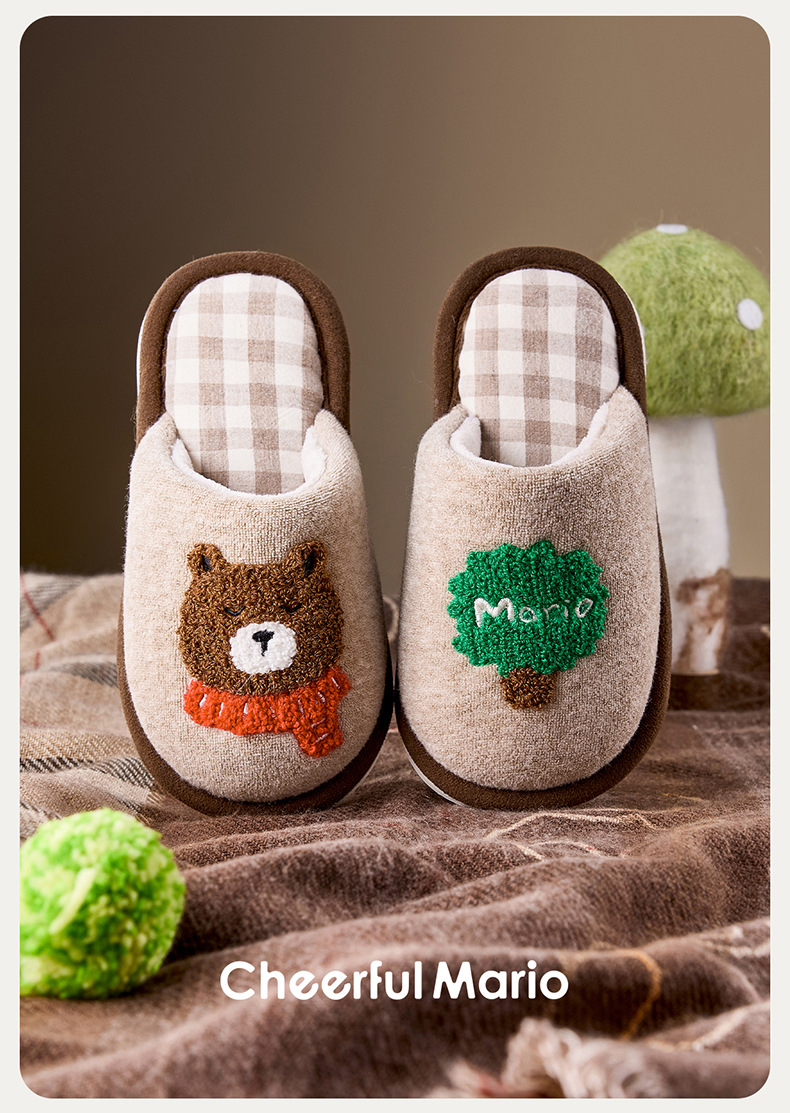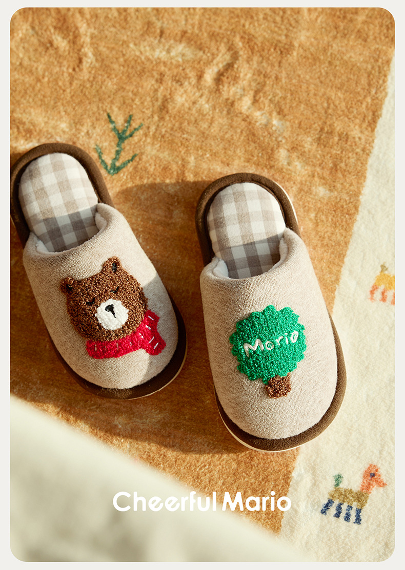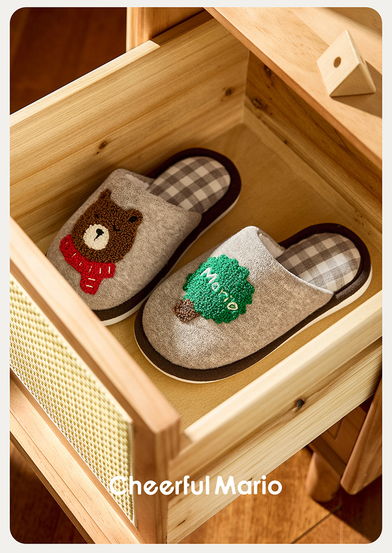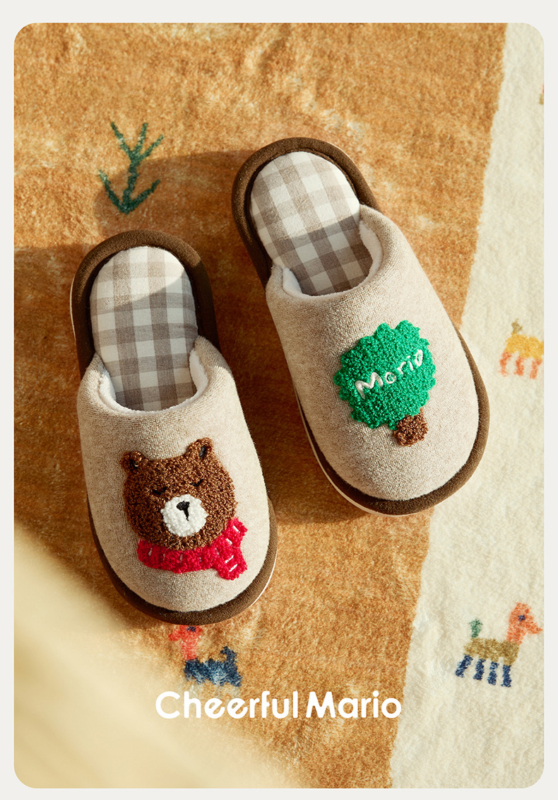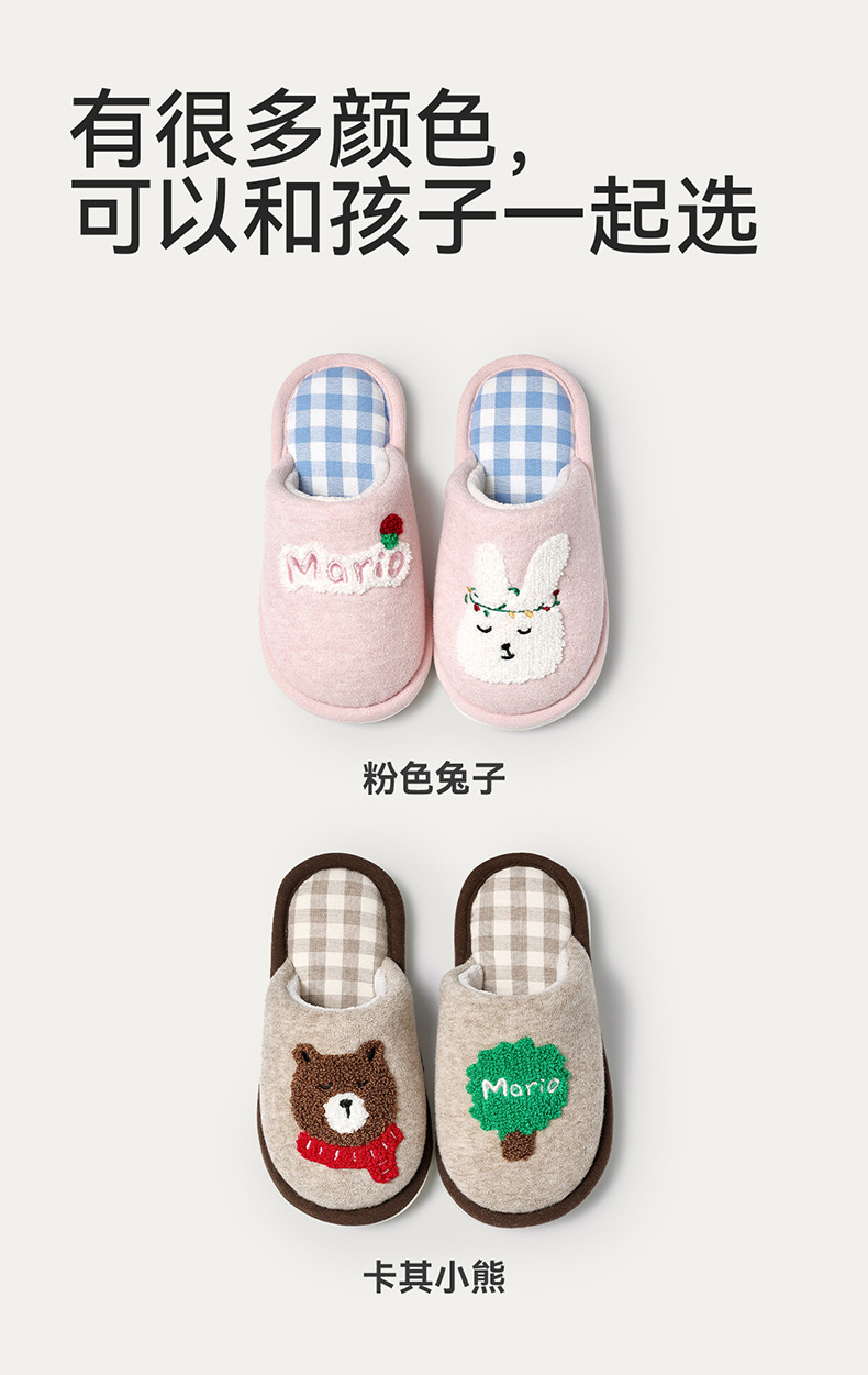 幸福玛丽灰熊儿童拖鞋男童秋冬亲子可爱家居室内中大童男孩棉拖鞋
