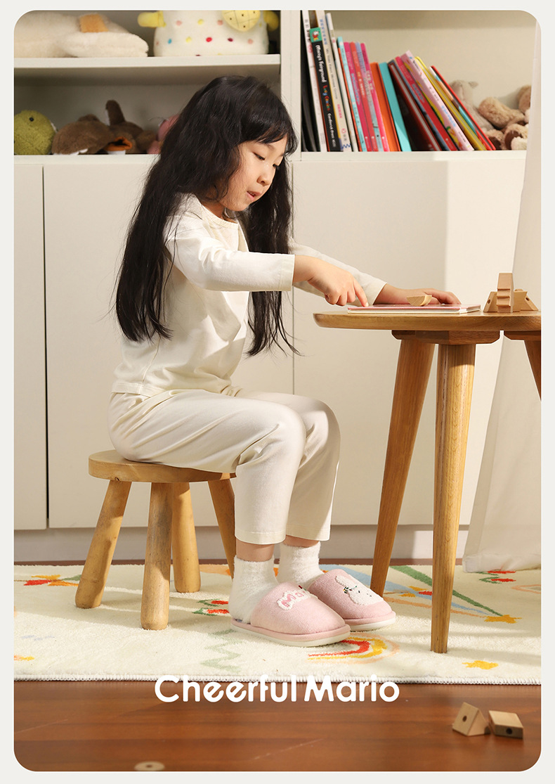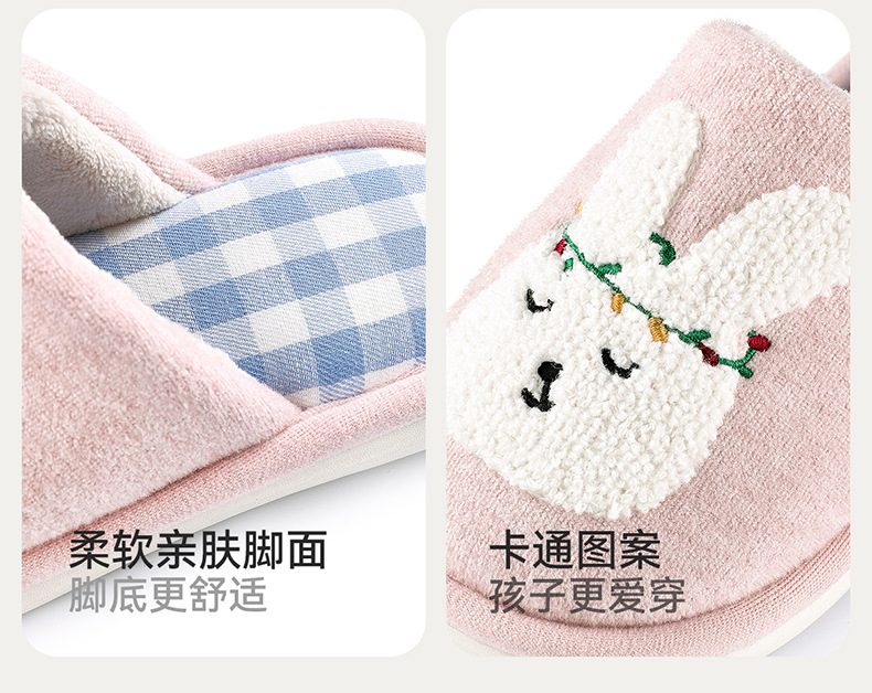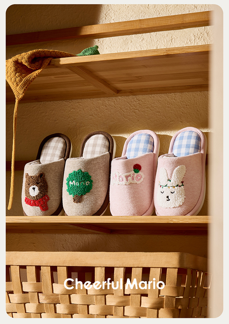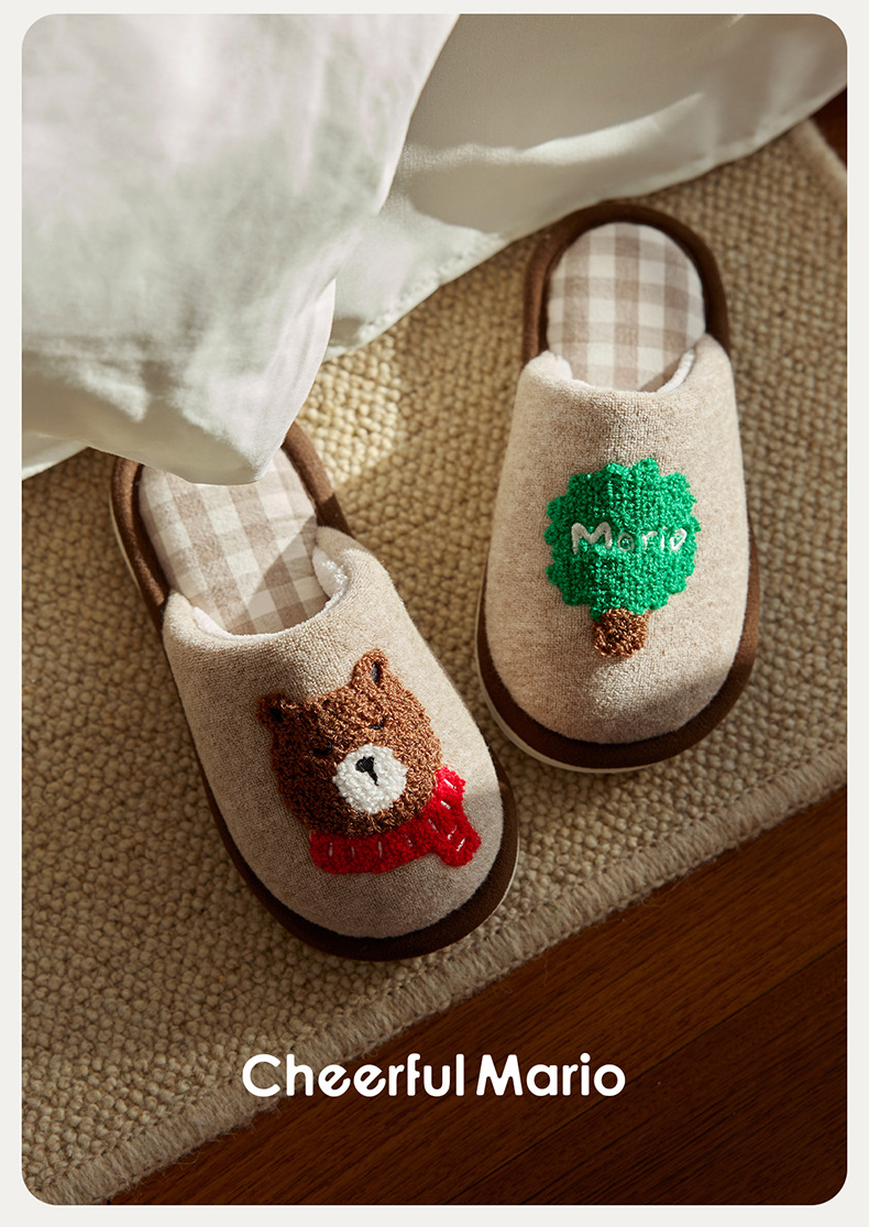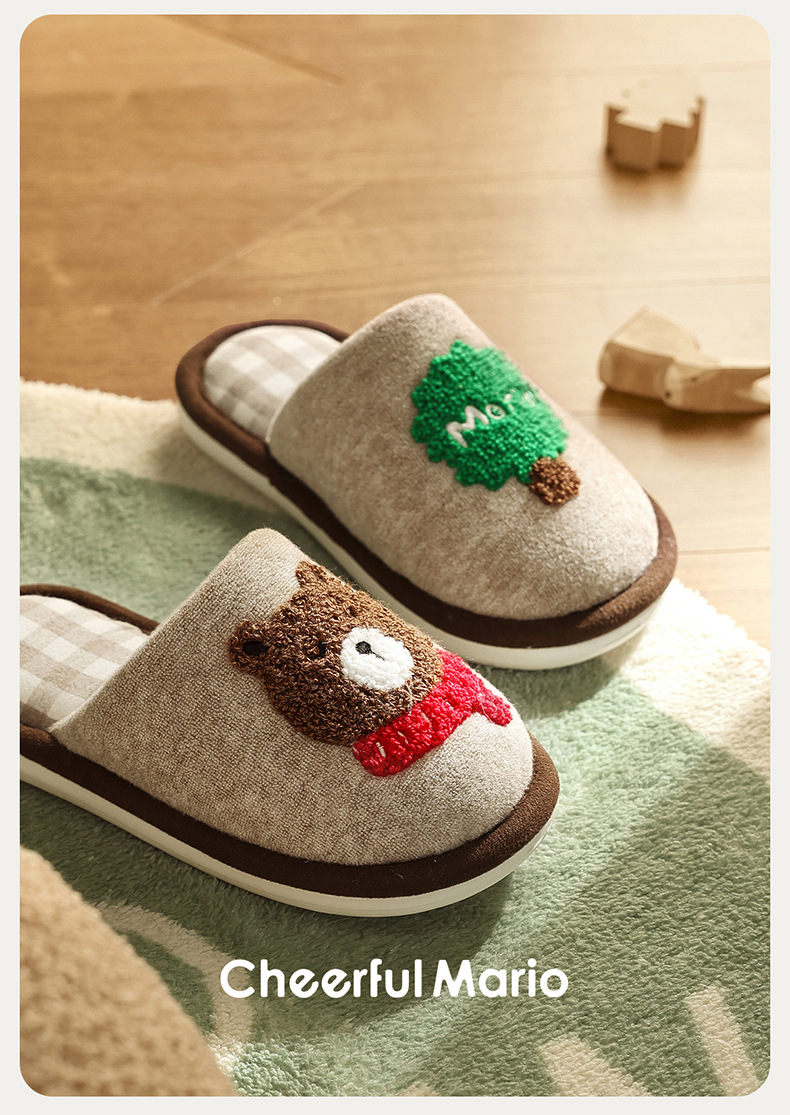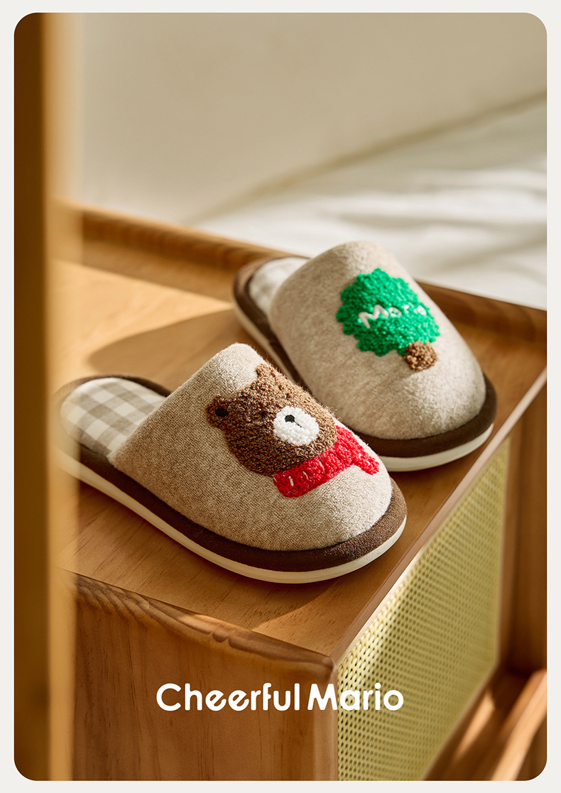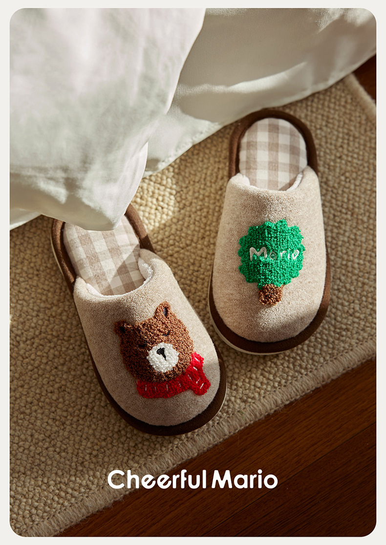 幸福玛丽灰熊儿童拖鞋男童秋冬亲子可爱家居室内中大童男孩棉拖鞋