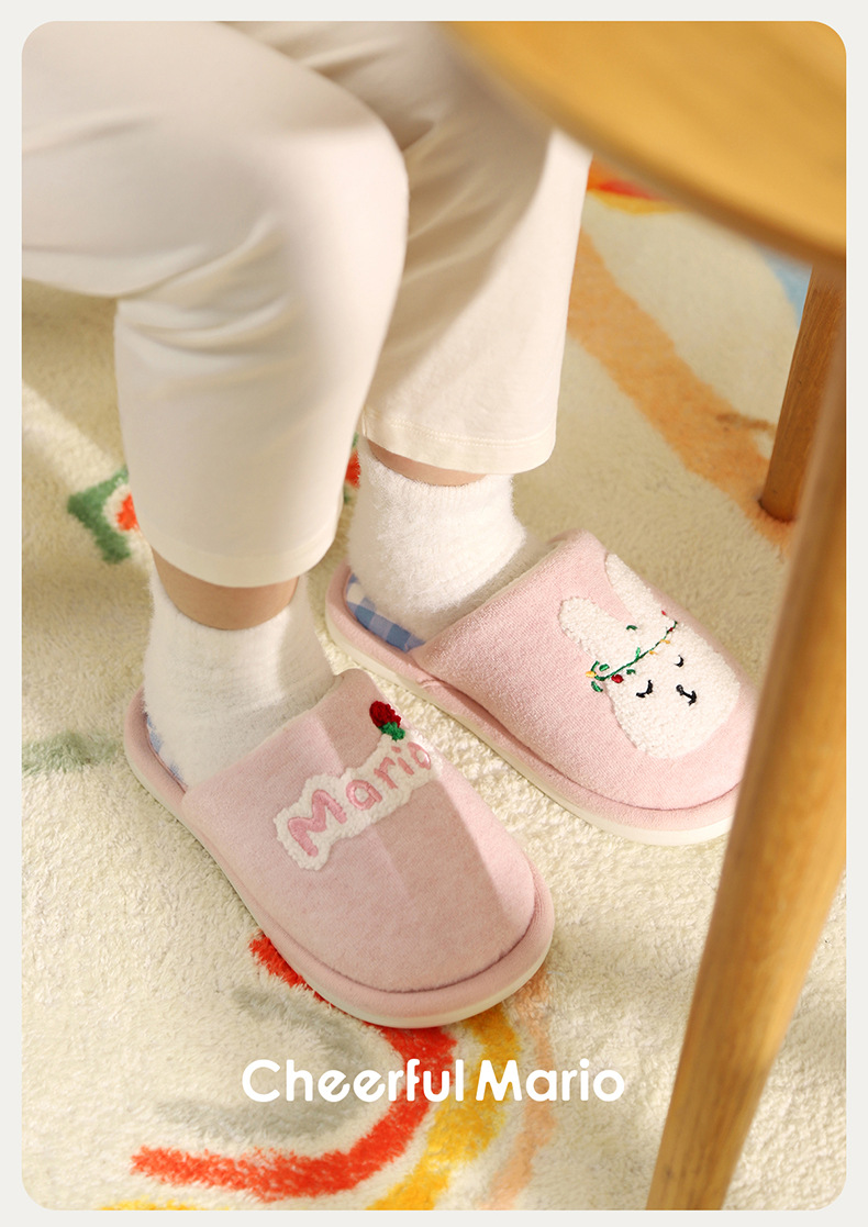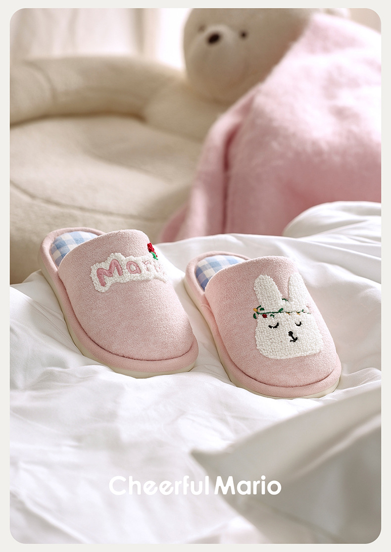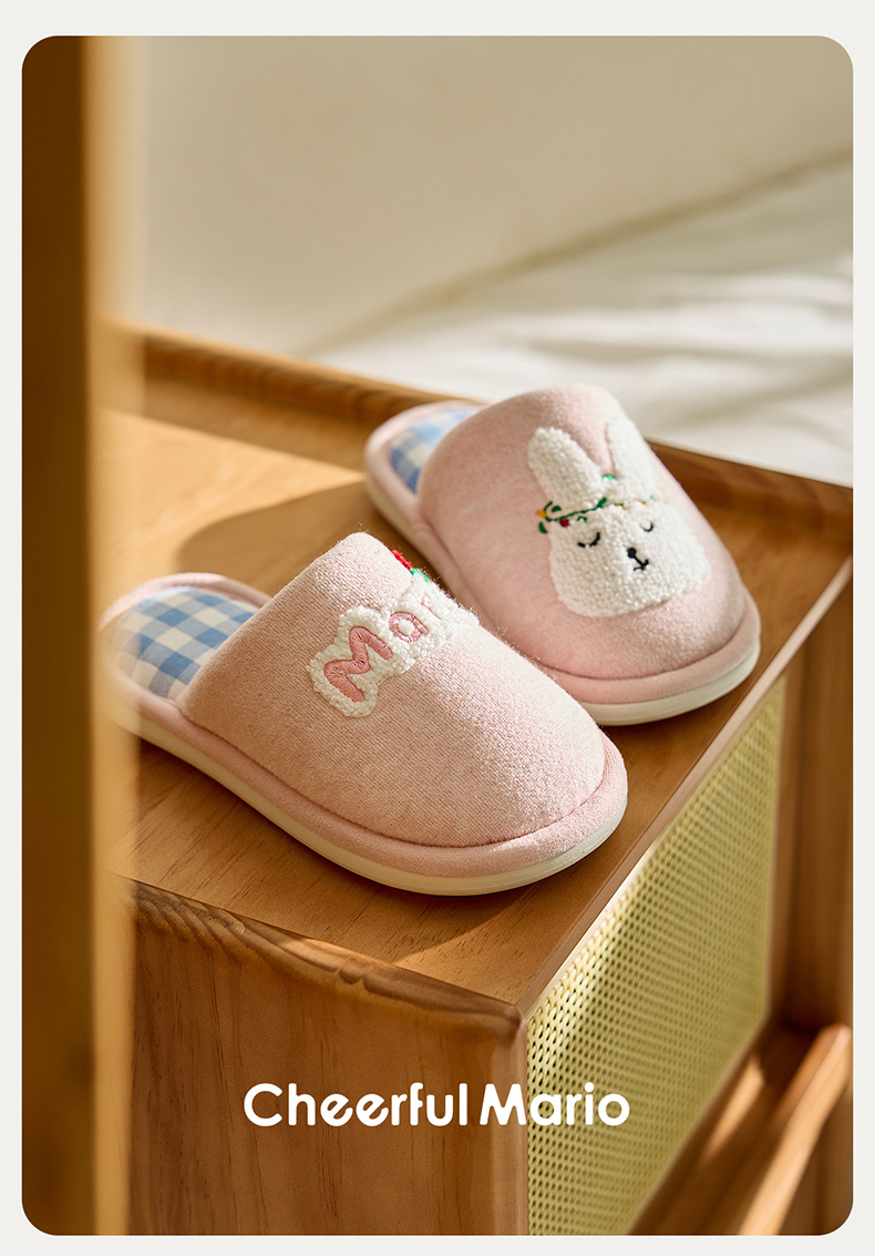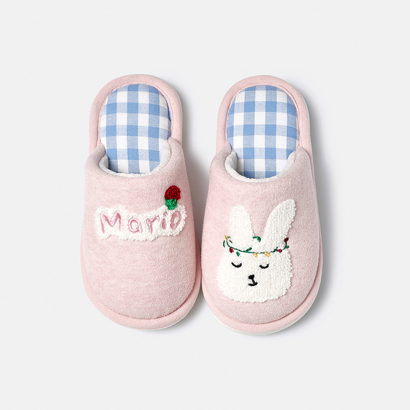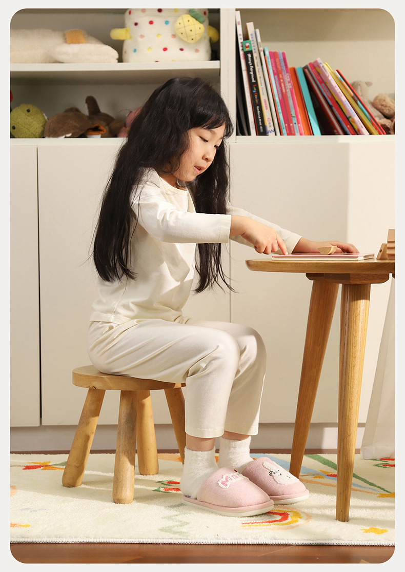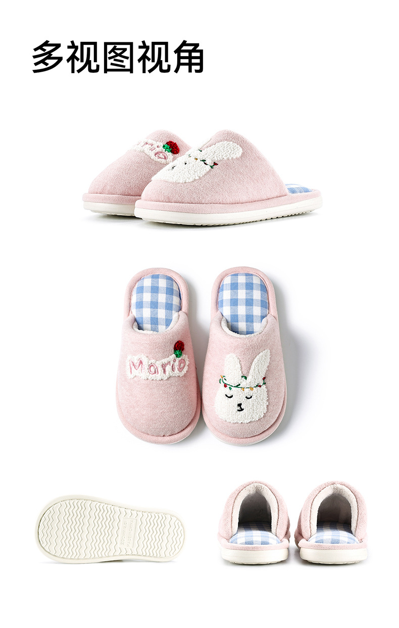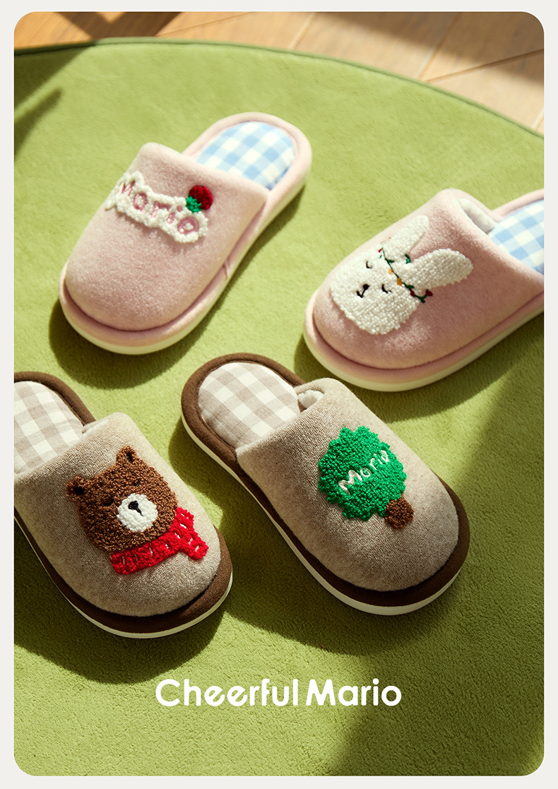 幸福玛丽灰熊儿童拖鞋男童秋冬亲子可爱家居室内中大童男孩棉拖鞋