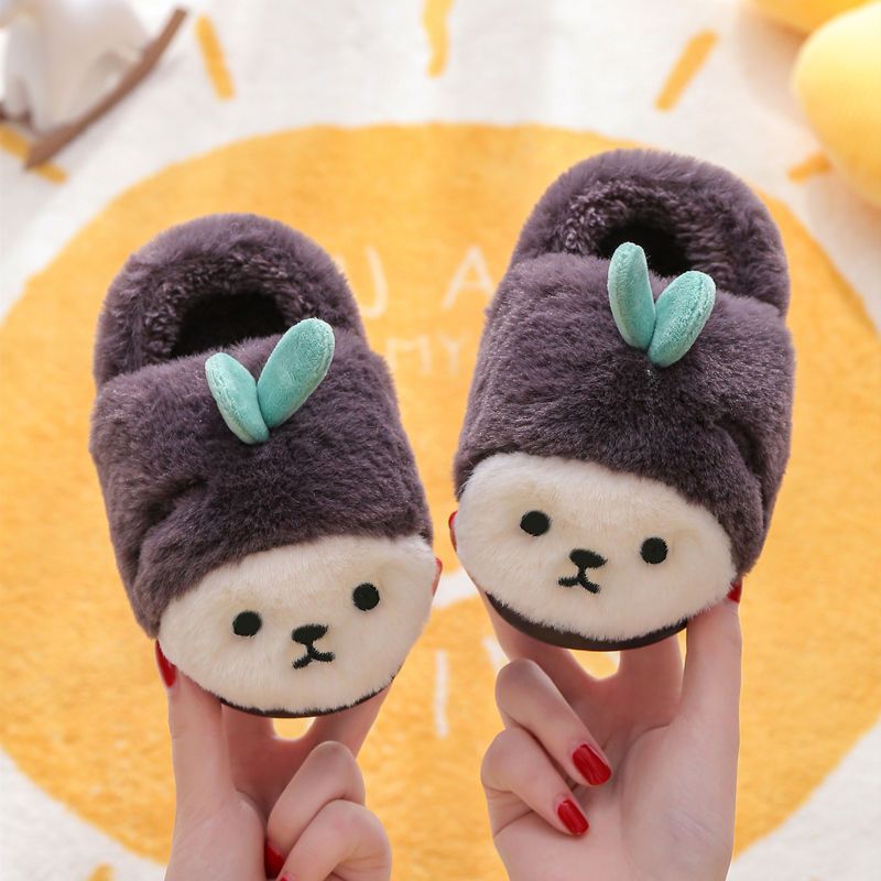 儿童棉拖鞋秋冬男童女童包跟室内家居鞋可爱保暖毛毛拖鞋宝宝棉鞋