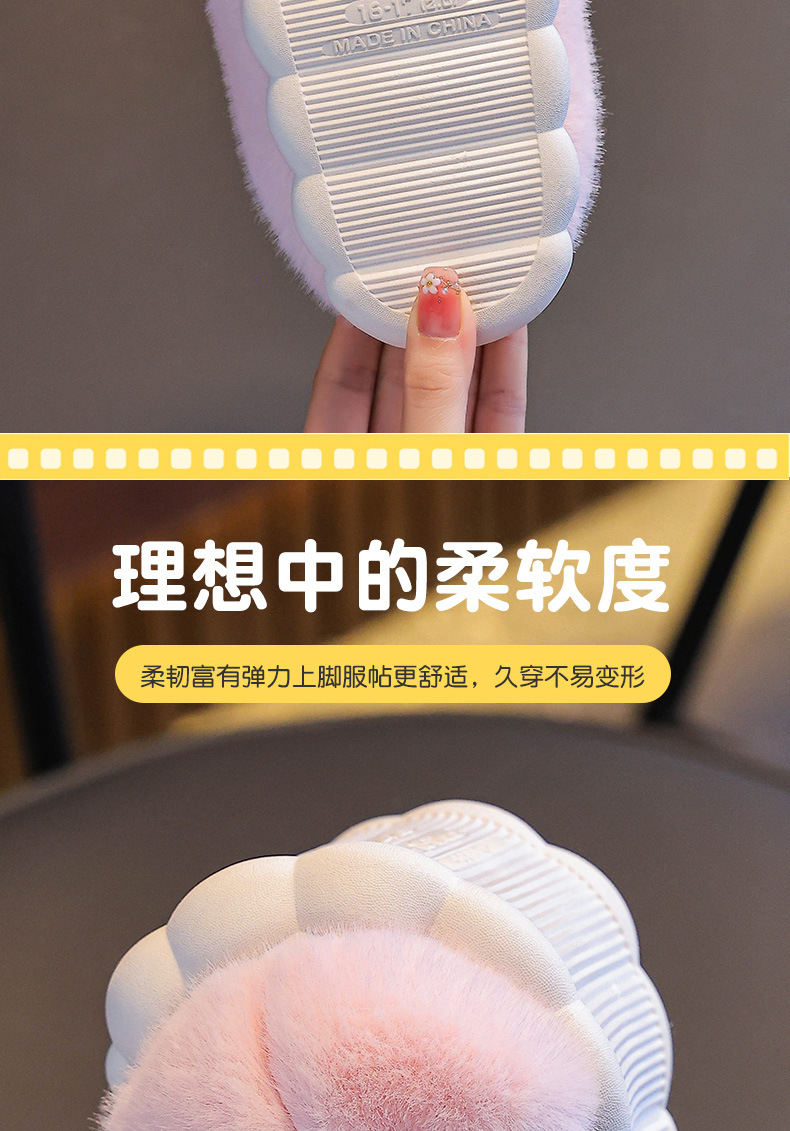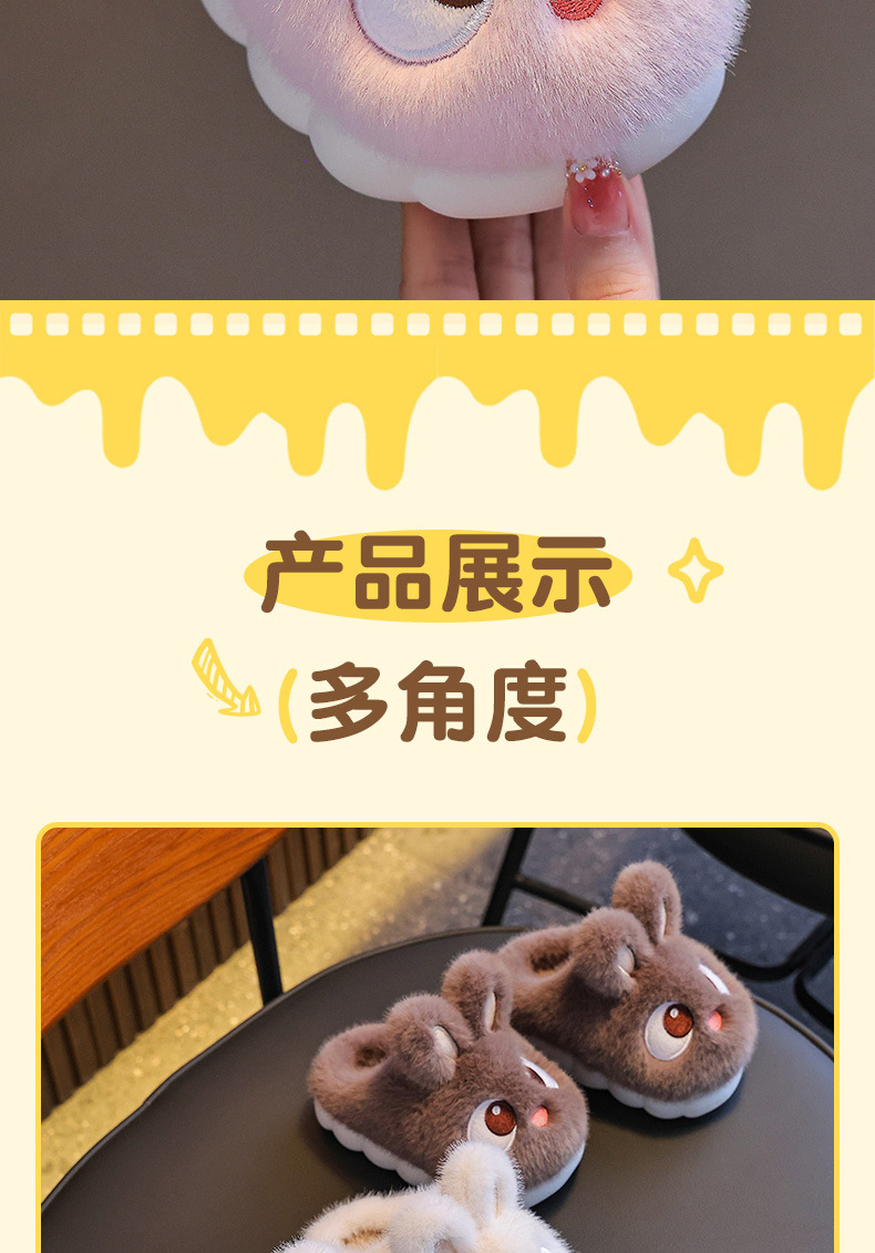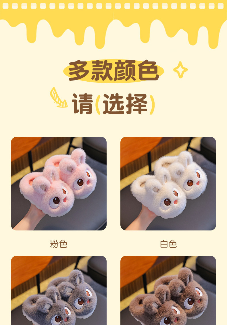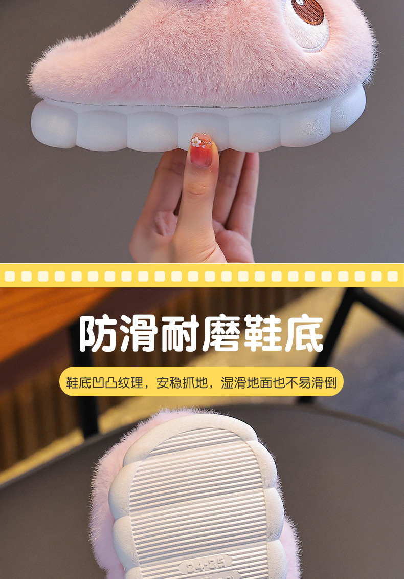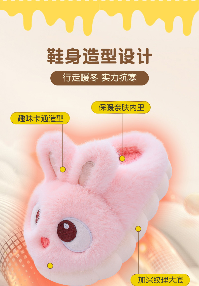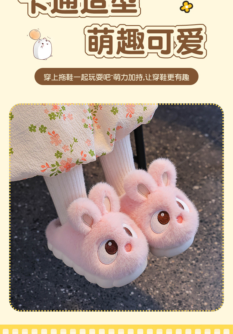 2025新款冬季女童棉拖鞋保暖加绒毛毛兔子居家亲子厚底儿童棉拖鞋