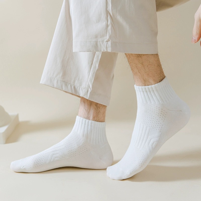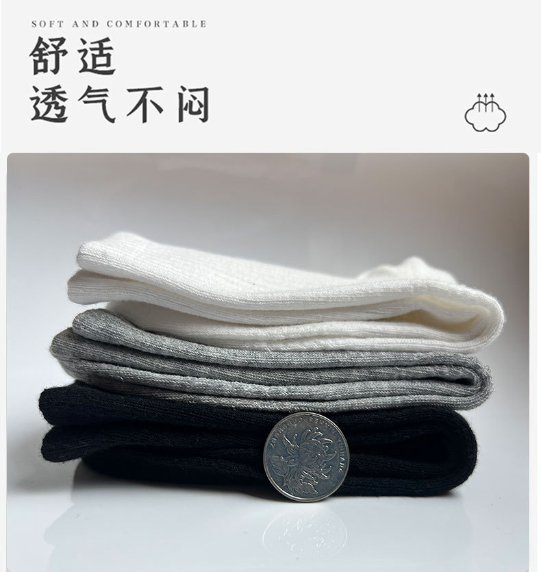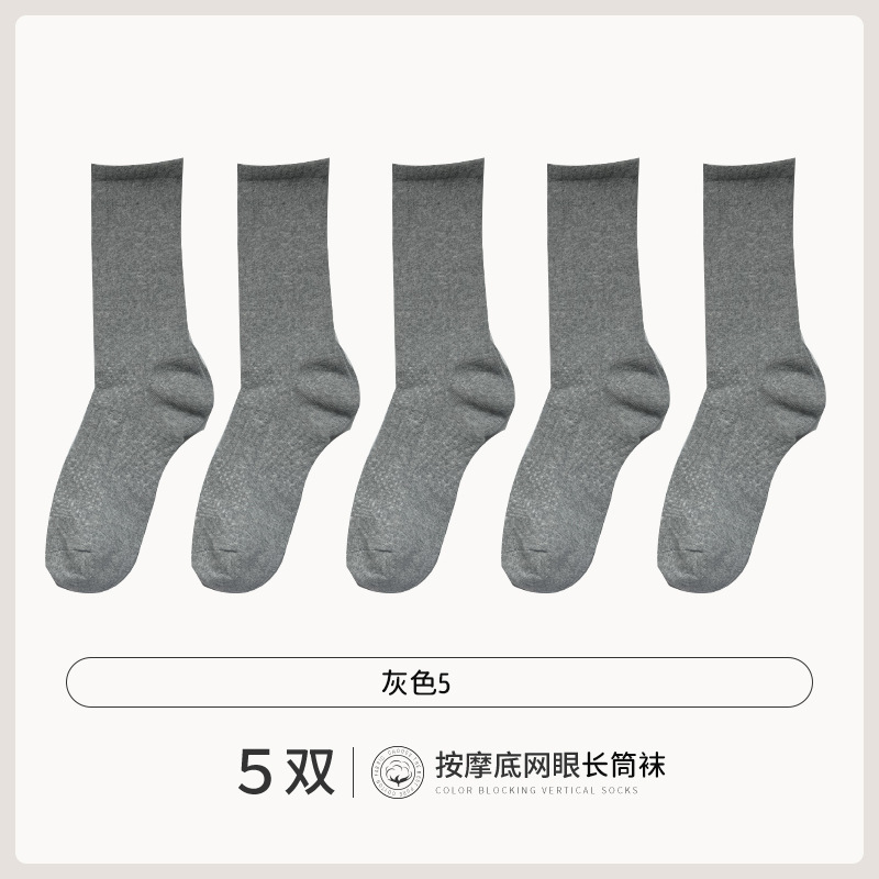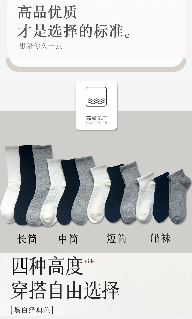 袜子男士黑白灰商务运动袜跑步登山篮球袜纯色棉袜薄款竖条纹男袜