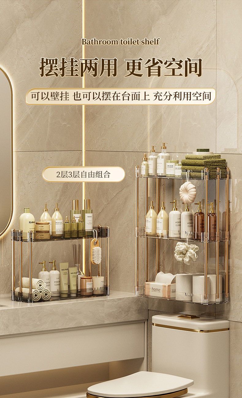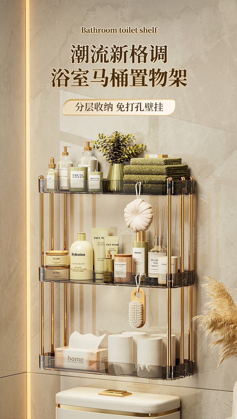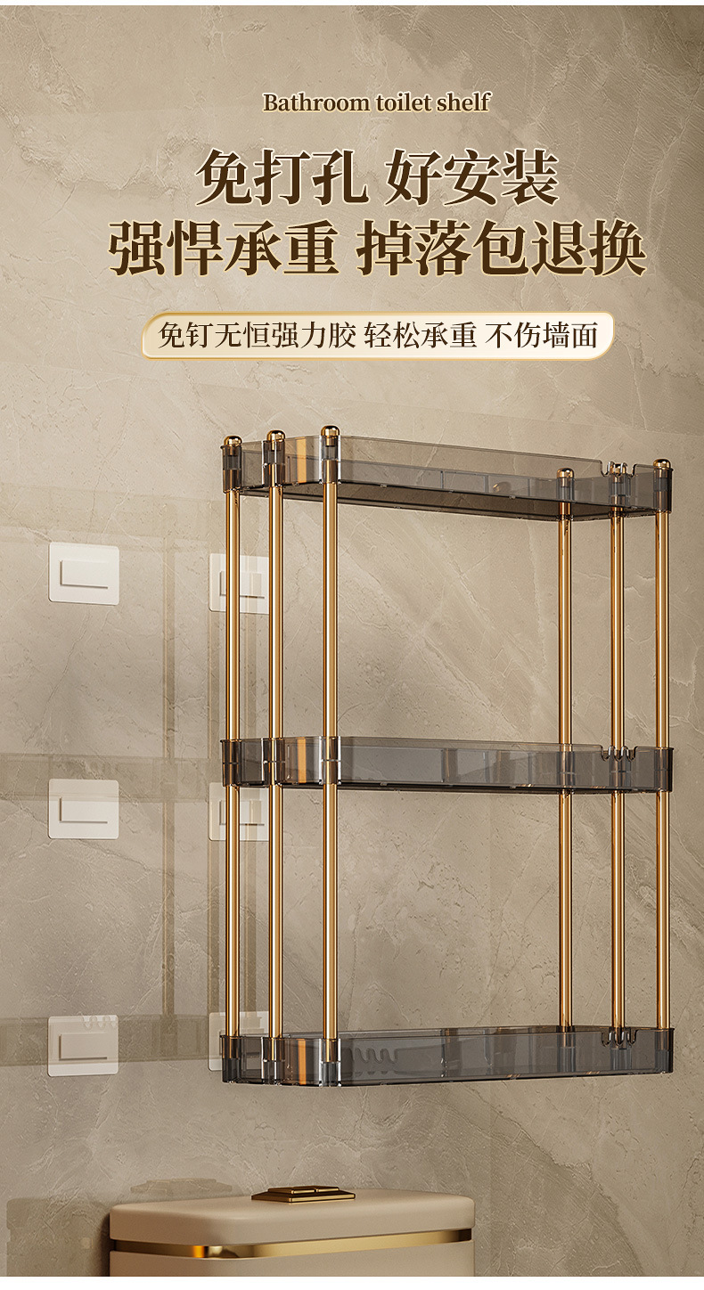 壁挂免打孔收纳架家用卫浴浴室卫生间多功能置物架轻奢厨房收纳柜