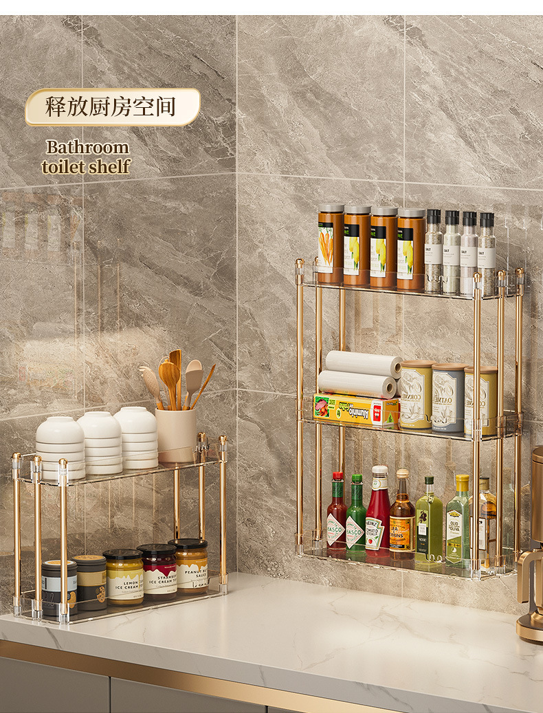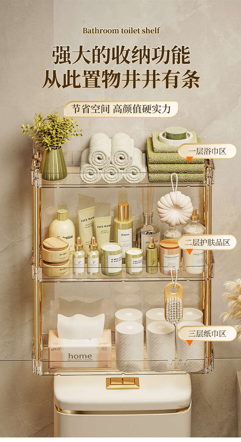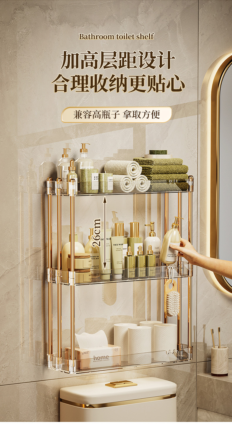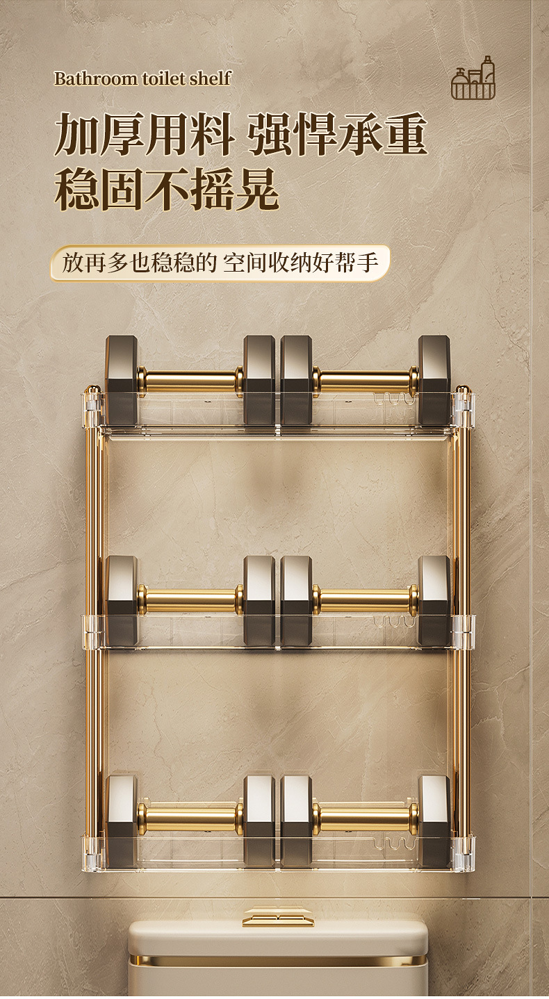 壁挂免打孔收纳架家用卫浴浴室卫生间多功能置物架轻奢厨房收纳柜