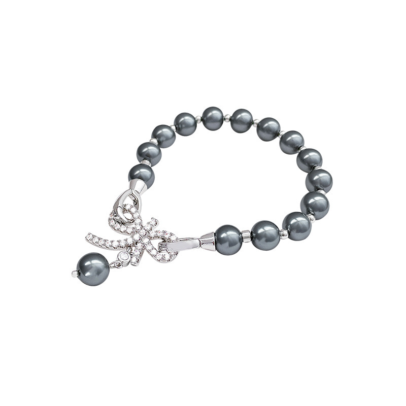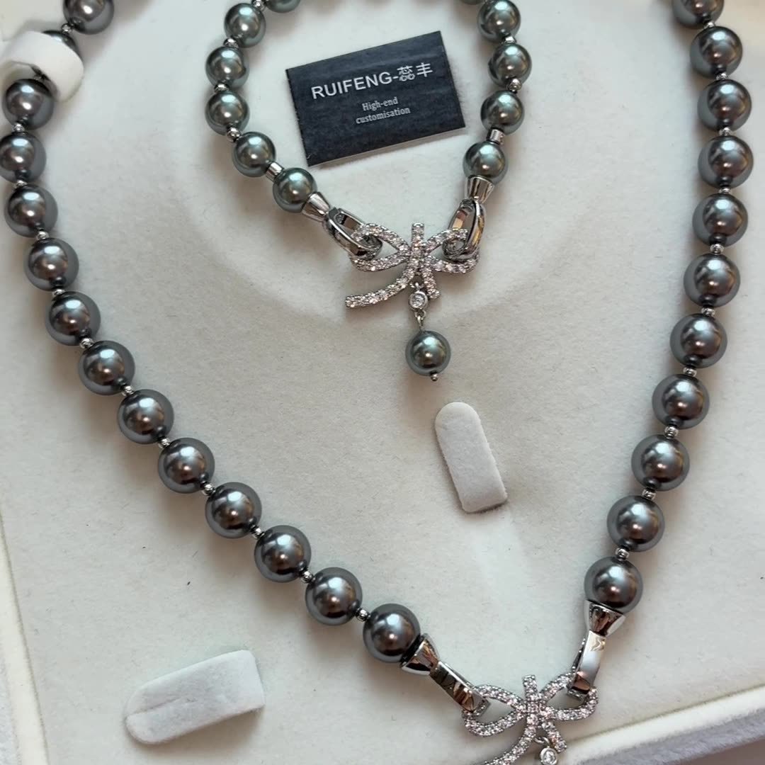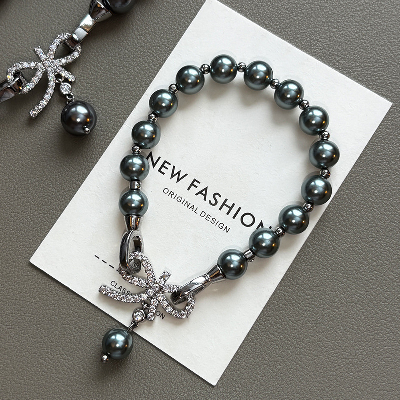 法式毛衣链配饰蝴蝶结吊坠高级感颈链S家真多麻银灰色珍珠项链女