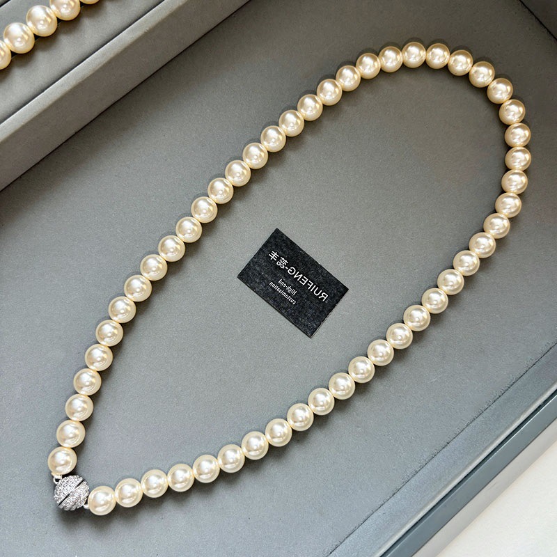 配饰轻奢高级感正品2025新款颈链S家极光奶油色磁吸珍珠项链女款