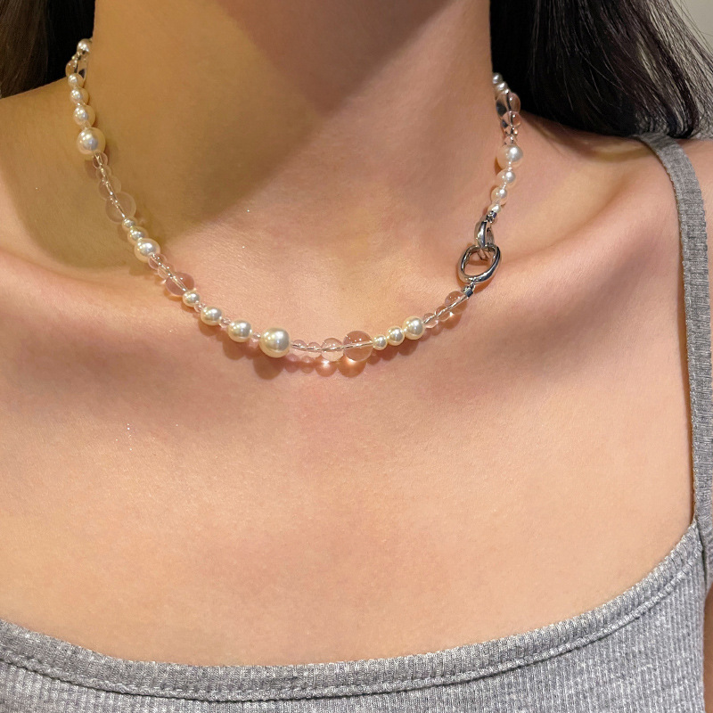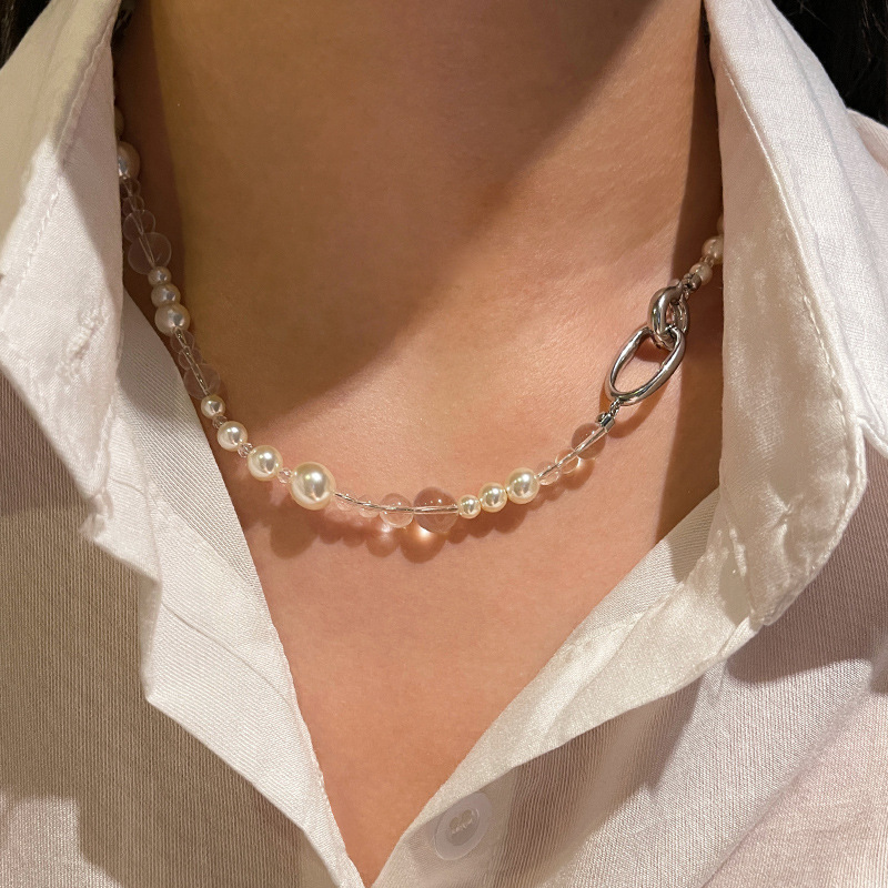饰品耳环高级感轻奢叠戴百搭锁骨颈链天然白色水晶S家珍珠项链女
