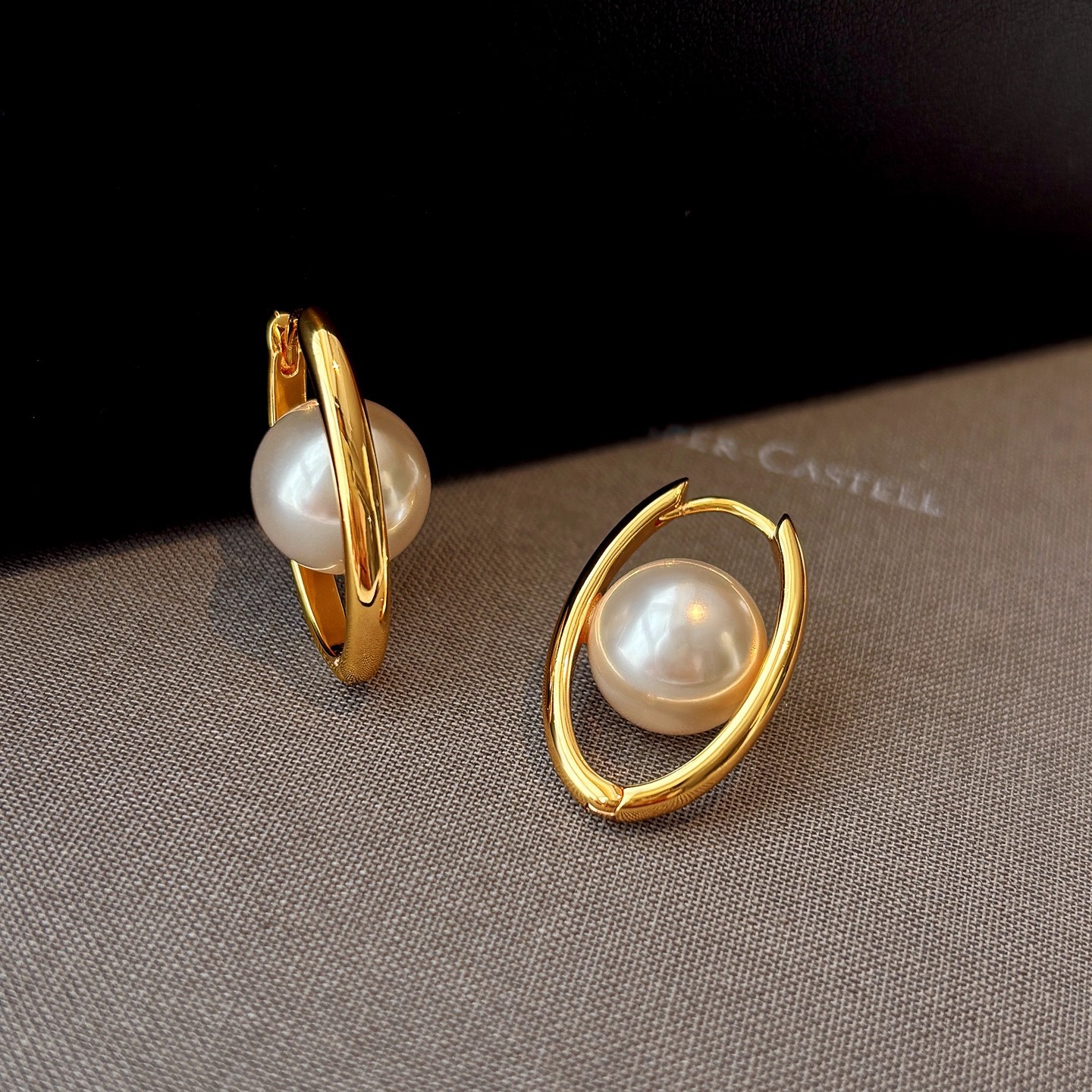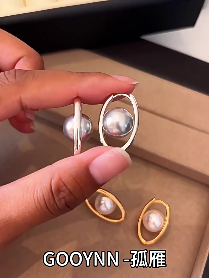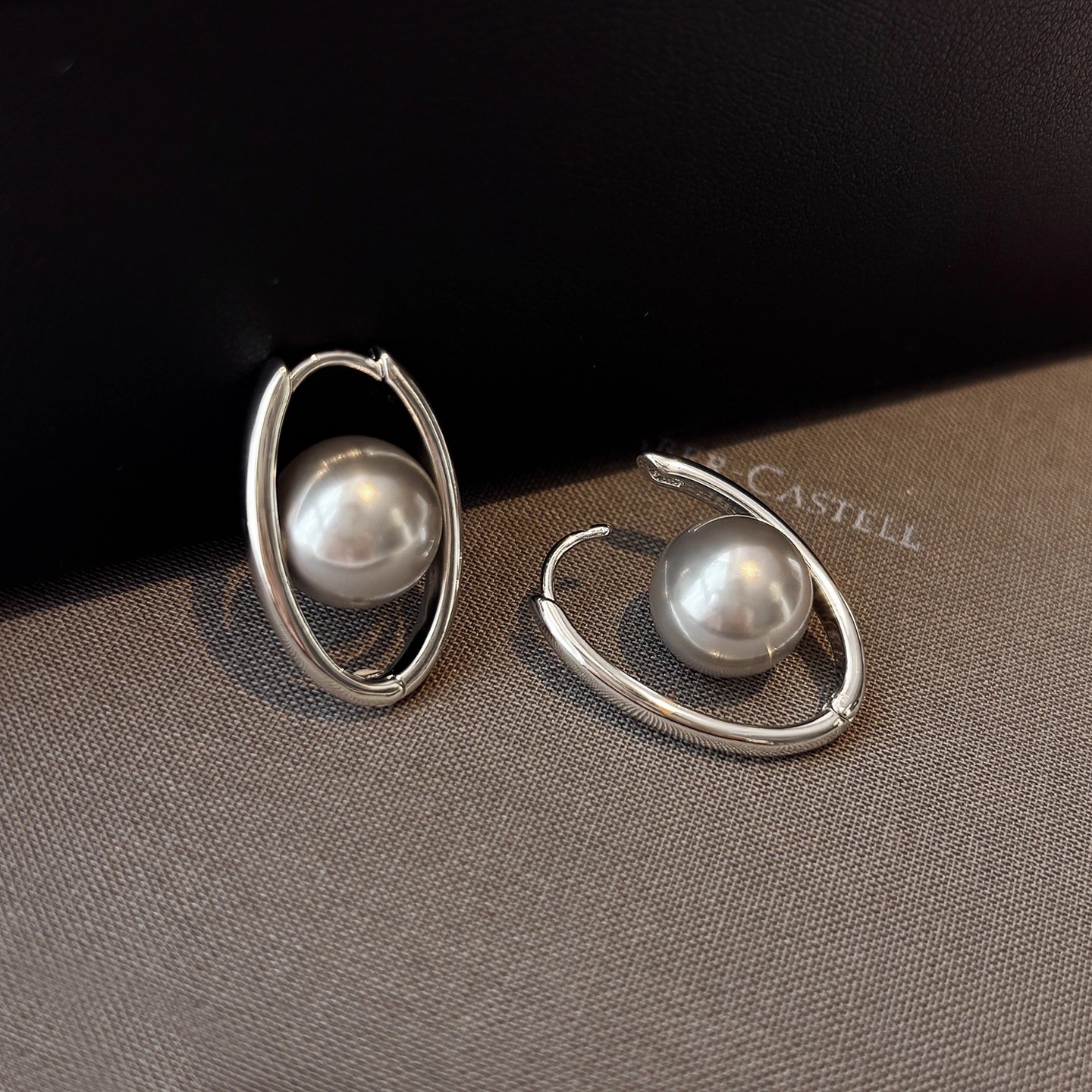 饰品耳环耳钉高级感轻奢独特耳饰气质圆圈耳扣灰色珍珠耳环圈圈女