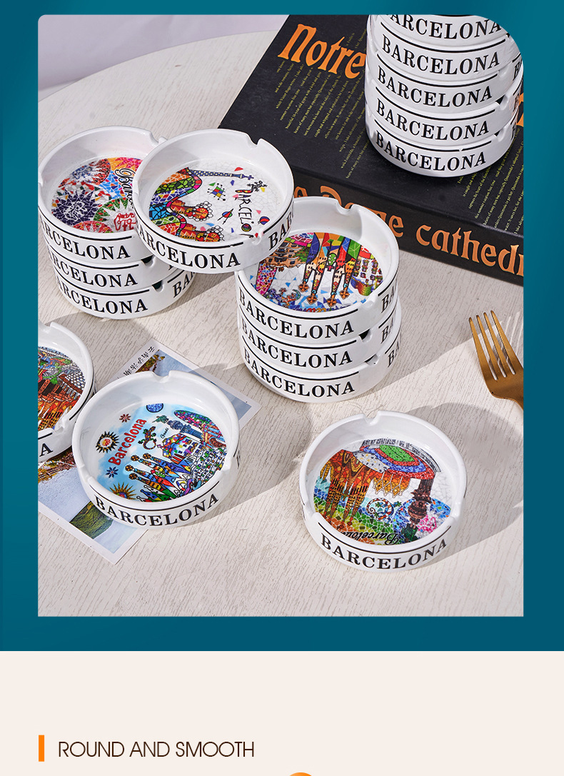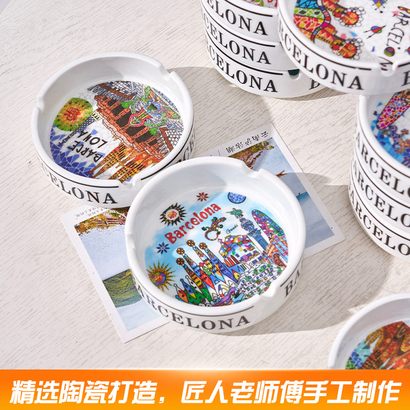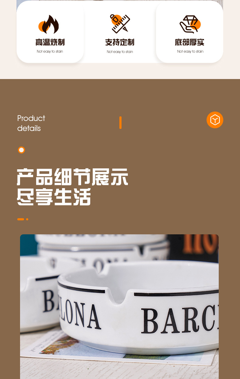 陶瓷烟灰缸 简约创意时尚烟灰缸 字母圆形出口烟灰缸可加logo批发