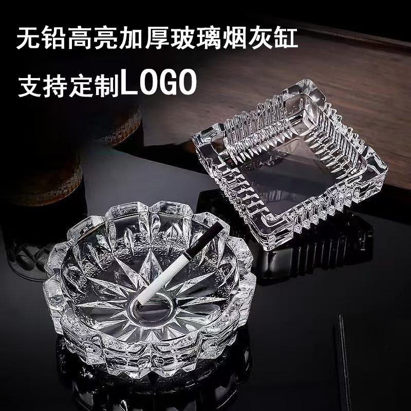 烟灰缸方形玻璃家用客厅大号个性透明加厚酒店烟缸防摔烟缸批发