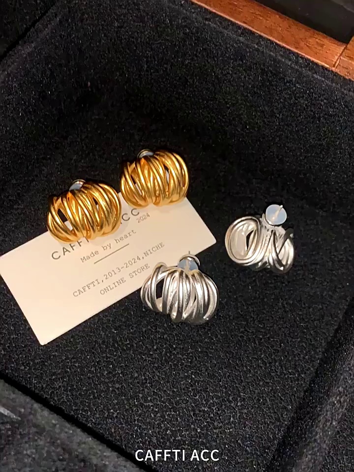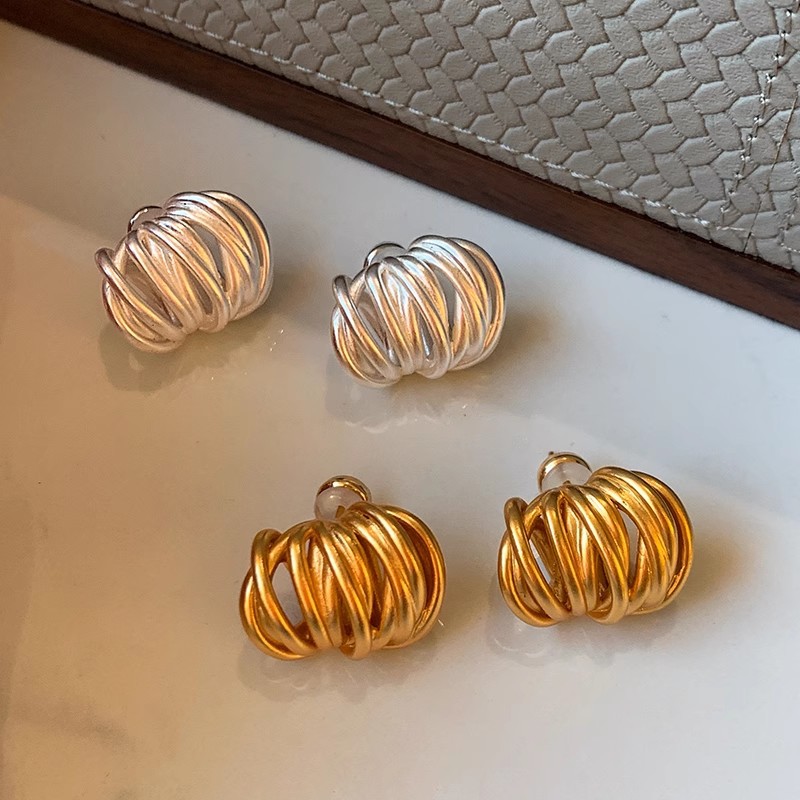 耳环饰品圈圈轻奢高级感耳钉耳饰女夸张磨砂复古哑光银色线条耳环