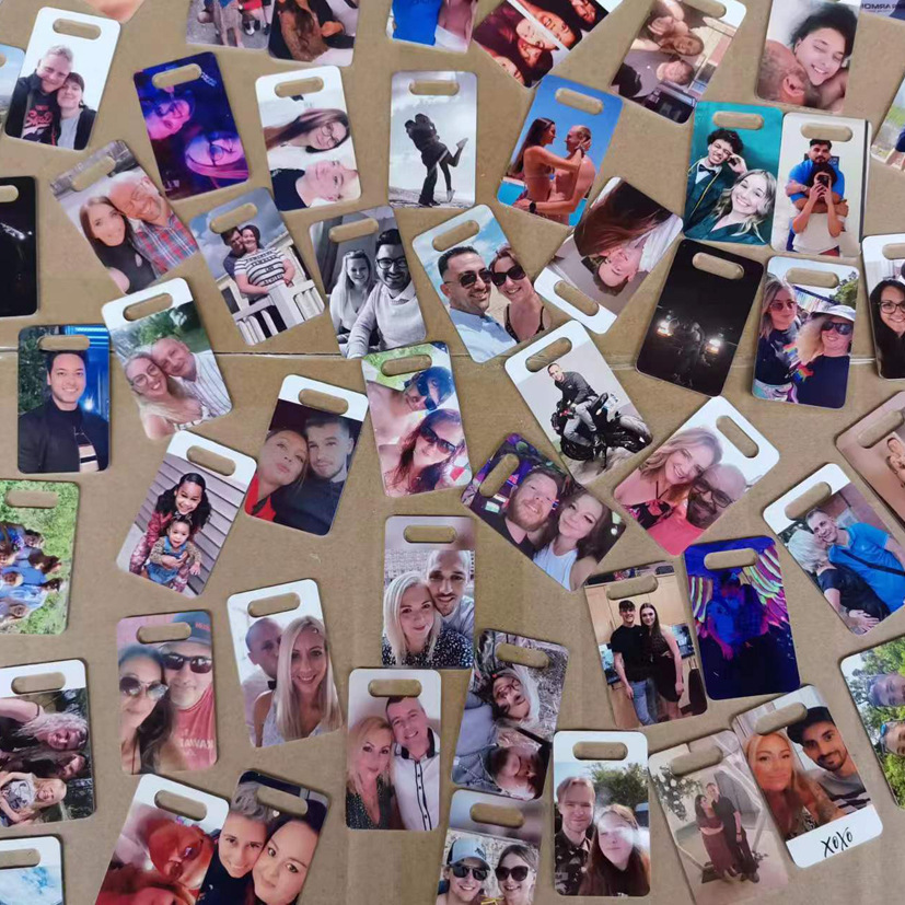 热升华打印双面钥匙扣,两面同时可以印制自己喜欢的照片和公司LOGO,厂家做促销公司做活动新店开业都是可以印制促销广告等等,印制时请撕下铝片上面的保护膜,时间调到75秒温度调到180度压力稍微调大点,小心不要烫到手,请戴好手套在取出做好的铝片钥匙扣