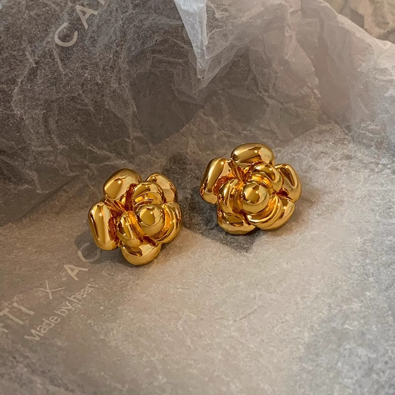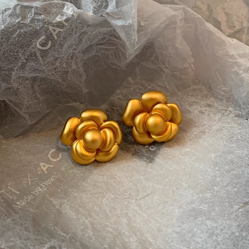 法式复古金色山茶花精致大耳钉女轻奢高级感复古气质大气耳环耳饰