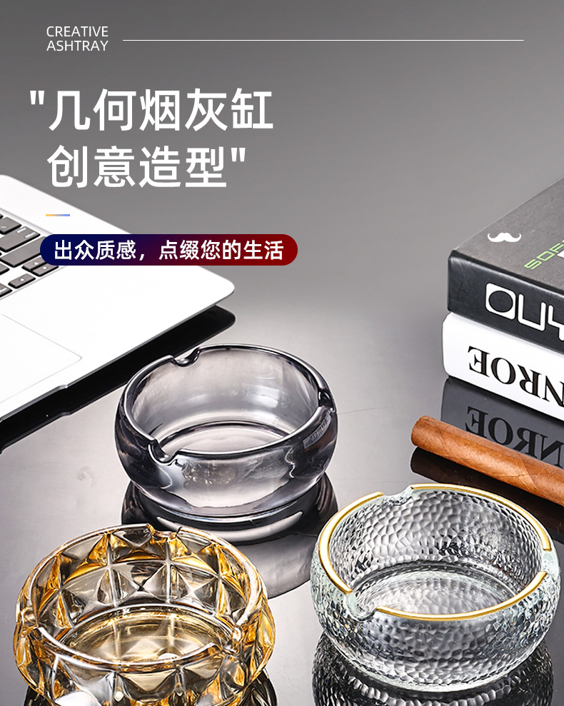 玻璃烟灰缸加厚加深创意家用客厅轻奢高级感KTV烟盅商用酒店烟缸