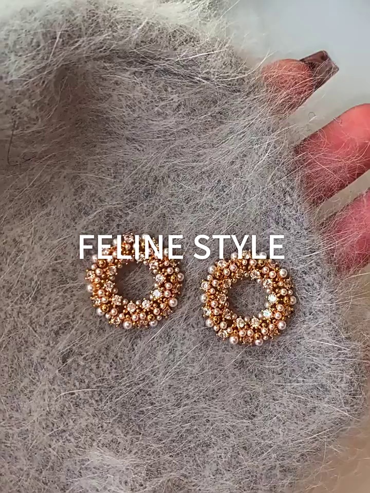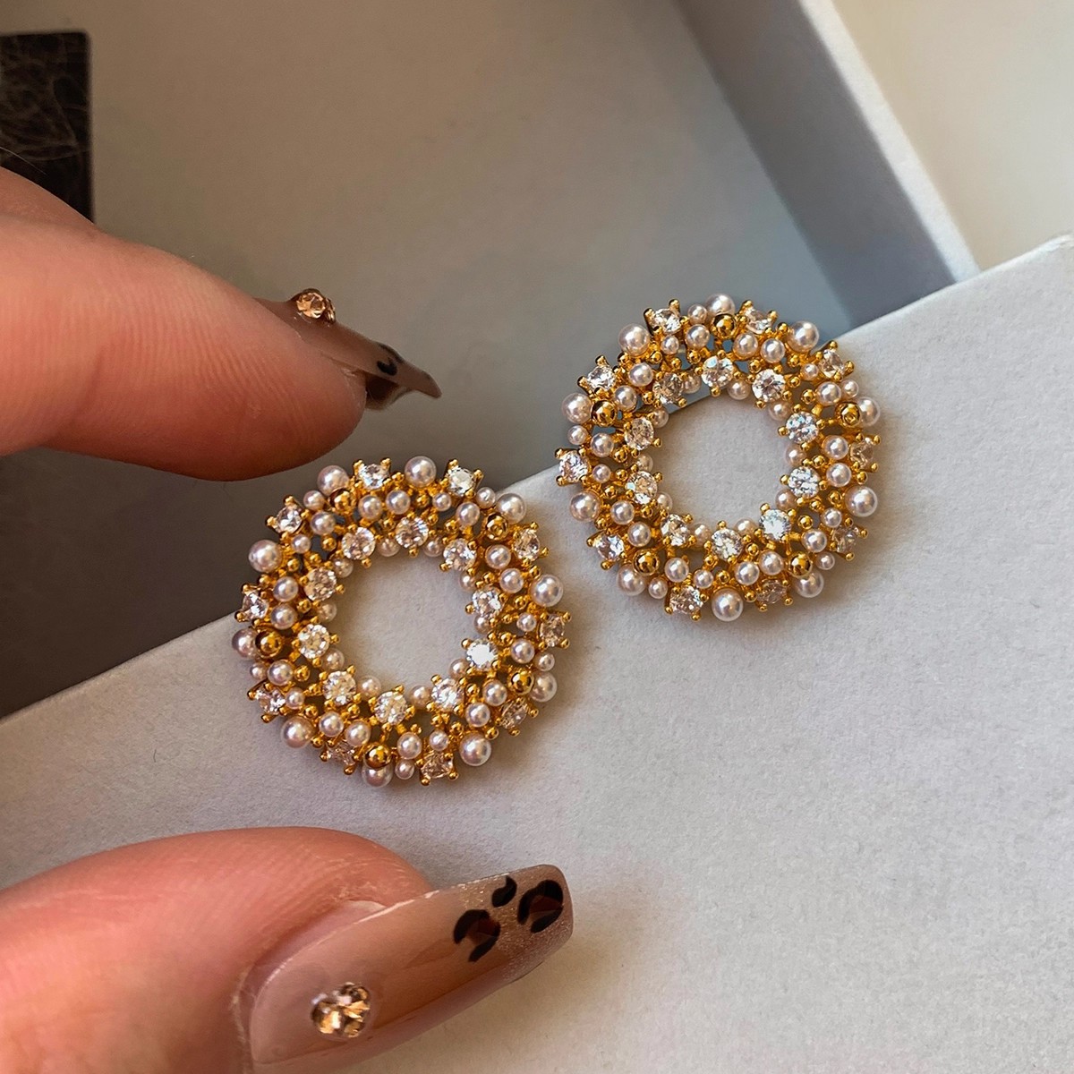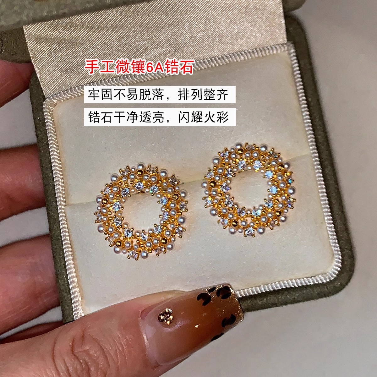 轻奢小众高级感金色耳钉耳饰品S家极光珍珠花闪钻耳环女独特绝美
