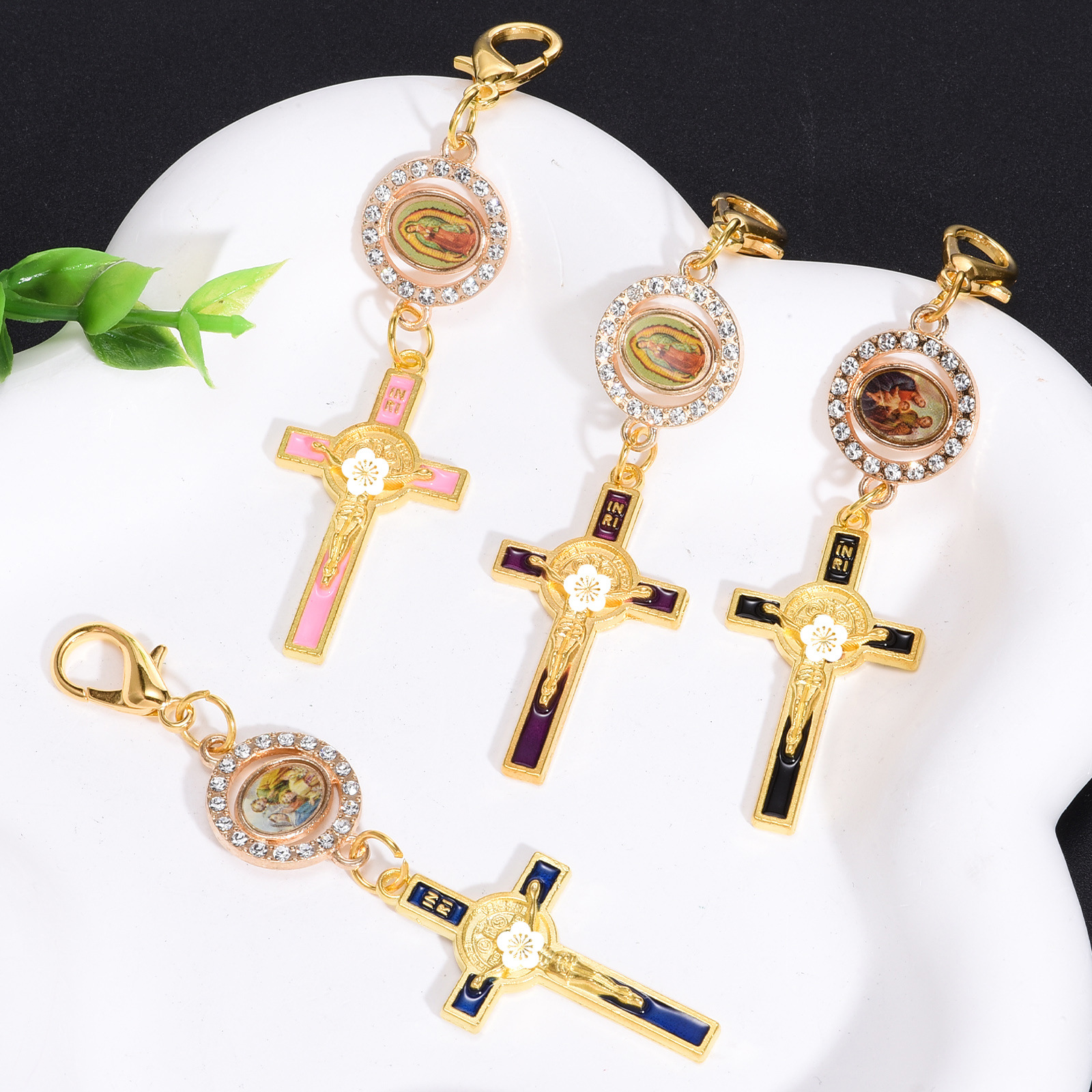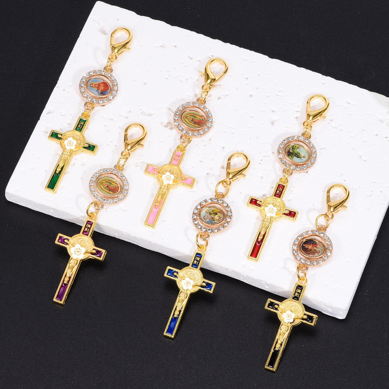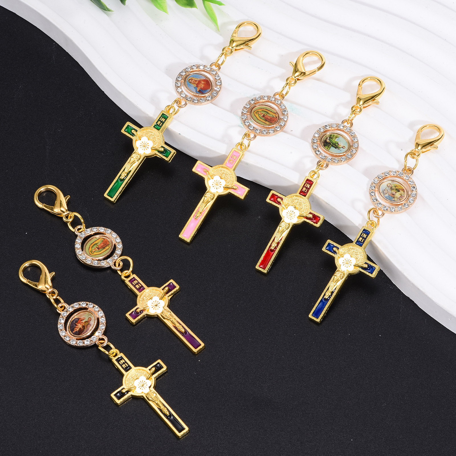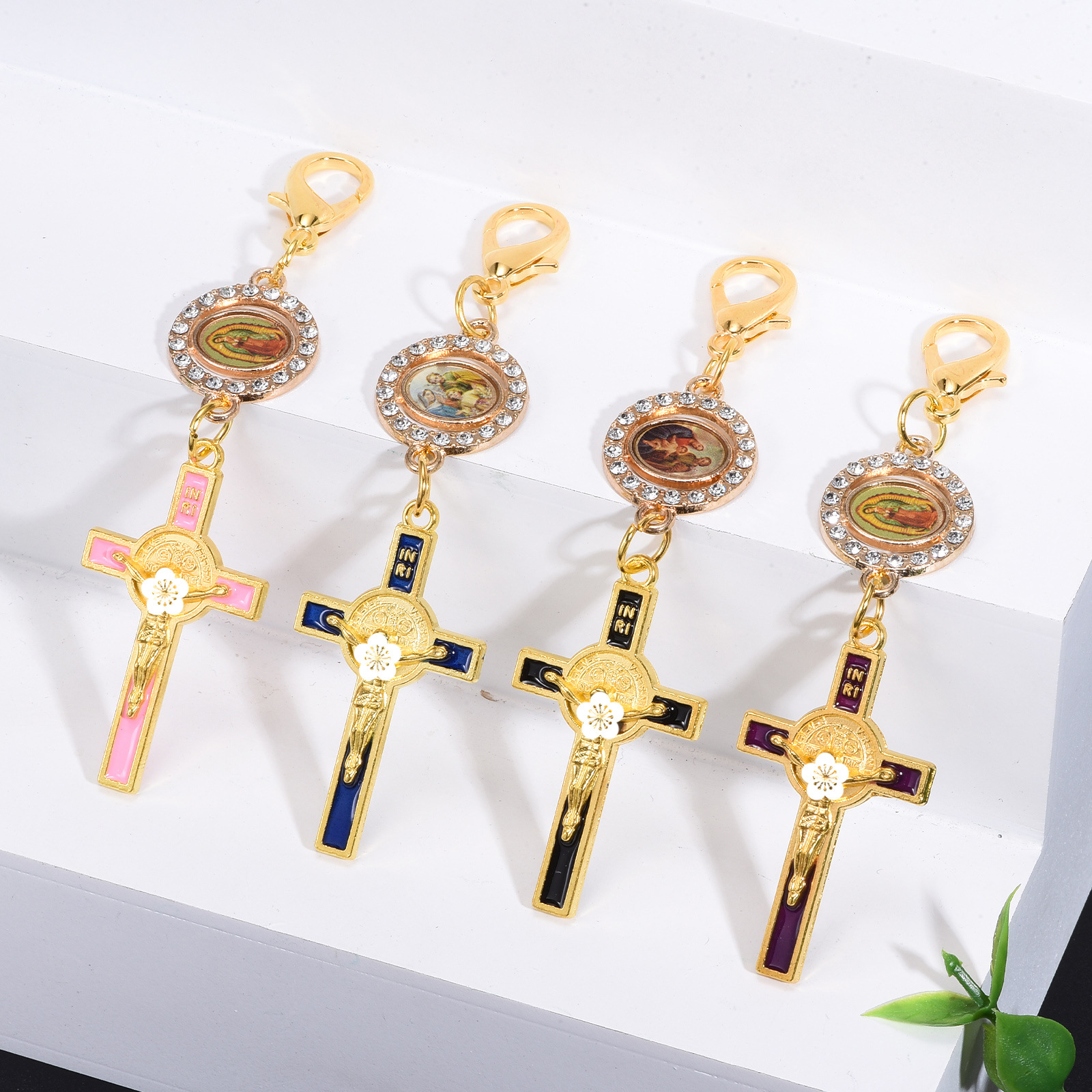 跨境热卖temu合金圣母玛利亚宗教十字架钥匙扣挂件DIY背包挂件