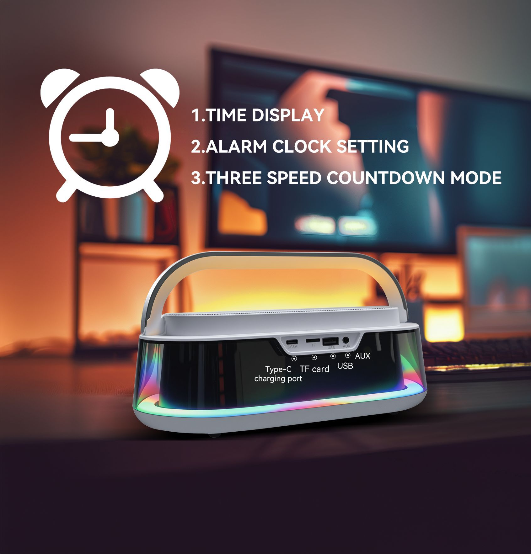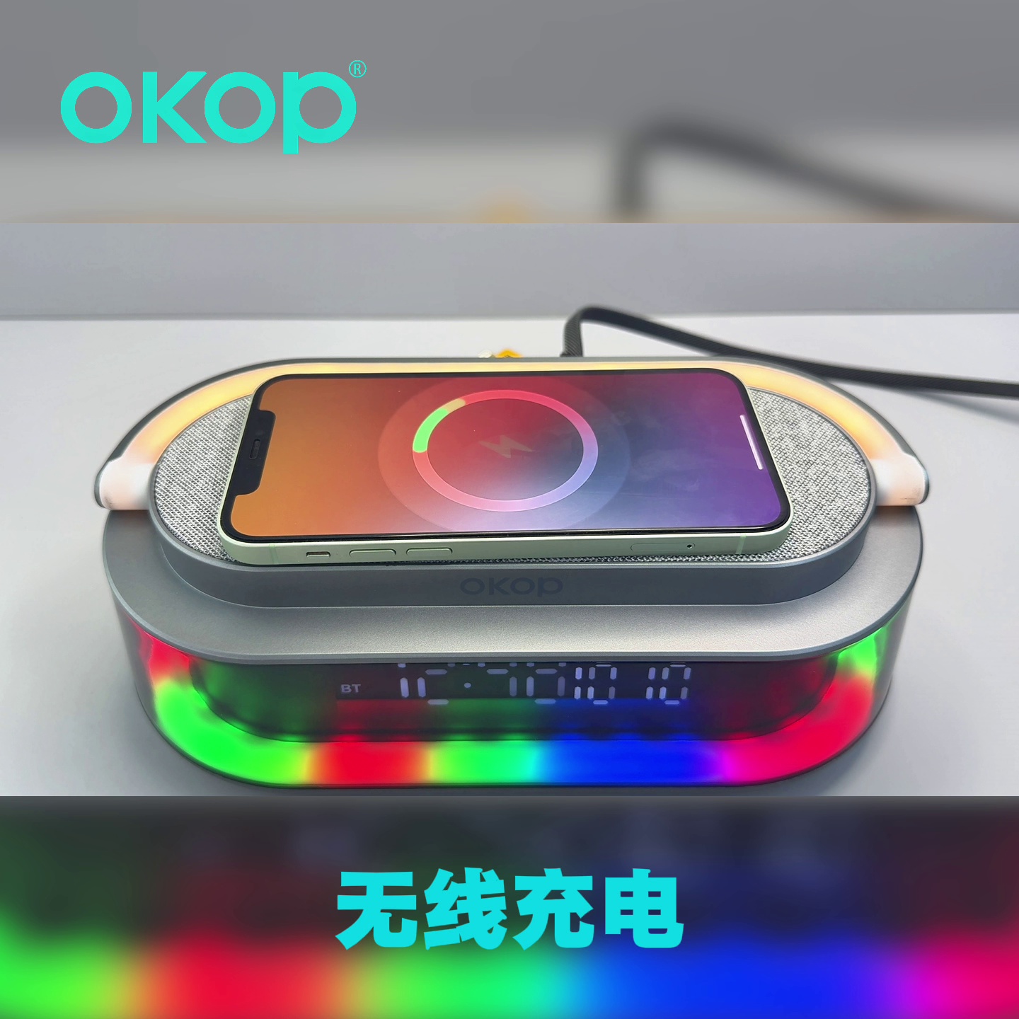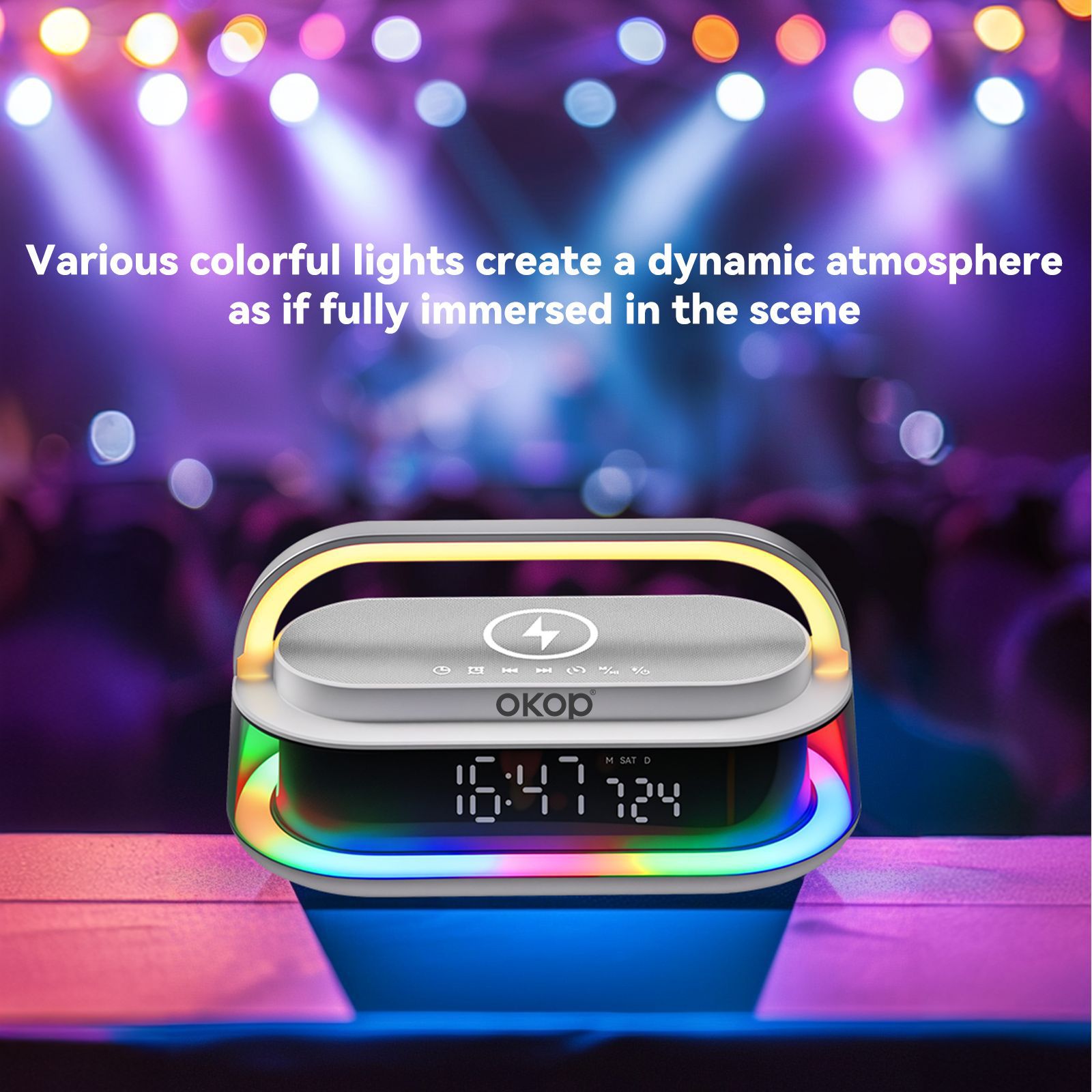 575蓝牙音响15W无线充电桌面时钟闹钟RGB氛围灯白噪音小音箱跨境