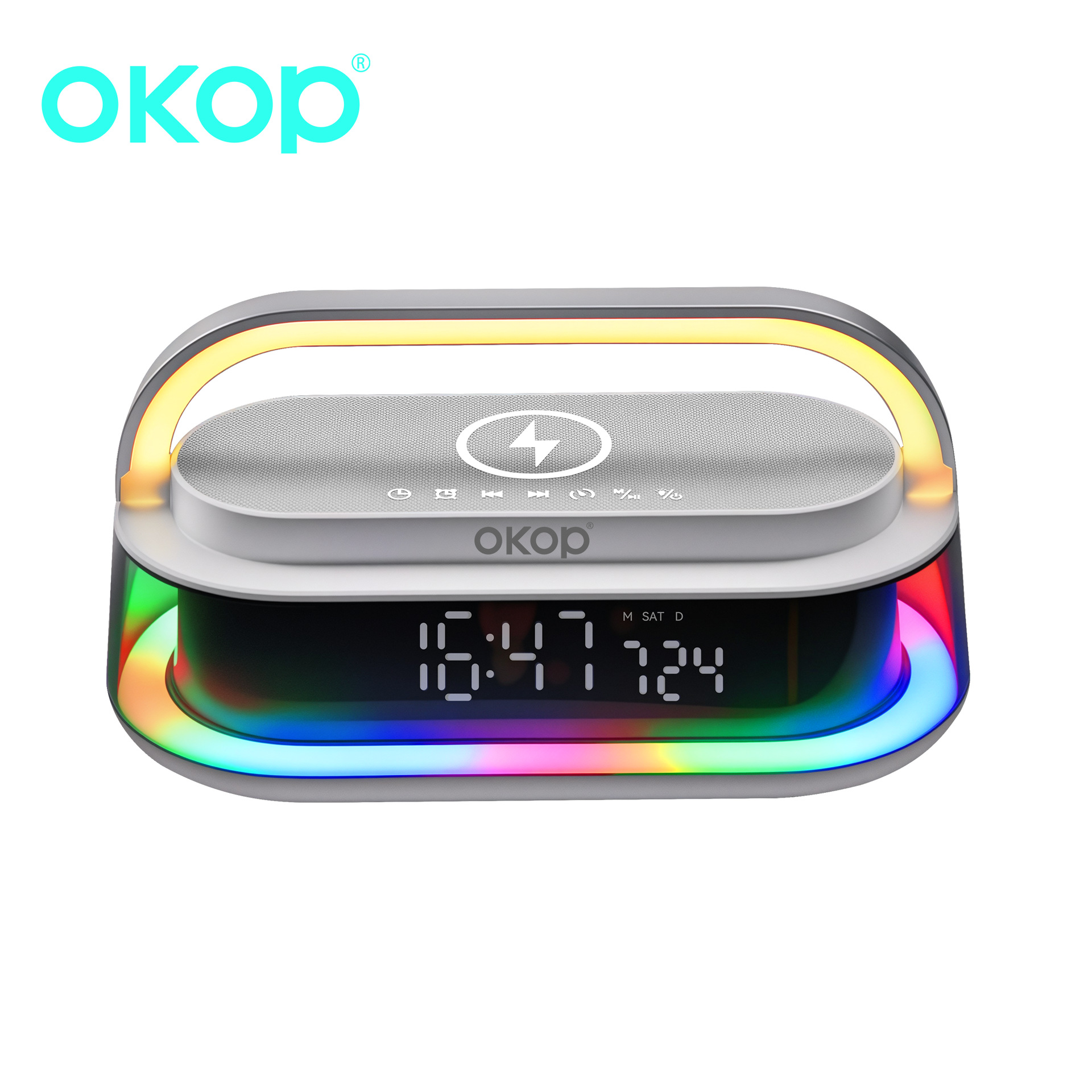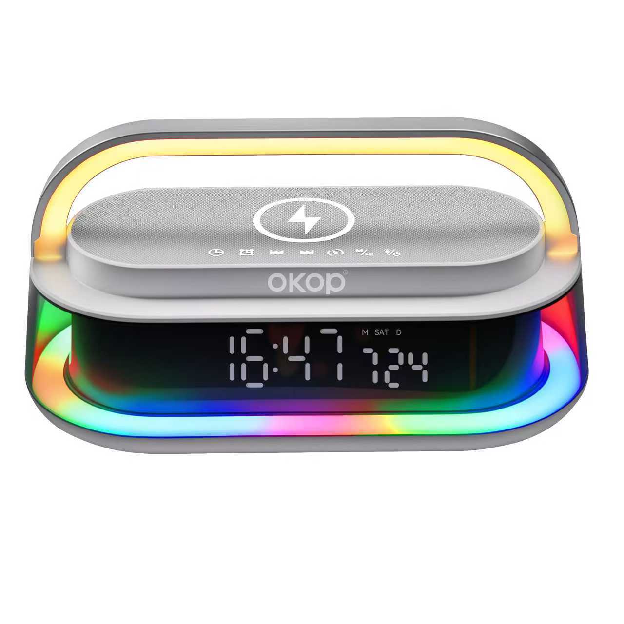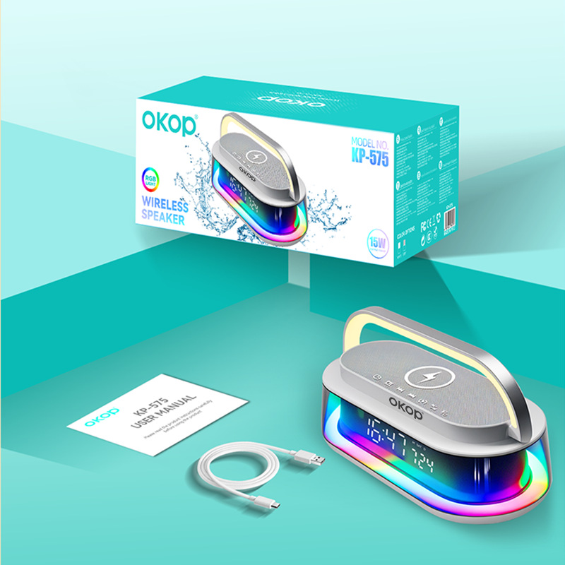 575蓝牙音响15W无线充电桌面时钟闹钟RGB氛围灯白噪音小音箱跨境